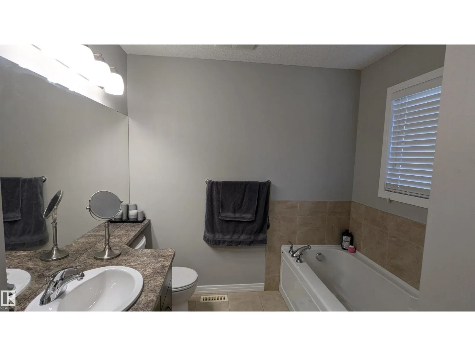 Welcome to this beautifully appointed family home offering a spacious open-concept main floor designed for comfort and entertaining. The inviting living room features a cozy gas fireplace with mantel, while the chefâs kitchen boasts an entertaining island, S/S appliances, & convenient walk-through butlerâs pantry. A main floor laundry with an additional pedestal washer adds everyday convenience. Upstairs, youâll find four generous bedrooms including a primary suite with a WIC and a spa-inspired ensuite complete with a separate tub and walk-in shower. A bright bonus room provides the perfect space for family movie nights or a home office. The unfinished basement, with two windows, offers plenty of potential for future development. Recent upgrades include a brand new HWT, and the home is equipped with central A/C for year-round comfort. Enjoy outdoor living in the west-facing backyard featuring a deck, storage shed, and direct access to a playground. An attached garage completes this fantastic package. (id:27476)