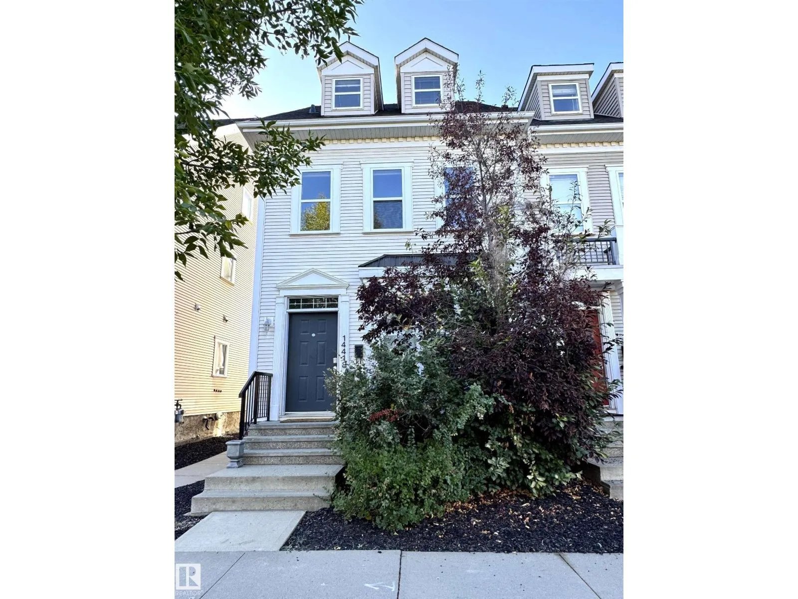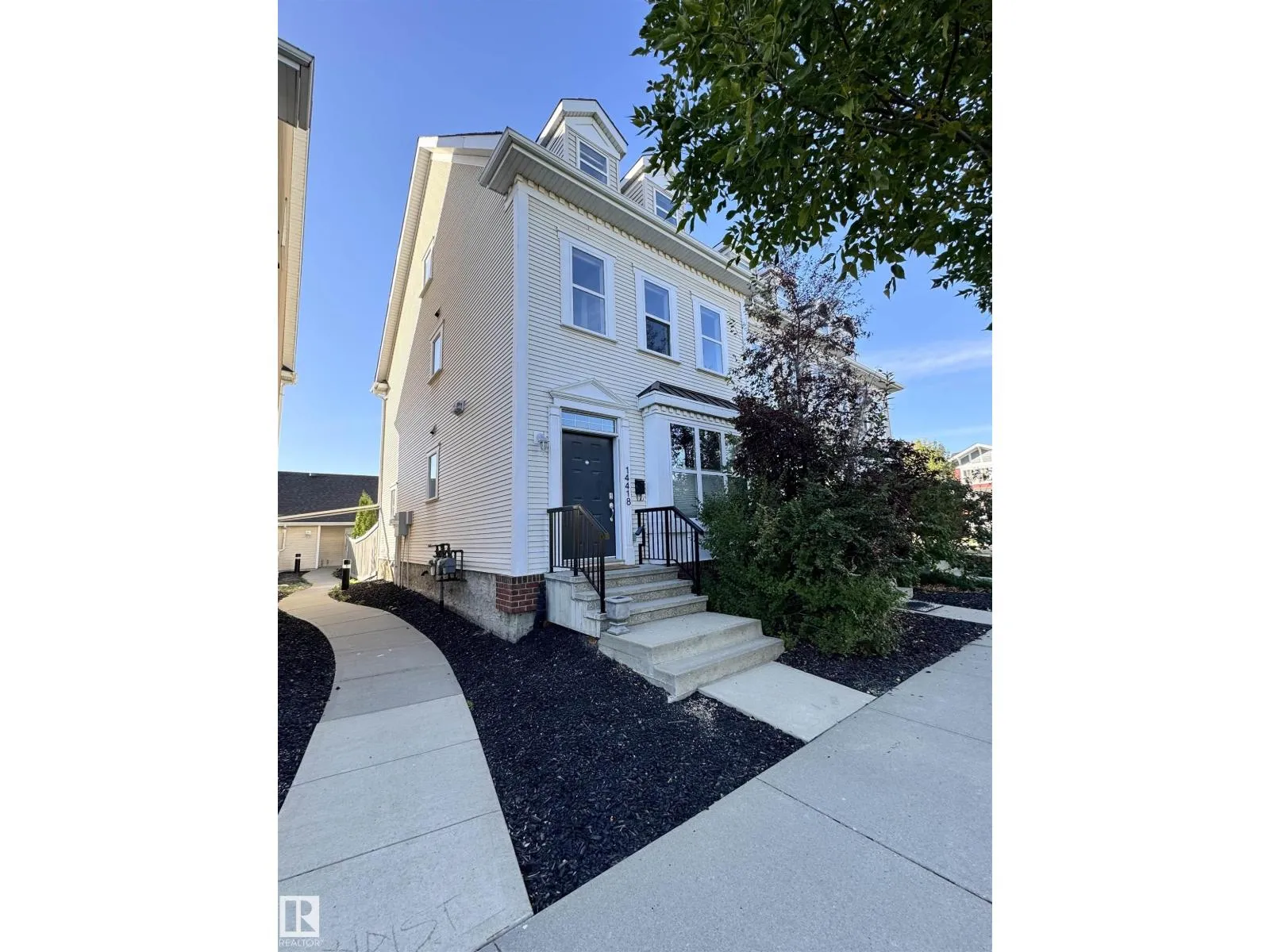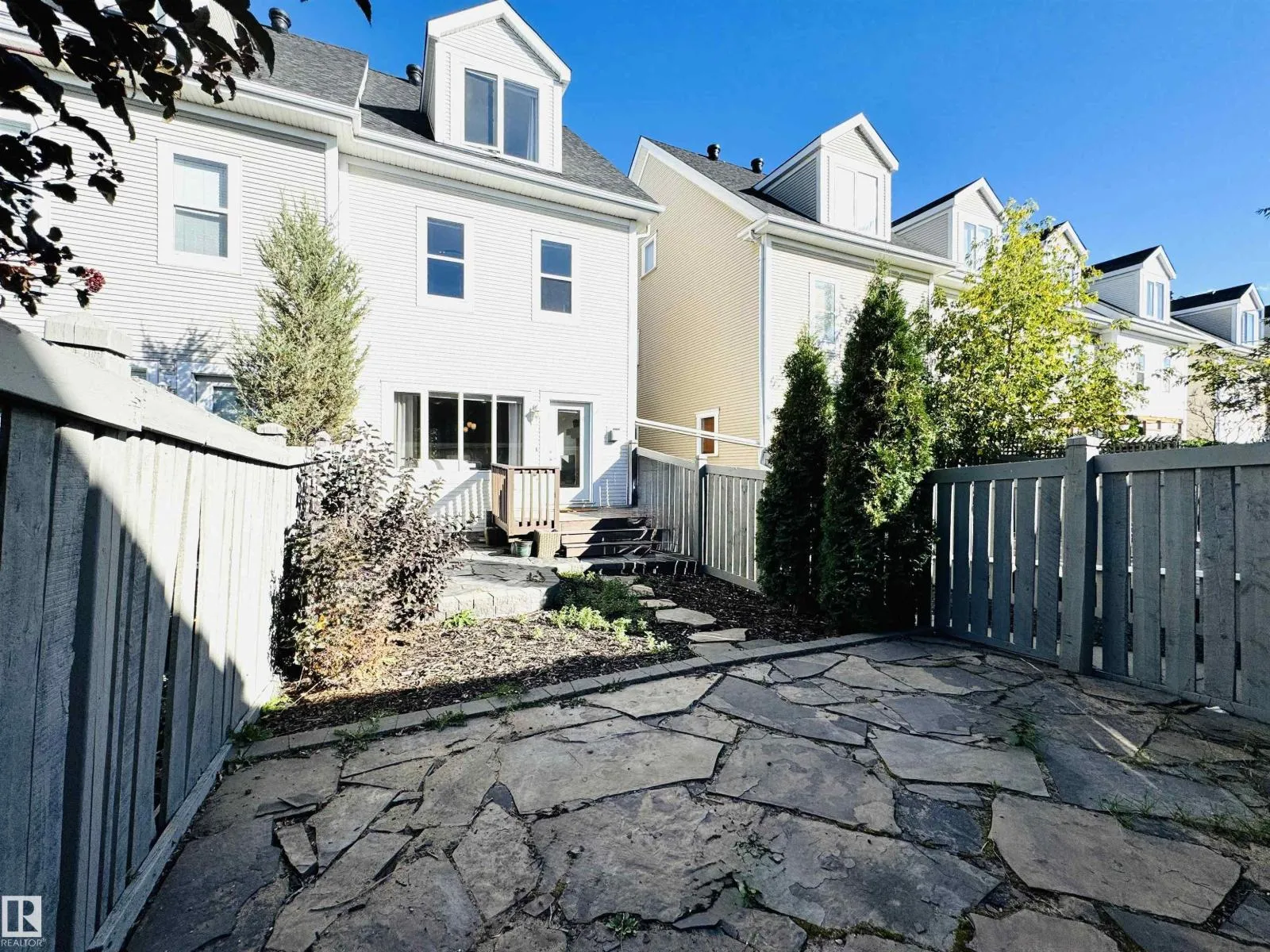 This BEAUTIFUL, BRIGHT END UNIT townhome in award wining Griesbach features over 2600sqft of total living space with a wonderfully executed floorpan. Upon entering, youâre greeted with a huge dining area and newly upgraded wide plank engineered oak hardwood floor. An upgraded open concept kitchen with granite and stainless steel appliances separates the sun-lit dining and living room which leads to a wonderful WEST facing, landscaped backyard & double detached garage. A cozy gas fireplace and a 2pc bath are also conveniently tucked away to make this first floor a warm, cozy space youâll love. The second level features a HUGE FAMILY ROOM (which could also be an office or bedroom), a large bedroom with walk-in closet and 4pc ensuite, as well as laundry. The third level is the PRIMARY SUITE with sitting area, vaulted ceilings, walk-in closet and an expansive ensuite with double sinks, soaker tub and separate stand-up shower. FULLY FINISHED basement w/ bonus room & wet bar and a flex/storage space. (id:27476)