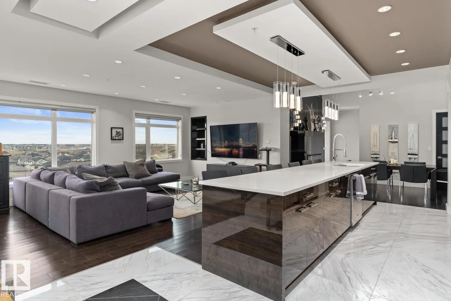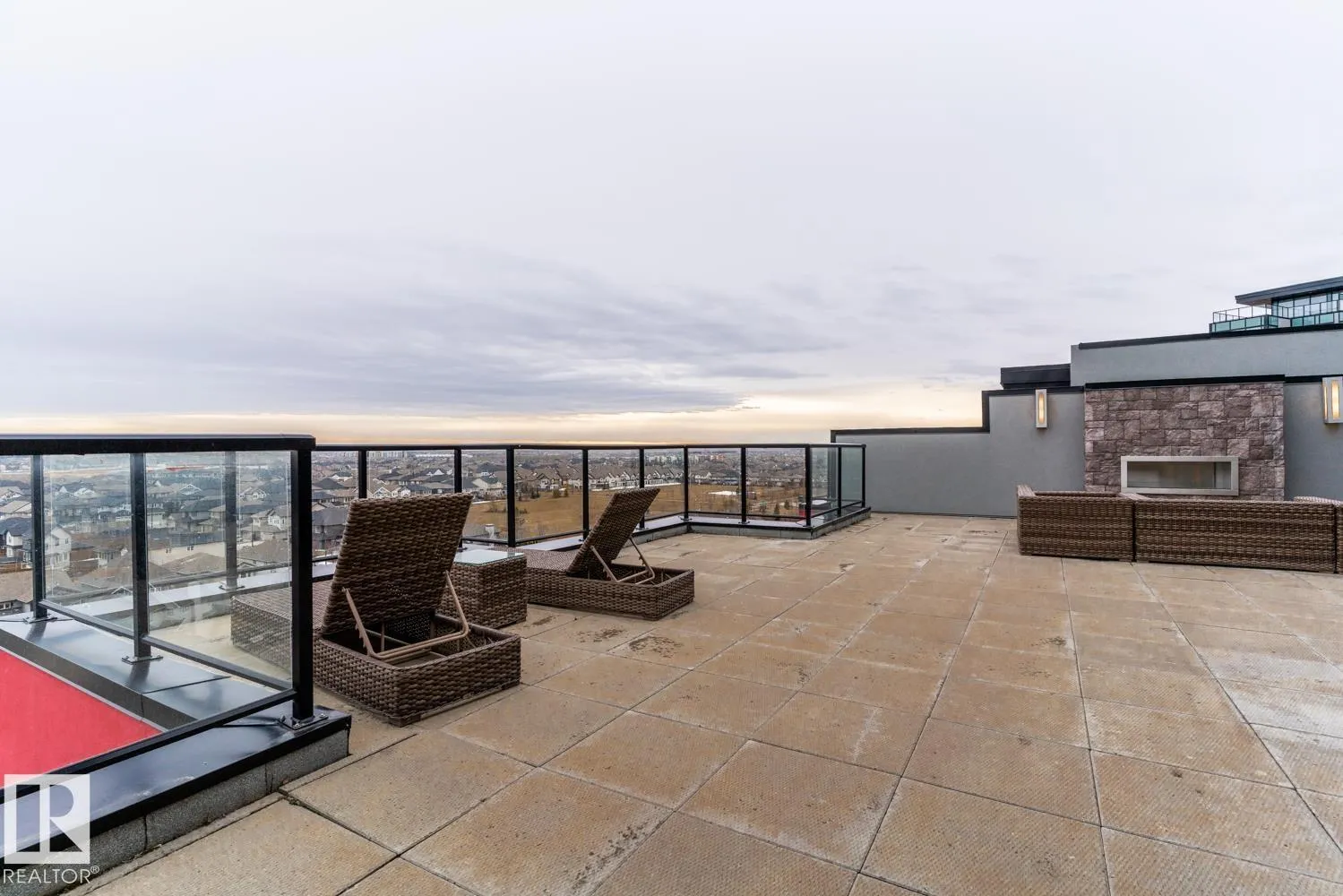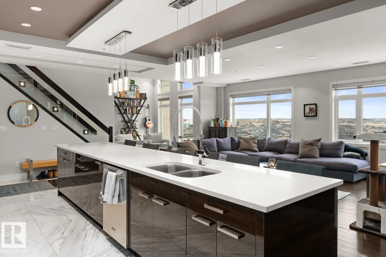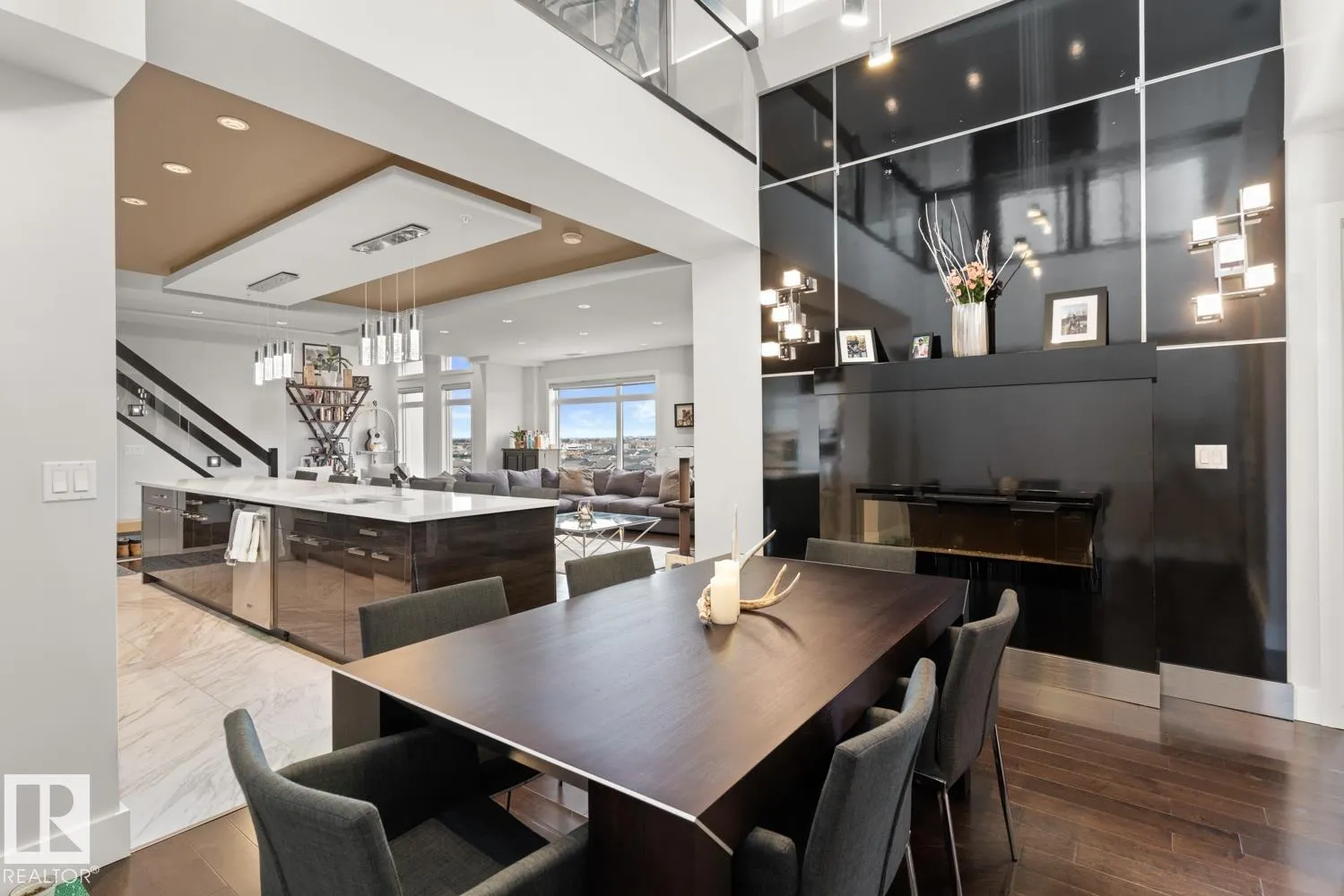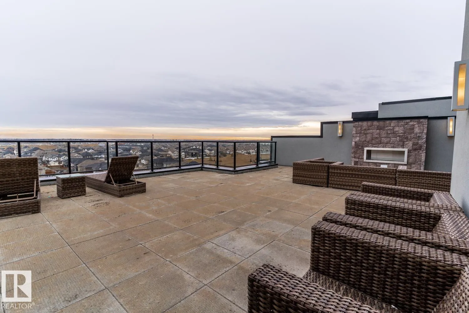 Welcome to the pinnacle of luxury living in Windermere! This stunning penthouse offers a sophisticated loft-style design with panoramic city views from two private balconies. The chef-inspired kitchen boasts a massive island with eating bar, modern finishes, and high-end appliancesâperfect for entertaining. The open-concept living space is bright and inviting, while the main floor also features a den plus a bedroom with walk-through closet and private ensuite. Upstairs, the lavish master suite impresses with a double-sided fireplace, jet tub, steam shower, water closet, and an oversized walk-in closet. Two additional bedrooms and a laundry room complete the upper level. With two titled parking stalls and access to a fully equipped fitness centre, this penthouse is the perfect blend of elegance, comfort, and convenience in one of Edmontonâs most desirable communities. Donât miss your chance to call this exceptional penthouse home! (id:27476)