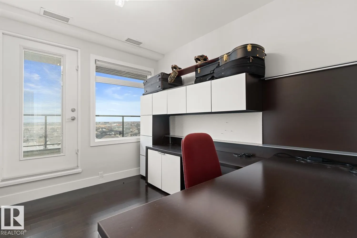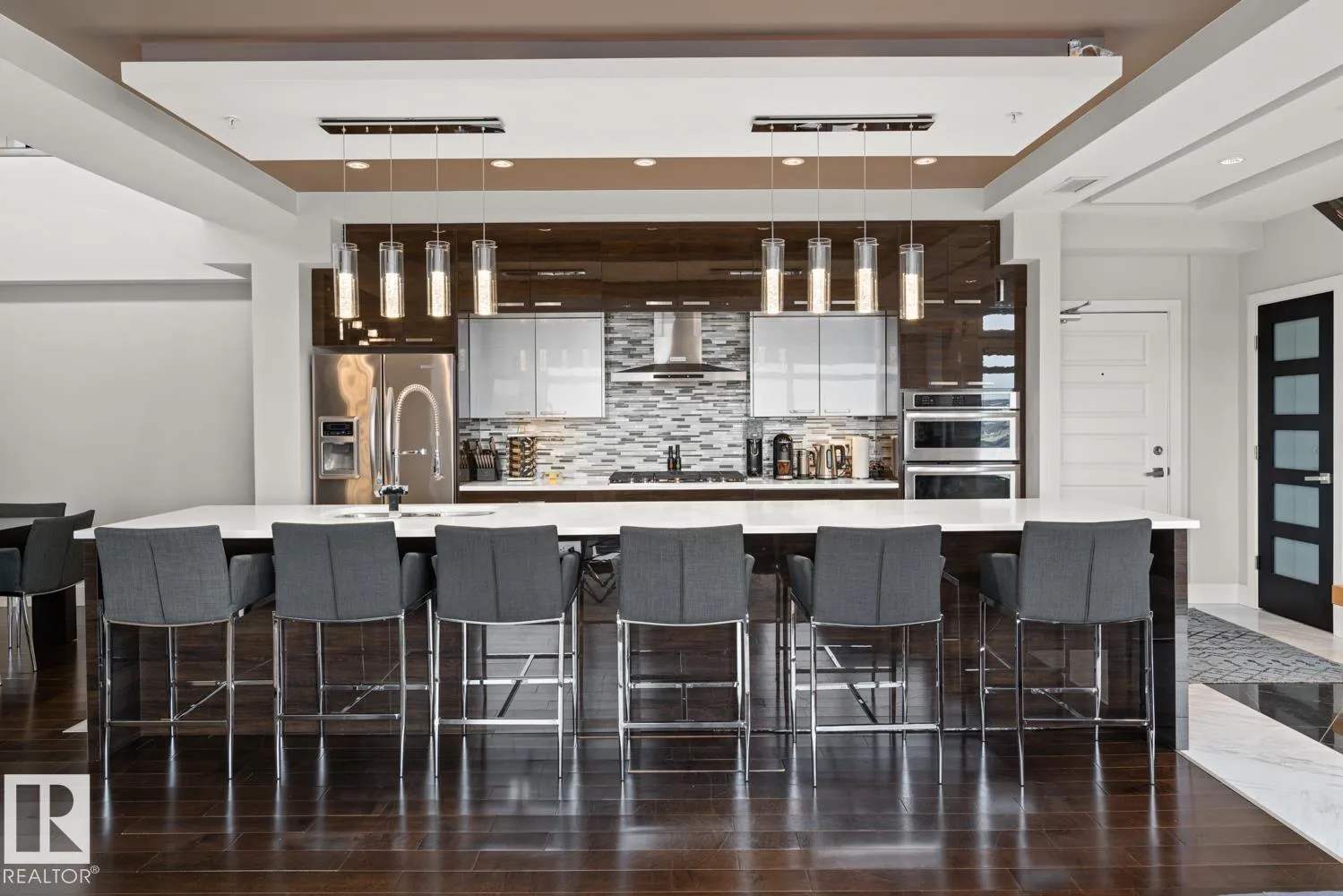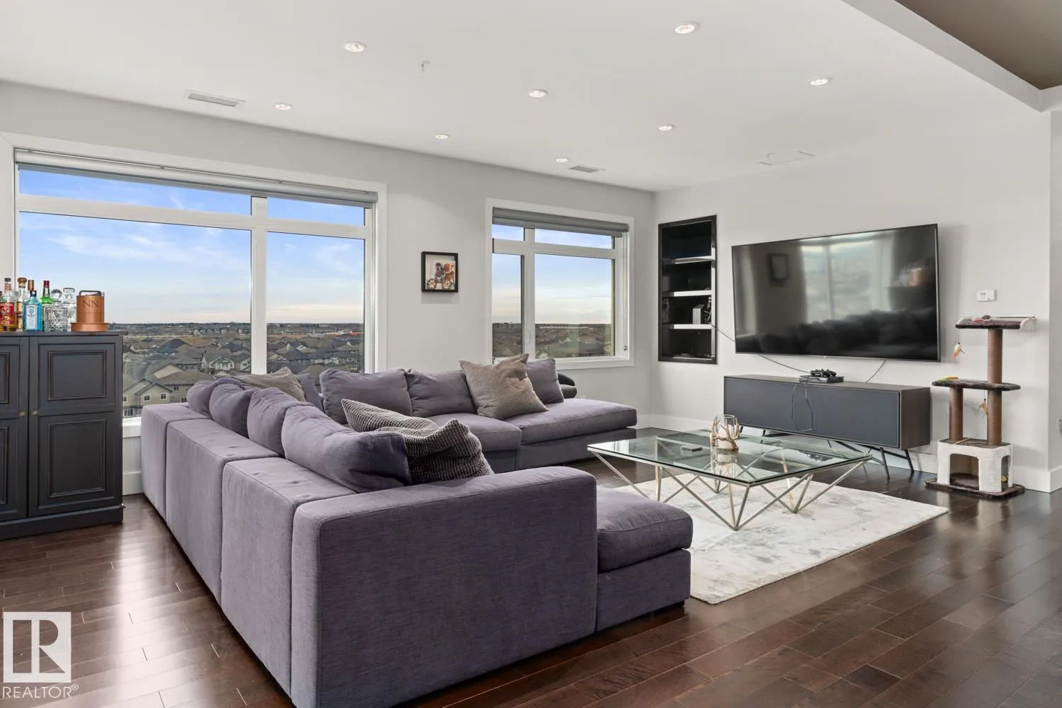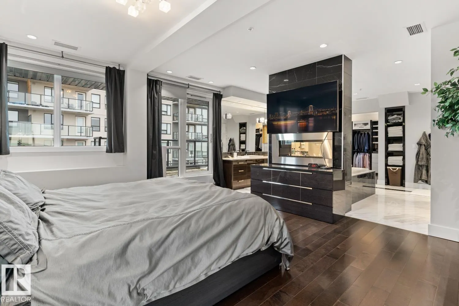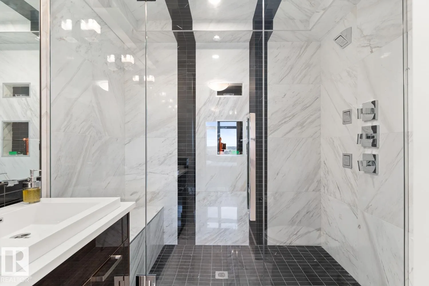 Welcome to the pinnacle of luxury living in Windermere! This stunning penthouse offers a sophisticated loft-style design with panoramic city views from two private balconies. The chef-inspired kitchen boasts a massive island with eating bar, modern finishes, and high-end appliancesâperfect for entertaining. The open-concept living space is bright and inviting, while the main floor also features a den plus a bedroom with walk-through closet and private ensuite. Upstairs, the lavish master suite impresses with a double-sided fireplace, jet tub, steam shower, water closet, and an oversized walk-in closet. Two additional bedrooms and a laundry room complete the upper level. With two titled parking stalls and access to a fully equipped fitness centre, this penthouse is the perfect blend of elegance, comfort, and convenience in one of Edmontonâs most desirable communities. Donât miss your chance to call this exceptional penthouse home! (id:27476)
