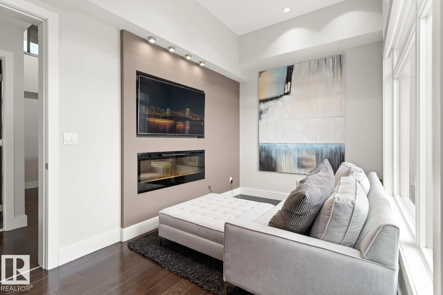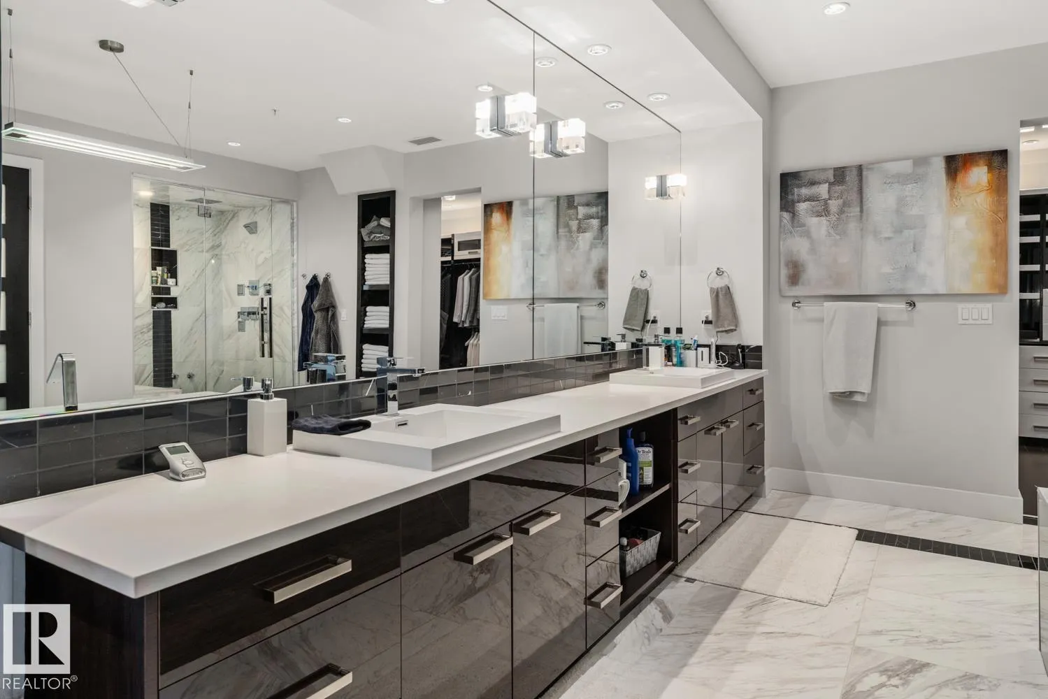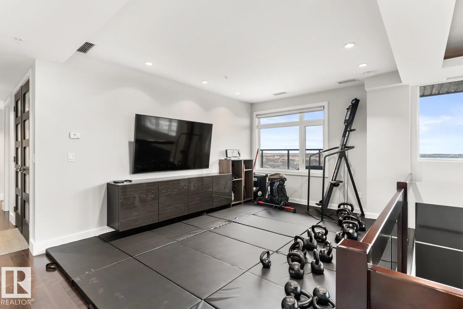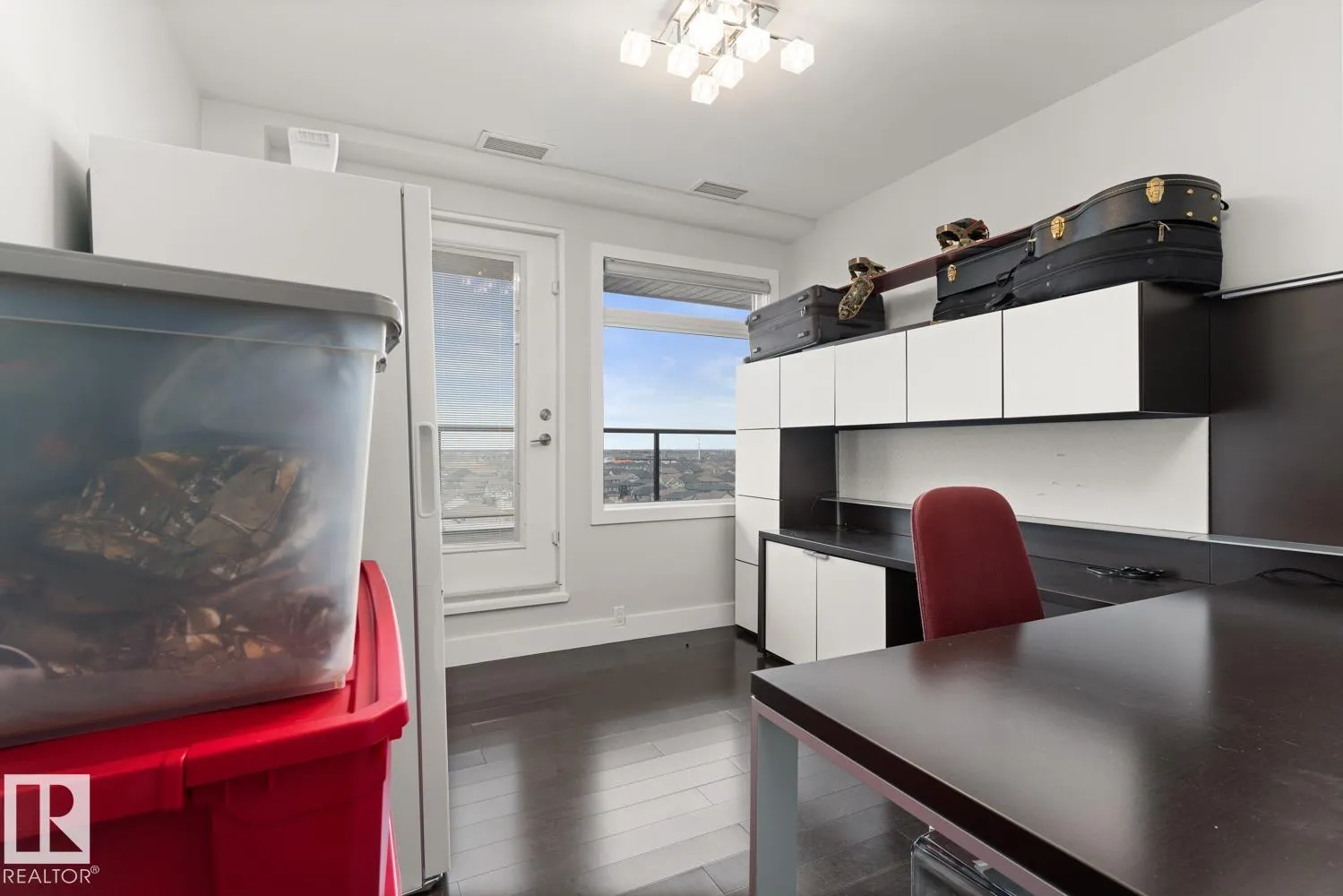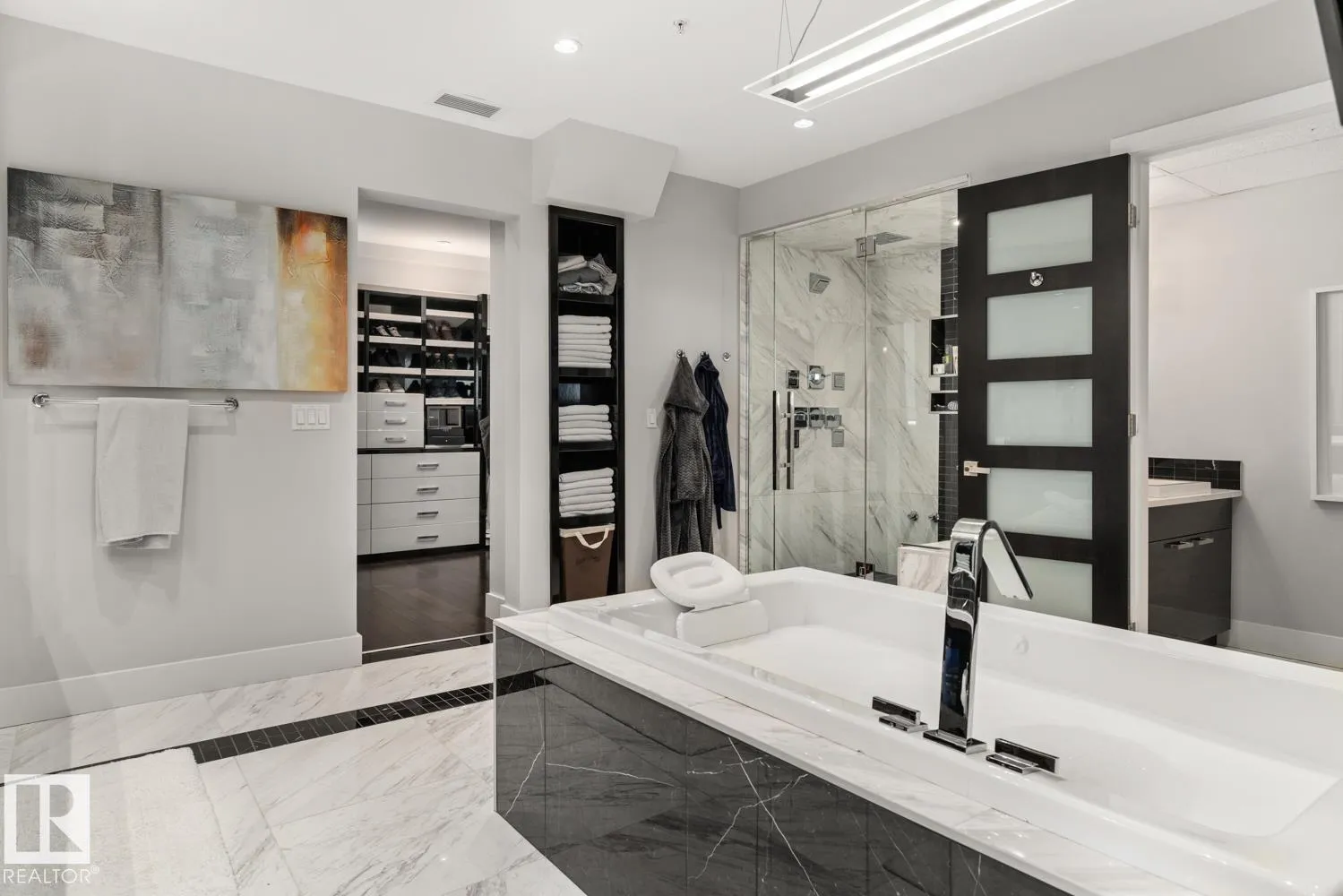 Welcome to the pinnacle of luxury living in Windermere! This stunning penthouse offers a sophisticated loft-style design with panoramic city views from two private balconies. The chef-inspired kitchen boasts a massive island with eating bar, modern finishes, and high-end appliancesâperfect for entertaining. The open-concept living space is bright and inviting, while the main floor also features a den plus a bedroom with walk-through closet and private ensuite. Upstairs, the lavish master suite impresses with a double-sided fireplace, jet tub, steam shower, water closet, and an oversized walk-in closet. Two additional bedrooms and a laundry room complete the upper level. With two titled parking stalls and access to a fully equipped fitness centre, this penthouse is the perfect blend of elegance, comfort, and convenience in one of Edmontonâs most desirable communities. Donât miss your chance to call this exceptional penthouse home! (id:27476)