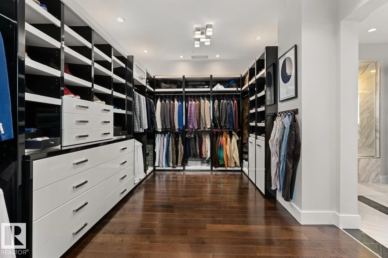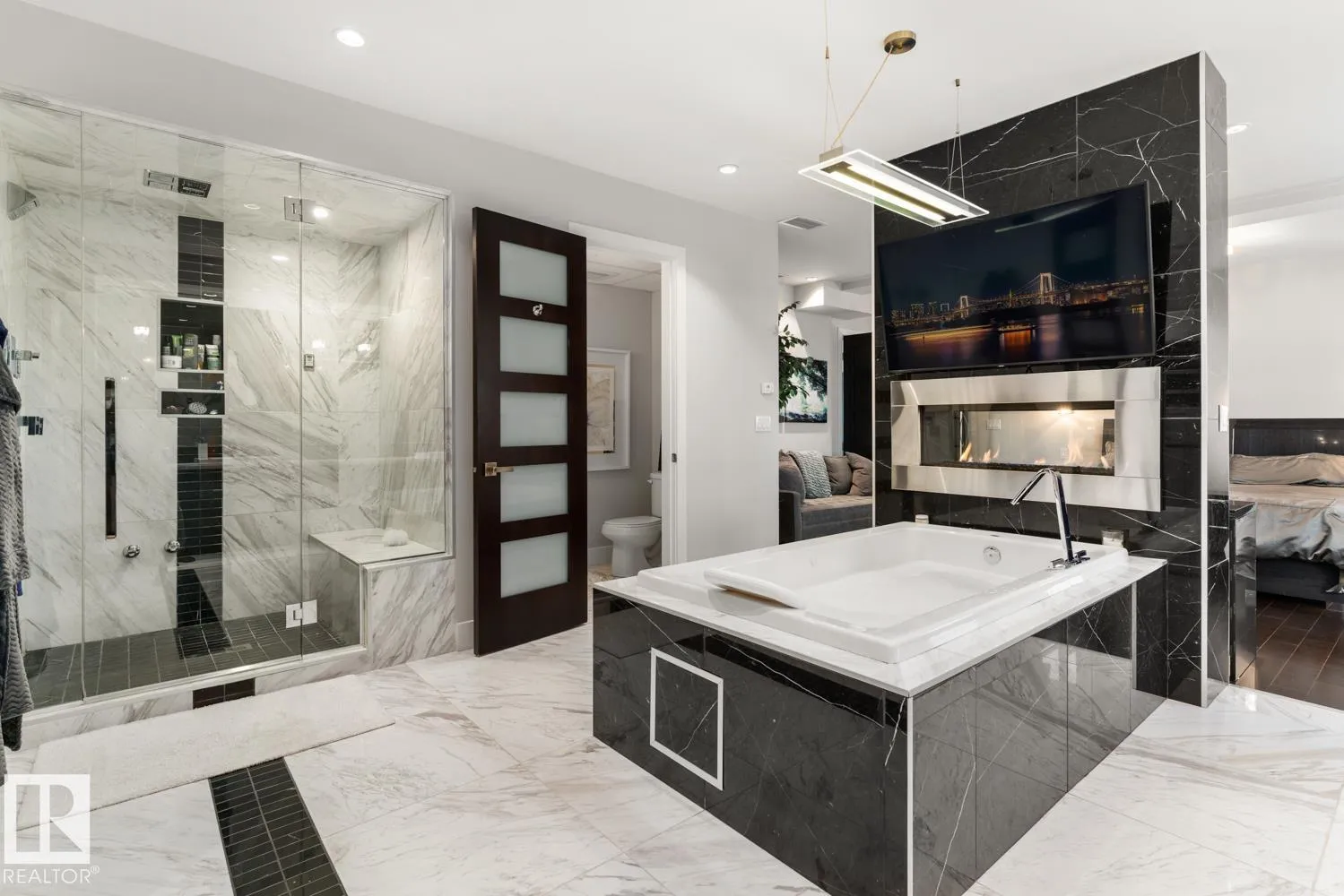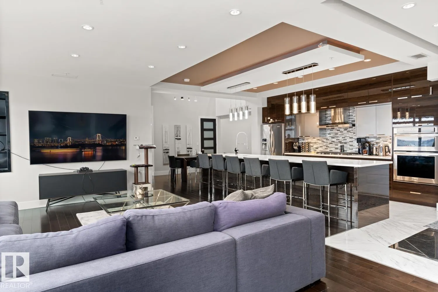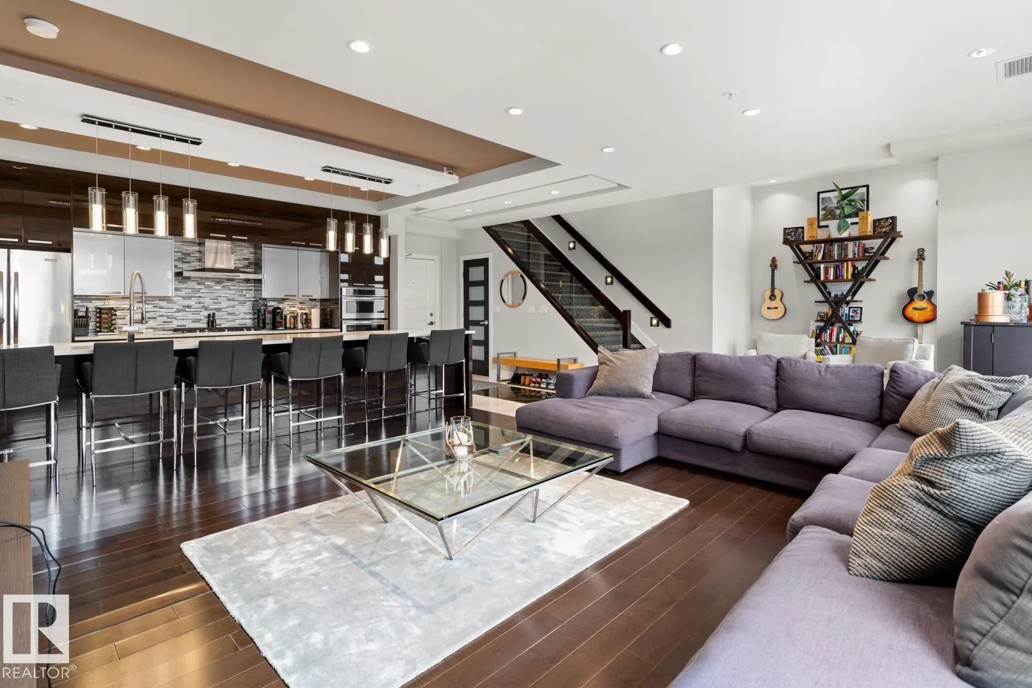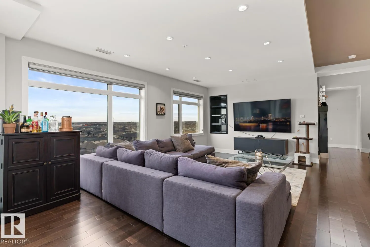 Welcome to the pinnacle of luxury living in Windermere! This stunning penthouse offers a sophisticated loft-style design with panoramic city views from two private balconies. The chef-inspired kitchen boasts a massive island with eating bar, modern finishes, and high-end appliancesâperfect for entertaining. The open-concept living space is bright and inviting, while the main floor also features a den plus a bedroom with walk-through closet and private ensuite. Upstairs, the lavish master suite impresses with a double-sided fireplace, jet tub, steam shower, water closet, and an oversized walk-in closet. Two additional bedrooms and a laundry room complete the upper level. With two titled parking stalls and access to a fully equipped fitness centre, this penthouse is the perfect blend of elegance, comfort, and convenience in one of Edmontonâs most desirable communities. Donât miss your chance to call this exceptional penthouse home! (id:27476)