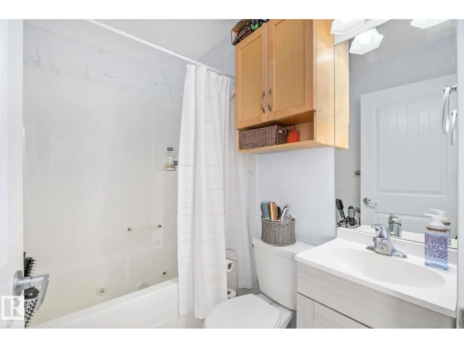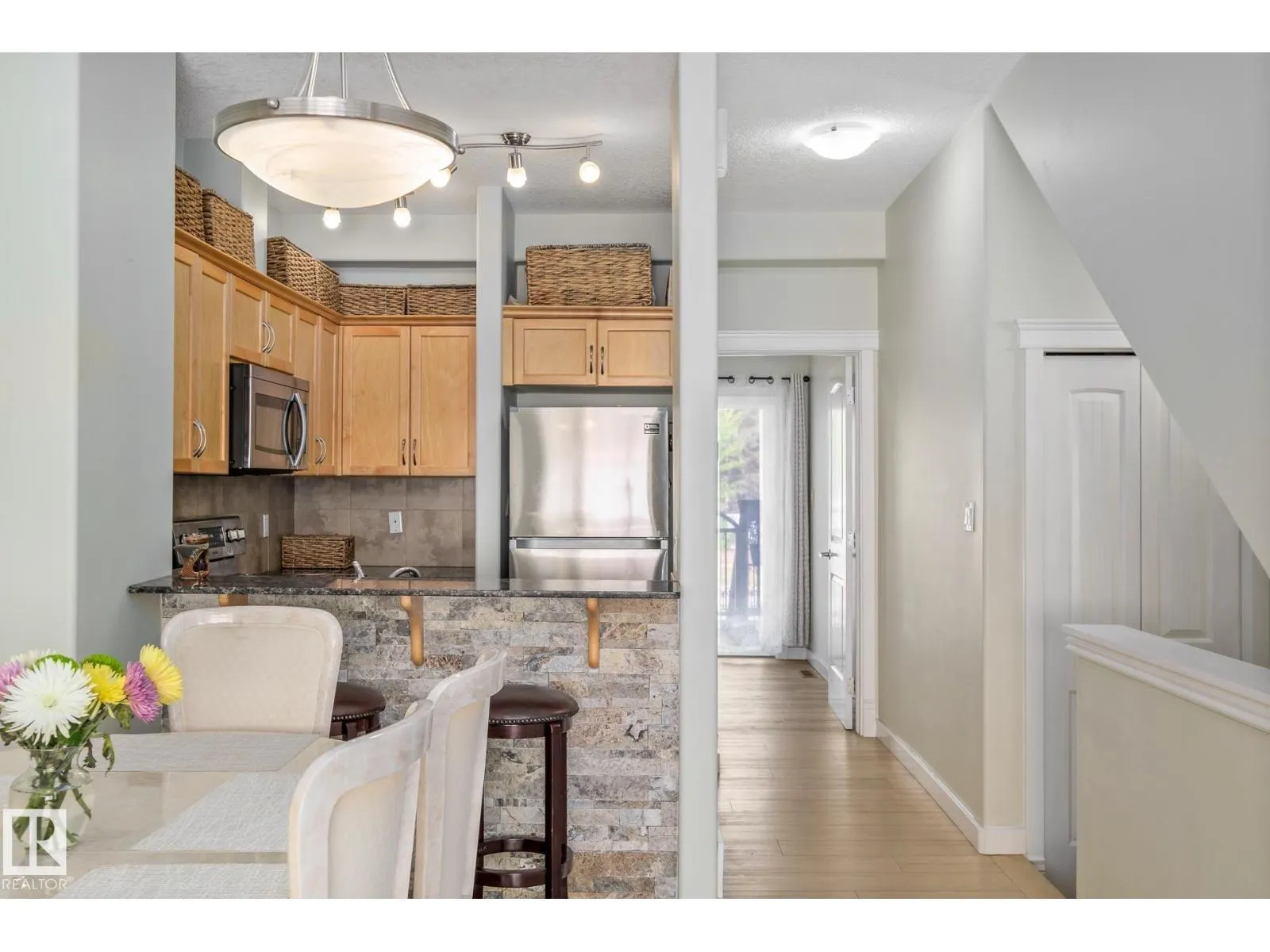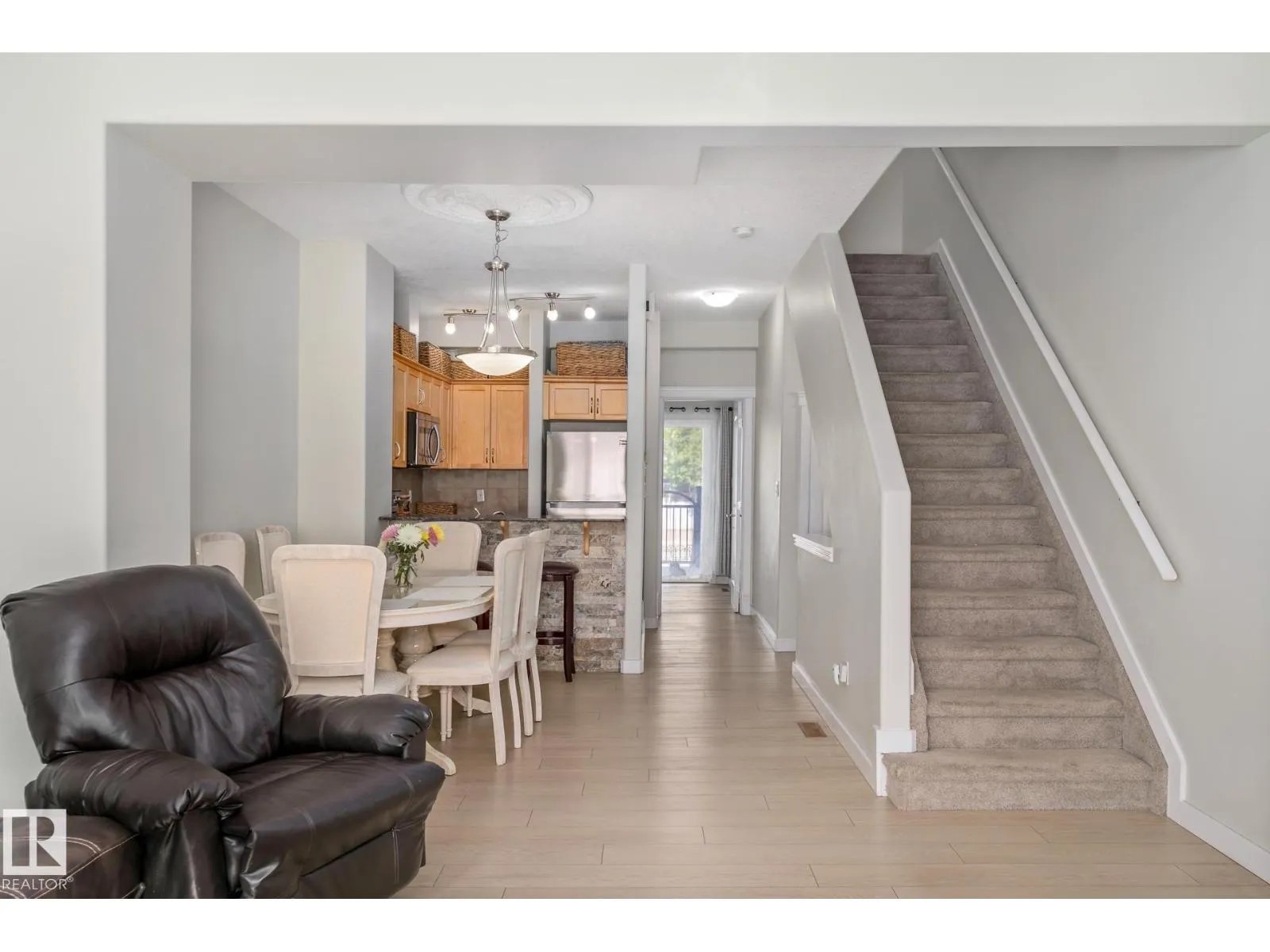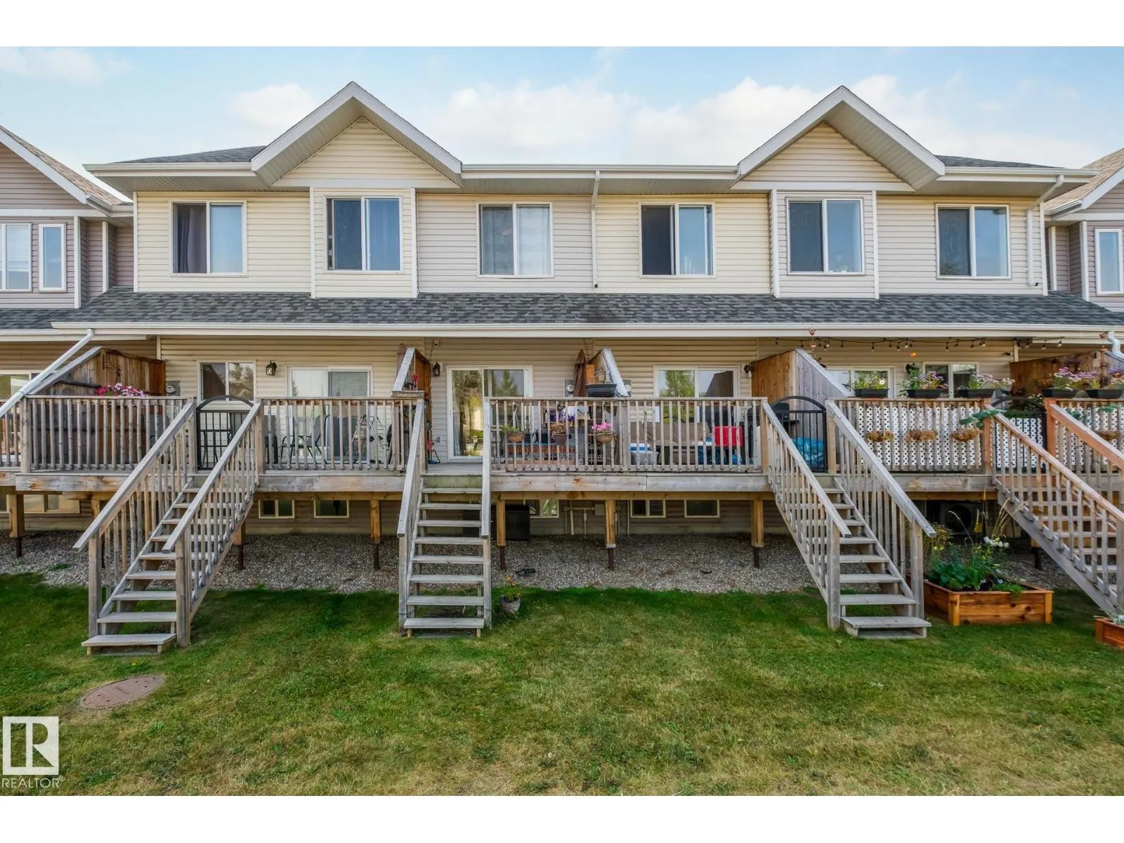 Welcome to Carlton Pointe! This elegant 2-storey townhouse offers 1,238 sq. ft. of stylish living with a single tandem attached garage. The main floor features a bright living room with gleaming hardwood floors and a cozy gas fireplace, perfect for relaxing evenings. The spacious kitchen is equipped with maple cabinetry, ceramic tile flooring, and four appliances, making meal prep a breeze. Upstairs, youâll find a generous primary suite with a luxurious Jacuzzi ensuite, a second well-sized bedroom, a full 4-piece bath, and the convenience of an upper-level laundry. Additional highlights include a covered deck for outdoor enjoyment and tasteful finishes throughout, including carpet in bedrooms and quality tile in bathrooms. Ideally located near schools, shopping, and public transportation, this is a fantastic opportunity to own a low-maintenance home in a sought-after community. (id:27476)