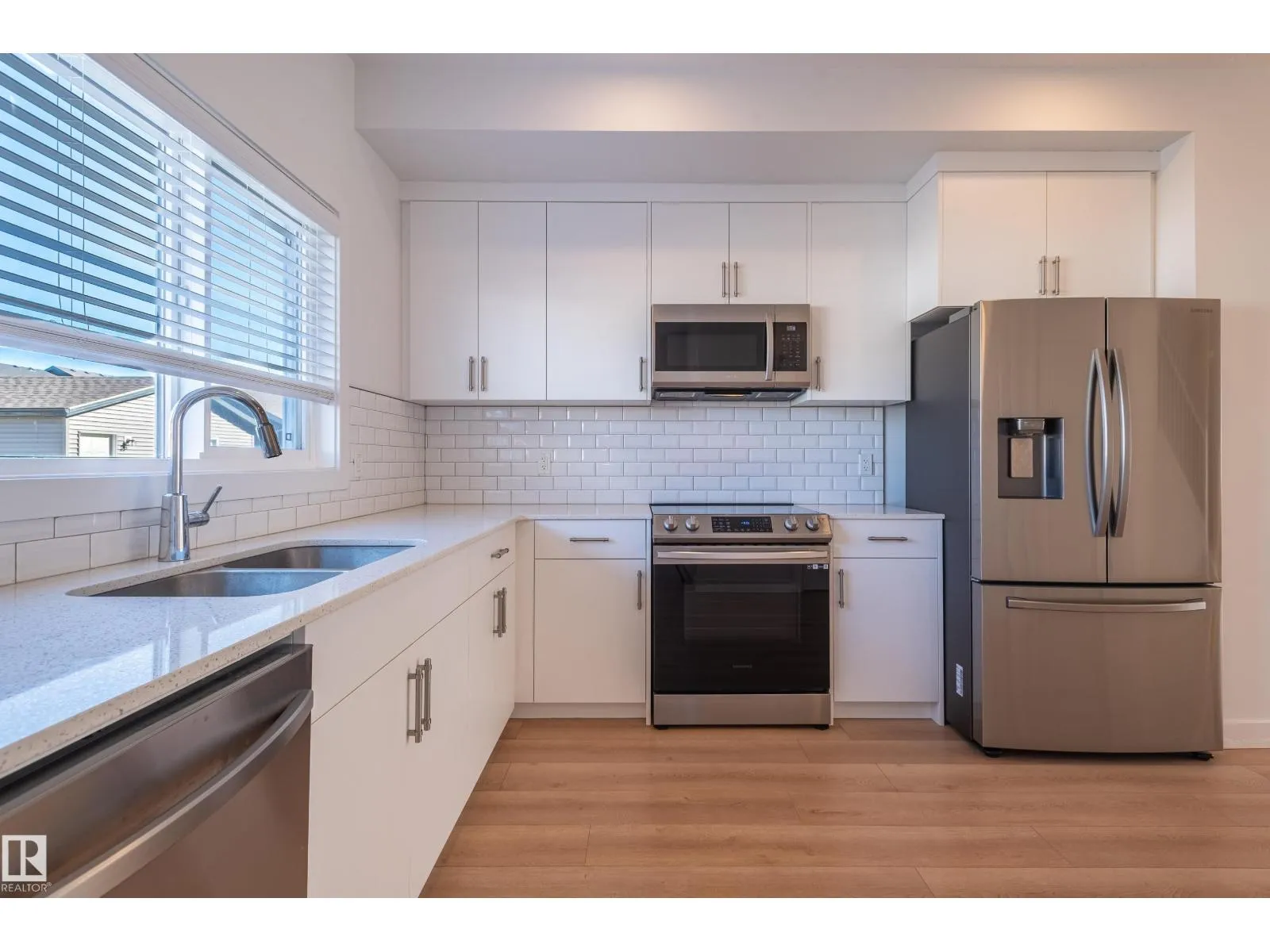 This is a stylish single-family home located in the desirable SE community of The Orchards. With a total of 3 bedrooms, 2.5 bathrooms, and 1494 sq.ft. of living space, this home offers the perfect combination of comfort and modern design. As you step inside, you'll be greeted by luxury vinyl plank flooring that spans the main floor. The 9 ft ceilings create an open and airy atmosphere, providing ample space for relaxation and entertainment. The kitchen boasts a quartz countertop, and the upgraded design cabinets, offering ample storage space with a chimney style hood fan and tile backsplash to add a touch of elegance. Upstairs a primary bedroom with a large walk-in closet and 4-piece ensuite bath. 2 additional bedrooms provide ample space for family members or guests, with 4-piece bathroom. For added convenience, a laundry room is also located on the the upper level. Also includes a side entrance, providing the opportunity for future basement development and customization. Walking distance to K-9 school. (id:27476)