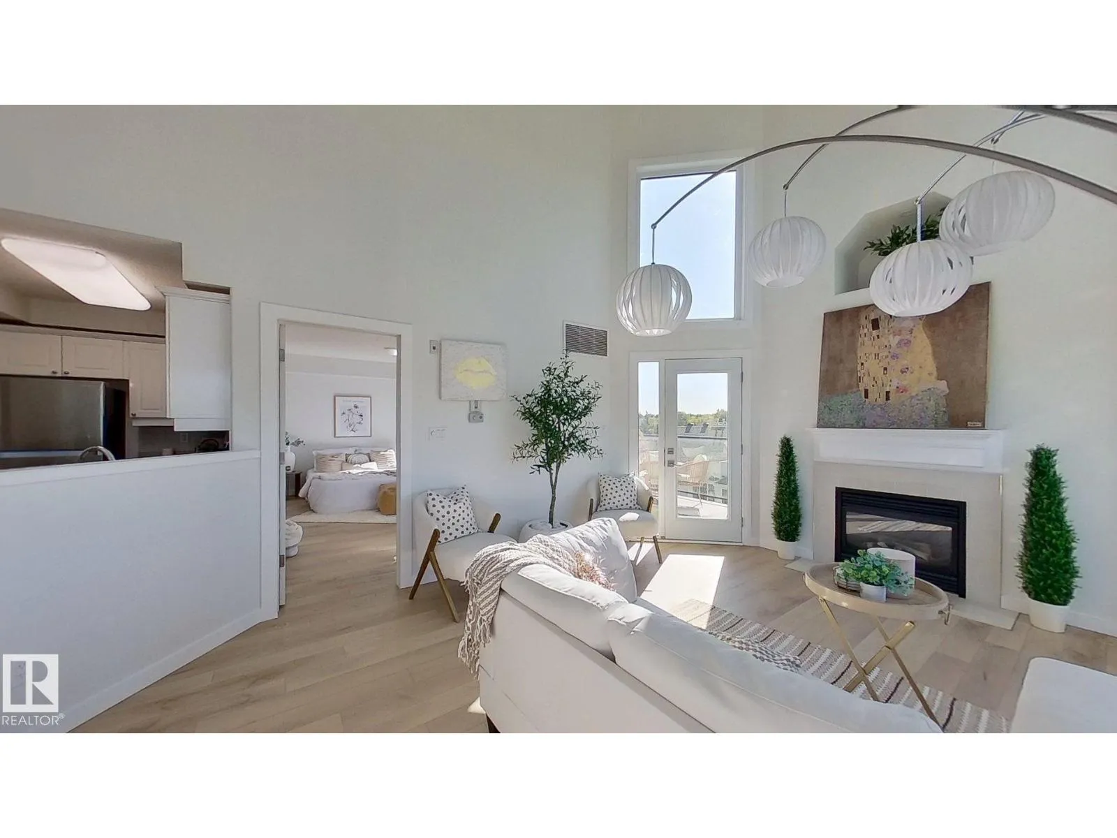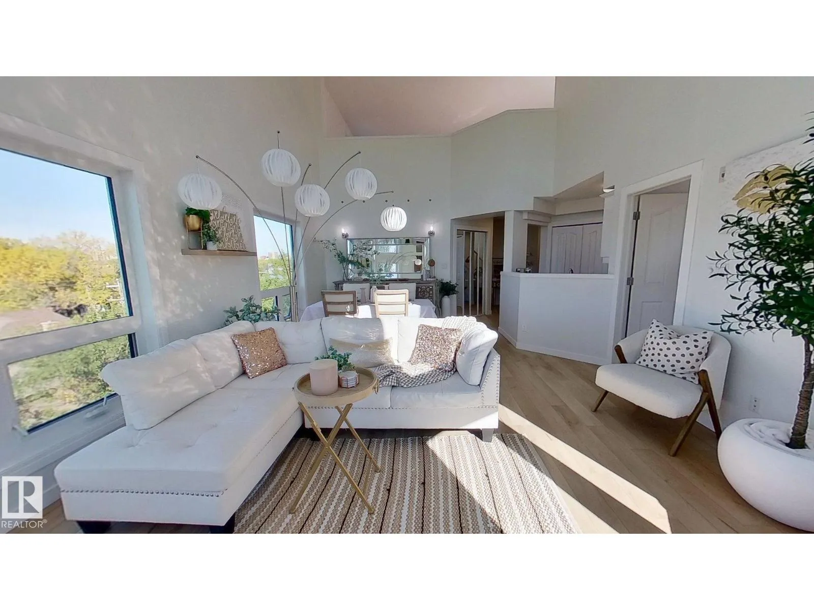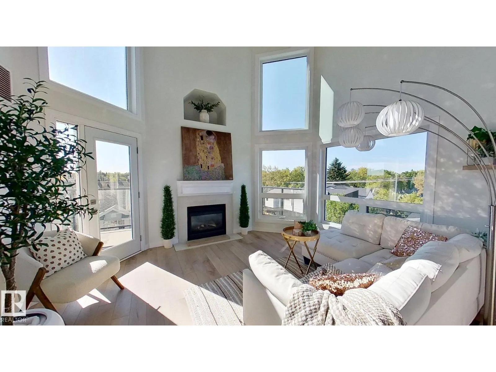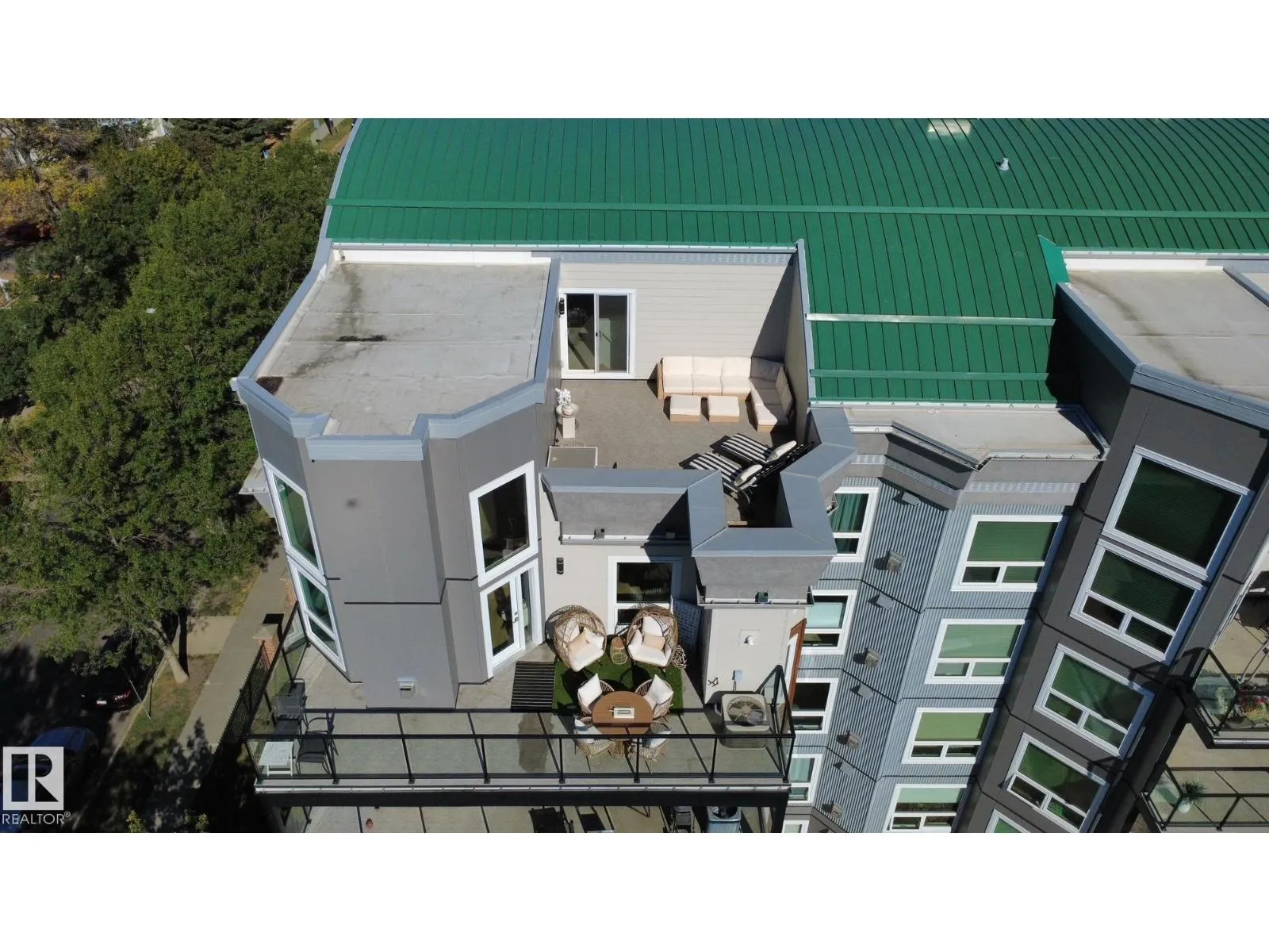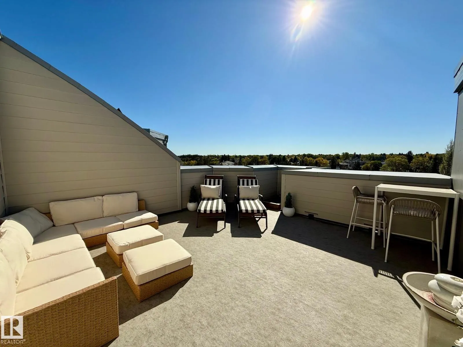 Stunning 2-bedroom, 2-bathroom 1487 sq ft 2-story penthouse condo in the heart of Ritchie, where modern design meets executive living. With 20-foot vaulted ceilings, floor-to-ceiling windows, and endless natural light, this one-of-a-kind corner unit offers panoramic views of Edmontonâs river valley and downtown skyline. Step inside and be wowed by the expansive open-concept living space with upgraded luxury flooring, brand new stainless appliances, full-size washer/dryer, and stylish modern finishes. The 2nd floor loft provides the perfect flex space for a 3rd bedroom, office, or games room. Rare find with TWO titled underground parking stalls and TWO storage lockers. Corner unit with only one direct neighbor for added privacy. Steps to the elevator for convenience. Enjoy two outdoor living areas with a south-facing deck off the living room with unlimited river valley views and a private rooftop terrace â your very own sky-high retreat, ideal for entertaining, lounging, or creating a chic outdoor oasis. (id:27476)