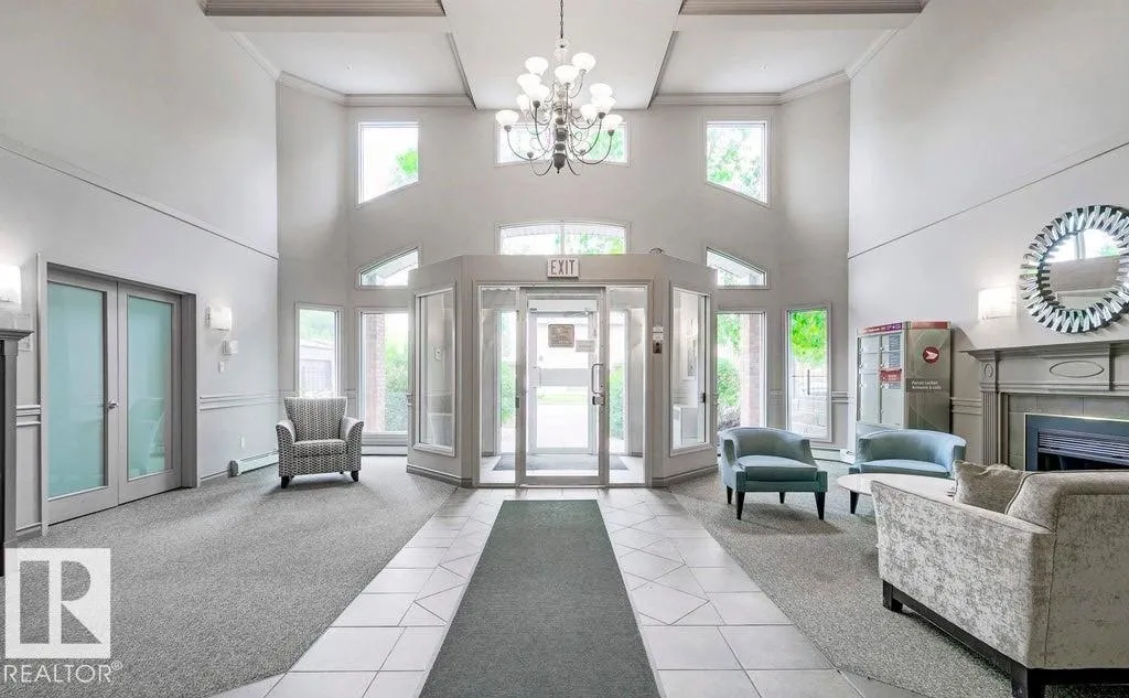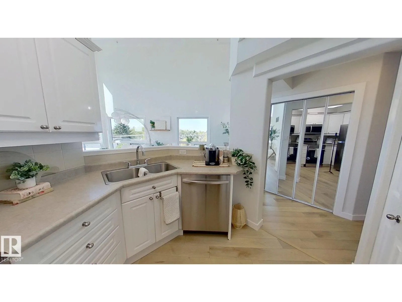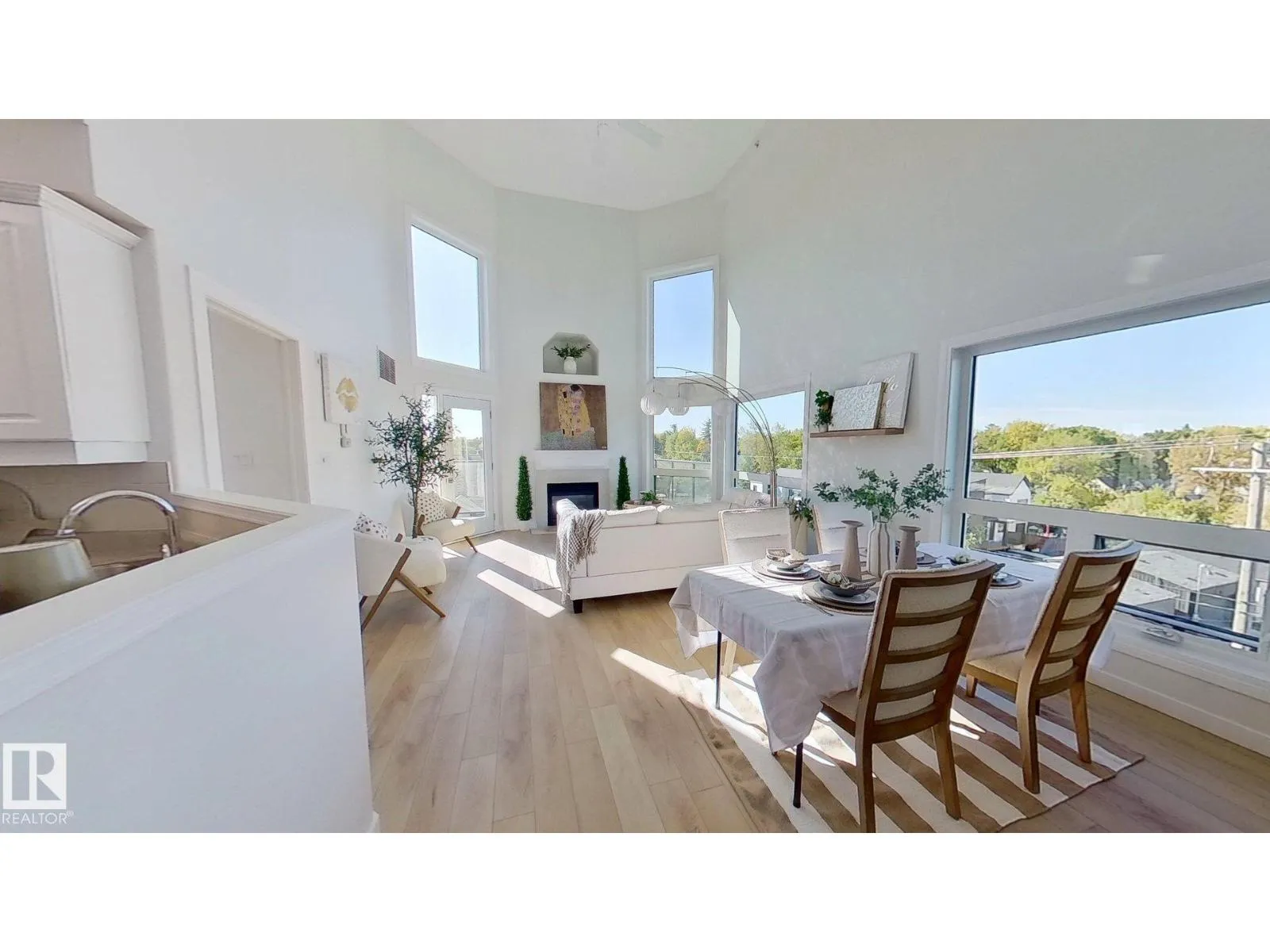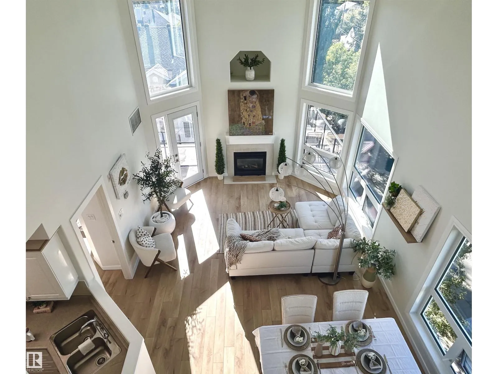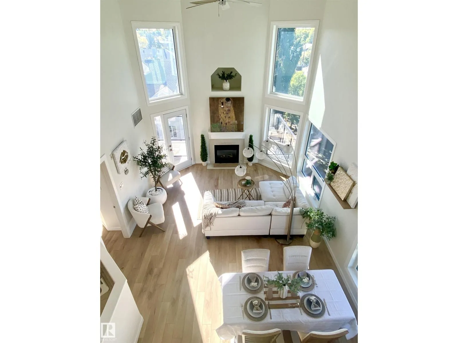 Stunning 2-bedroom, 2-bathroom 1487 sq ft 2-story penthouse condo in the heart of Ritchie, where modern design meets executive living. With 20-foot vaulted ceilings, floor-to-ceiling windows, and endless natural light, this one-of-a-kind corner unit offers panoramic views of Edmontonâs river valley and downtown skyline. Step inside and be wowed by the expansive open-concept living space with upgraded luxury flooring, brand new stainless appliances, full-size washer/dryer, and stylish modern finishes. The 2nd floor loft provides the perfect flex space for a 3rd bedroom, office, or games room. Rare find with TWO titled underground parking stalls and TWO storage lockers. Corner unit with only one direct neighbor for added privacy. Steps to the elevator for convenience. Enjoy two outdoor living areas with a south-facing deck off the living room with unlimited river valley views and a private rooftop terrace â your very own sky-high retreat, ideal for entertaining, lounging, or creating a chic outdoor oasis. (id:27476)