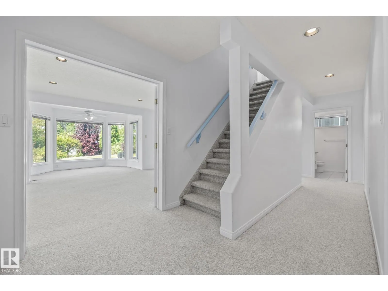 This is a RARE opportunity in the prestigious, family-friendly community of Rhatigan Ridge. This custom home sits on a massive lot featuring 6 beds, 4 full baths, large windows, a fully finished WALKOUT basement, no rear neighbours, and views of the cityâs sunrises & sunsets. Youâre greeted w/ a breathtaking front entrance w/ soaring ceilings, a large kitchen, dining, & living area that overlook the huge backyard, a gas fireplace, a main floor bed/office & 3pc bath. Upstairs hosts 2 beds, a 4pc bath, laundry room, and a massive primary bedroom w/ a 5pc ensuite & walk-in closet. The basement offers 2 more beds, a 4pc bath, and an expansive family/rec room perfect for any needs. Your private, fully landscaped backyard features a unique walking path, fire pit, & gas hookup. Major upgrades in 2025 include Poly B replacement, 2 new furnaces, gas stove, hood fan, dishwasher, vinyl floors, & garage opener. This home is surrounded by amenities & schools and provides easy access to the entire city. Welcome home! (id:27476)