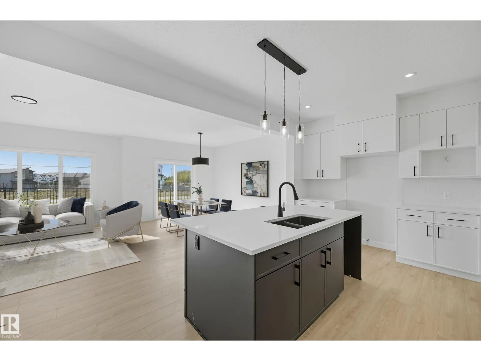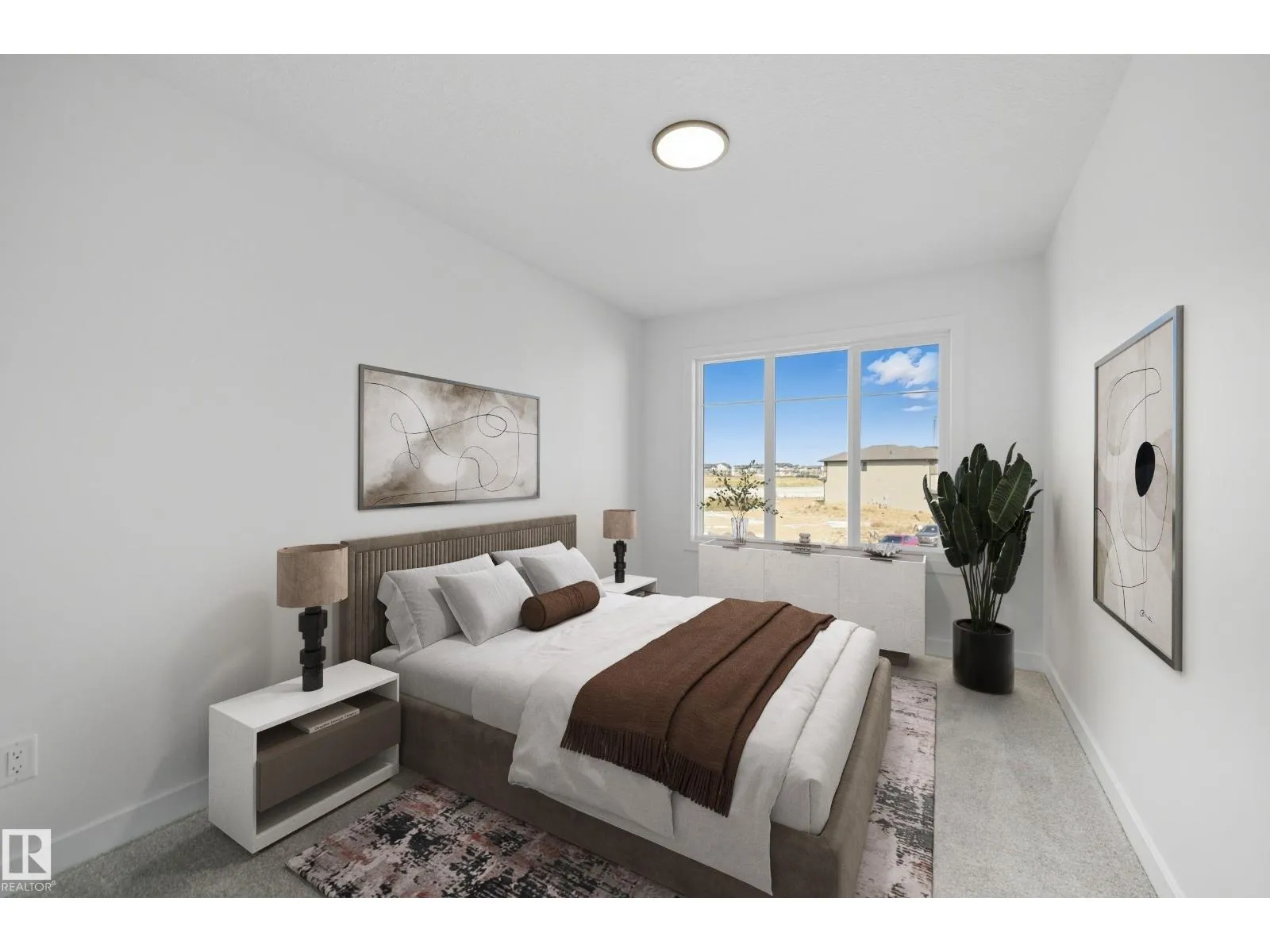 Welcome to the modified Evan, boasting 2,270 sq. ft. of thoughtfully designed living space & ideal BACKING SW ON GREENSPACE. Versatile layout adapts seamlessly to your lifestyle, whether accommodating guests, office, or MULTI-GENERATIONAL LIVING. MAIN FLOOR BEDROOM with full bathroom, & a convenient SIDE ENTRANCE that enhances potential for BASEMENT SUITE. Open-concept main floor where the kitchen shines with a LARGE ISLAND, QUARTZ countertops, & a WALK-THRU MUDROOM adjacent to the mudroom. This culinary space overlooks the dining nook & spacious great room, making it ideal for entertaining. Upper level opens to VAULTED BONUS ROOM perfect for relaxing/play area. Primary suite is designed for rejuvenation, featuring a WALK-IN CLOSET, spa-inspired ensuite with DUAL SINKS, drop-in tub, & separate shower. Two more bdrms, each with WALKIN CLOSETS, full bath, UPSTAIRS LAUNDRY. With 9' main & basement get that airy open feeling. Convenient access to amenities, schools, parks, & the nearby Lewis Farms Rec Centre! (id:27476)