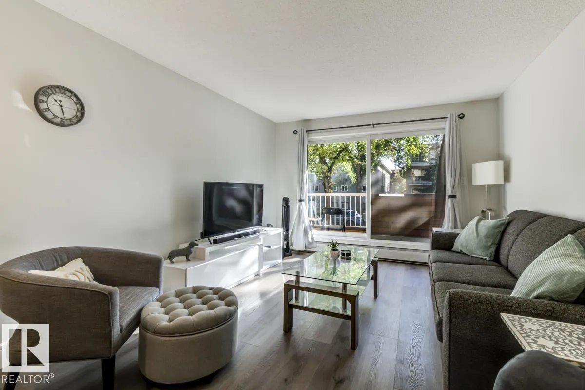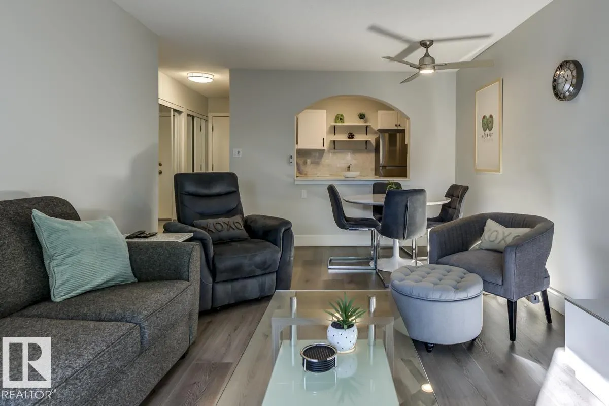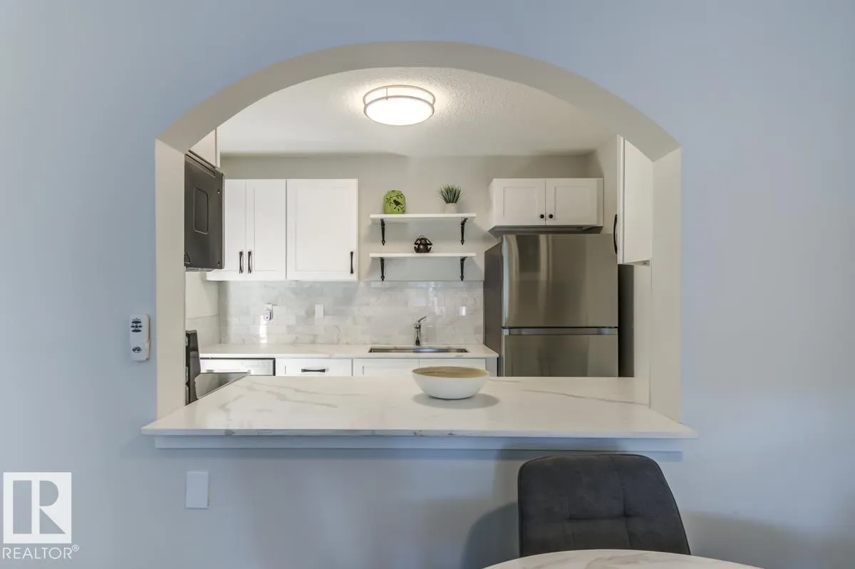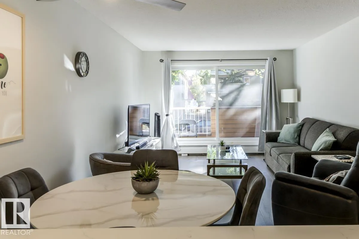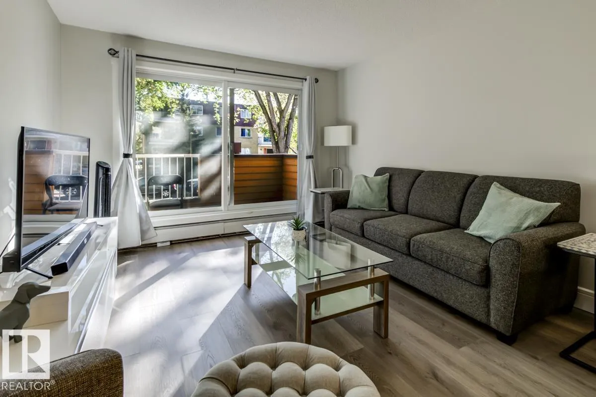 FURNITURE IS INCLUDED. Attn First time buyers, Investors, Students and Sports Fans. Step into this beautifully renovated 2nd floor 1 bedroom, 1 bath condo! This unit is steps from Rogers Place arena, MacEwan University, the LRT, and all the excitement of the Ice District. Inside, youâll love the bright, open layout featuring Vinyl Plank flooring throughout, crisp white cabinets, sleek stone countertops, and stainless steel appliances. A generously sized bedroom and updated bathroom provide comfort and convenience, while ample in-suite storage space keeps everything organized. The private balcony is ideal for morning coffee or unwinding after the big game. Whether youâre catching an Oilers game, a concert, heading to class, or enjoying Edmontonâs vibrant dining and nightlife scene, youâll be perfectly situated to take advantage of it all. (id:27476)