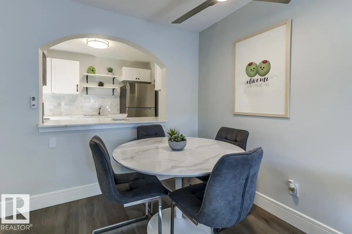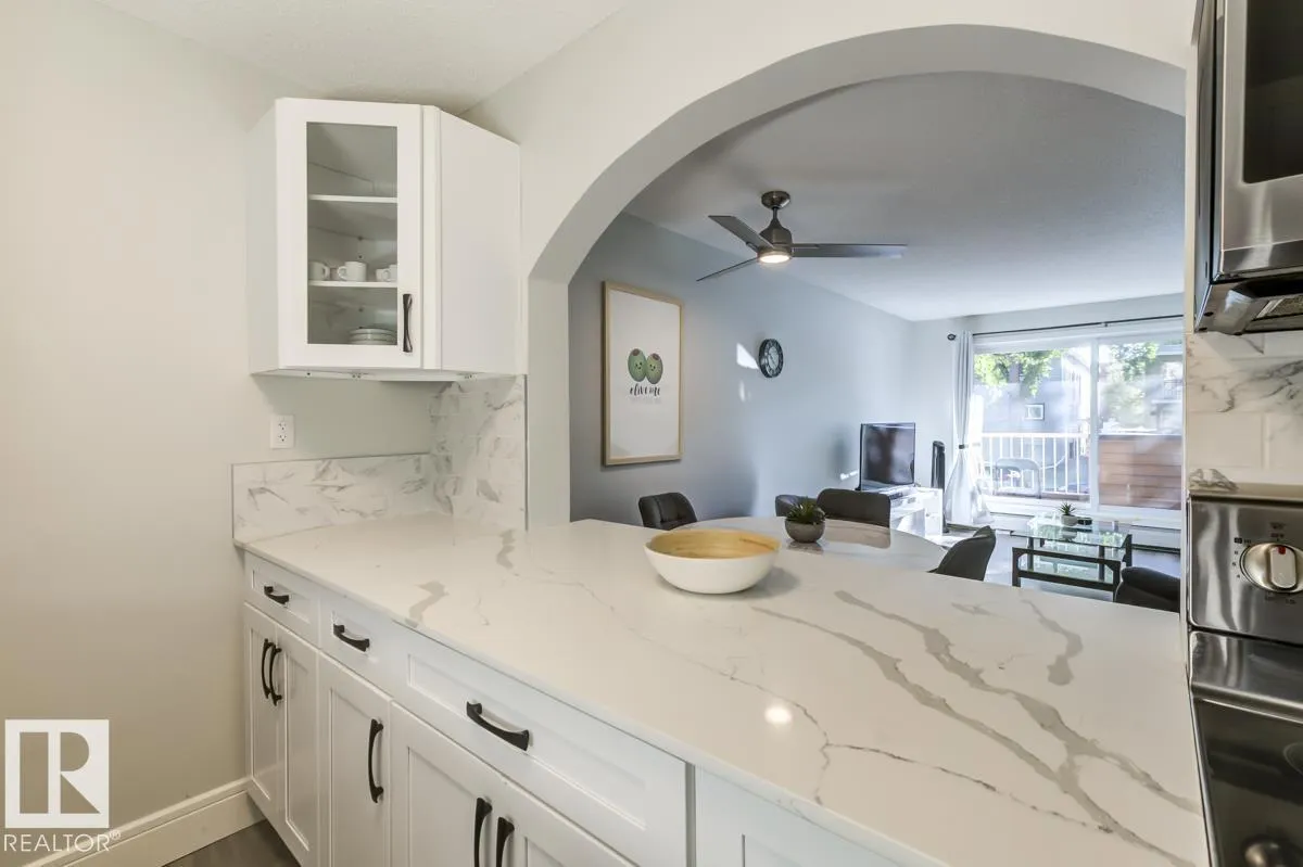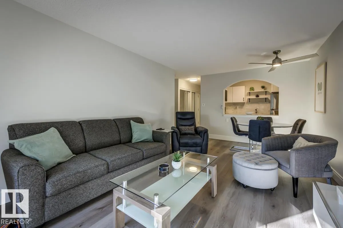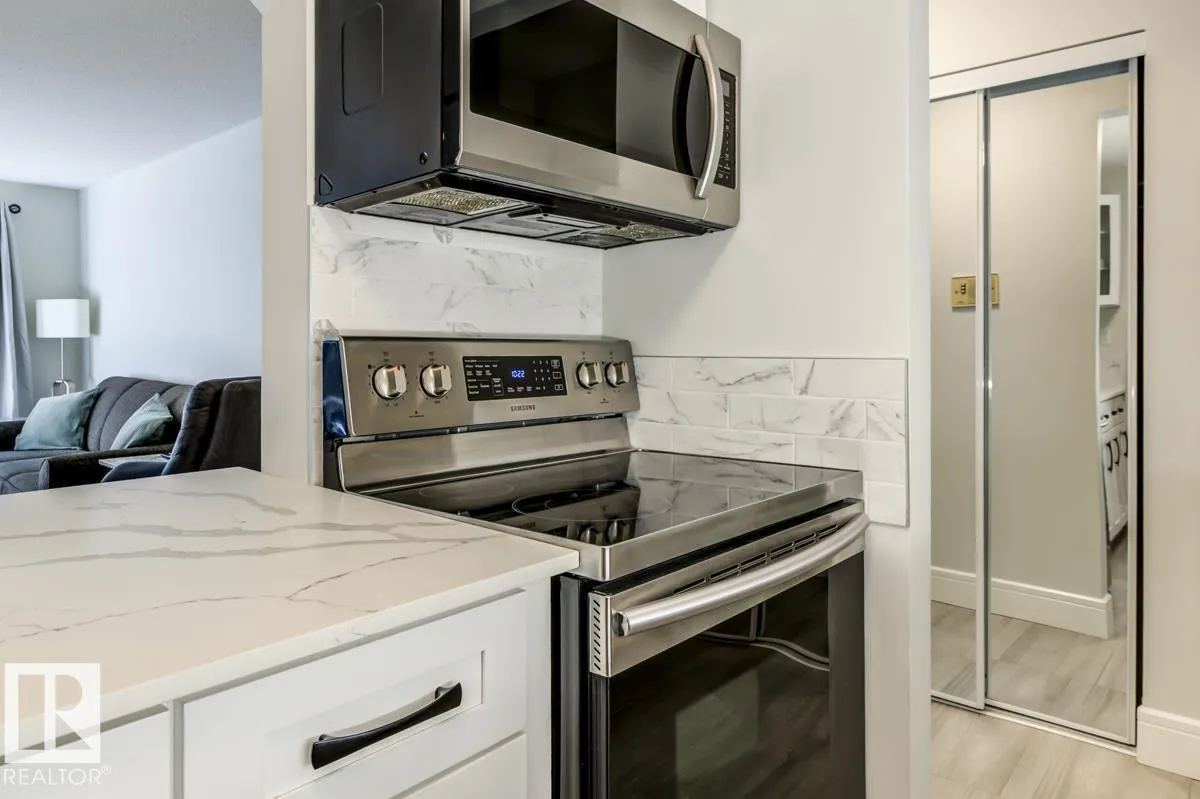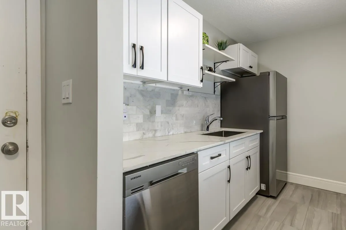 FURNITURE IS INCLUDED. Attn First time buyers, Investors, Students and Sports Fans. Step into this beautifully renovated 2nd floor 1 bedroom, 1 bath condo! This unit is steps from Rogers Place arena, MacEwan University, the LRT, and all the excitement of the Ice District. Inside, youâll love the bright, open layout featuring Vinyl Plank flooring throughout, crisp white cabinets, sleek stone countertops, and stainless steel appliances. A generously sized bedroom and updated bathroom provide comfort and convenience, while ample in-suite storage space keeps everything organized. The private balcony is ideal for morning coffee or unwinding after the big game. Whether youâre catching an Oilers game, a concert, heading to class, or enjoying Edmontonâs vibrant dining and nightlife scene, youâll be perfectly situated to take advantage of it all. (id:27476)