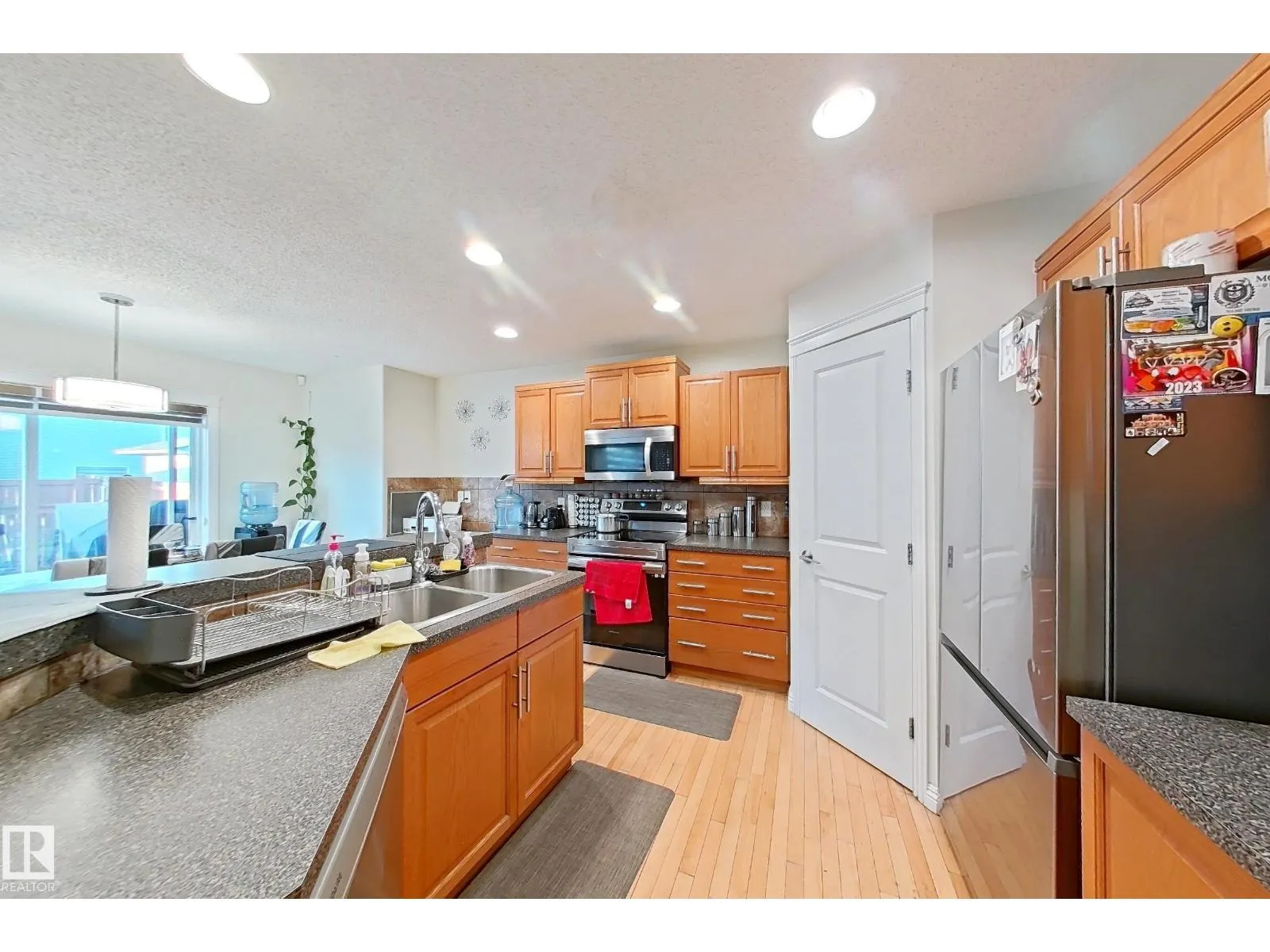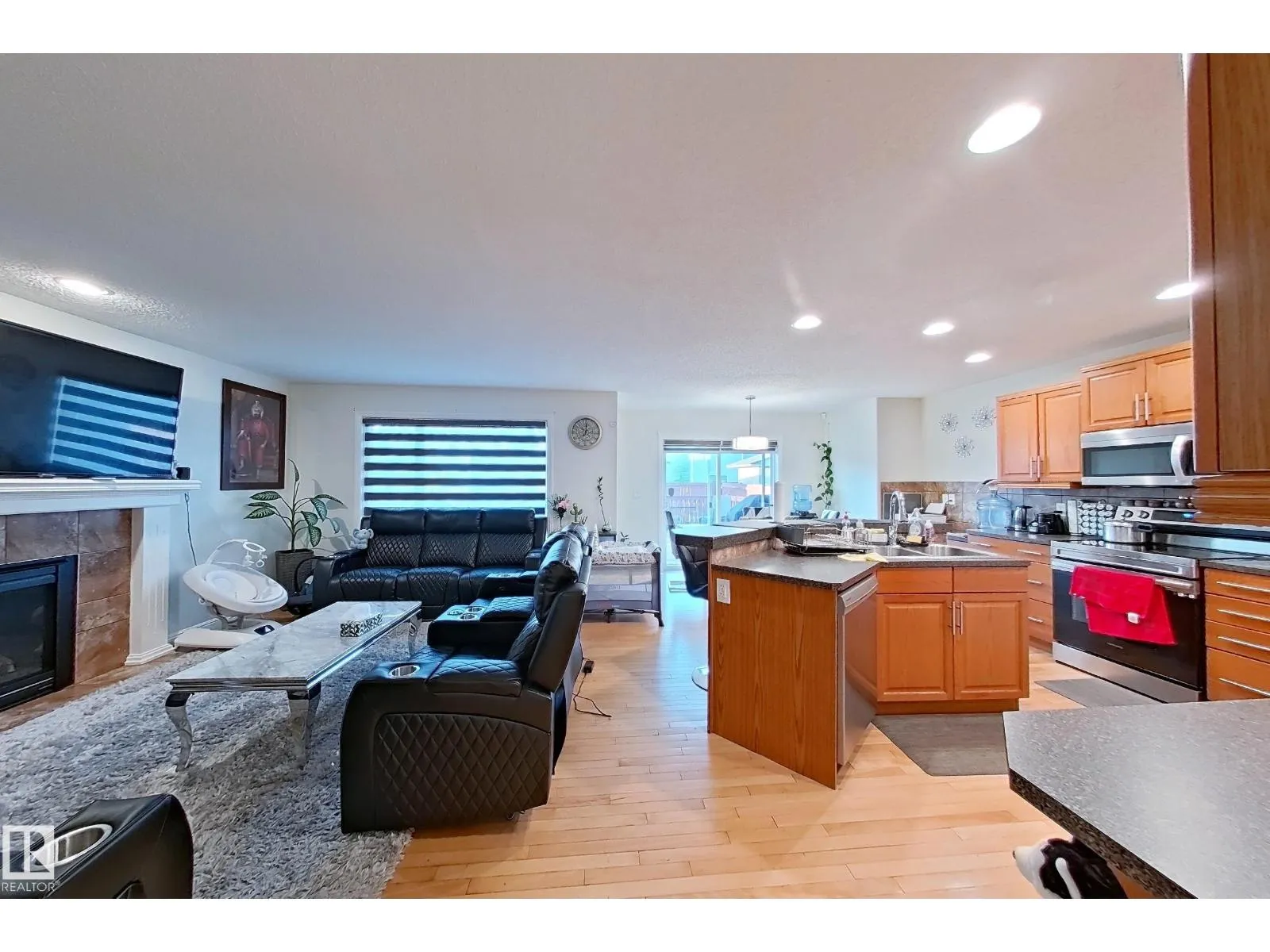 Welcome to this beautifully upgraded two-storey home in the highly sought-after Silver Berry community. The main floor features a bright living room with a cozy gas fireplace, an open dining area, and a stylish kitchen with maple cabinets, a center island, a corner pantry, and convenient main-floor laundry, along with a 2-piece powder room for guests. Upstairs, youâll find a spacious primary bedroom with a walk-in closet and private ensuite, two additional bedrooms with closets, a full 4-piece bathroom, and a generous family/bonus room. The FULLY FINISHED BASEMENT with SEPARATE ENTRANCE offers a second kitchen, a large family room, a utility/storage room, an additional bedroom, and another full 4-piece bathroom â making it perfect for extended family or guests. This home also features a brand-new roof, adding peace of mind and long-term value. With its smart upgrades, functional spaces, and ideal layout, itâs perfect for comfortable family living or multi-generational use. (id:27476)
