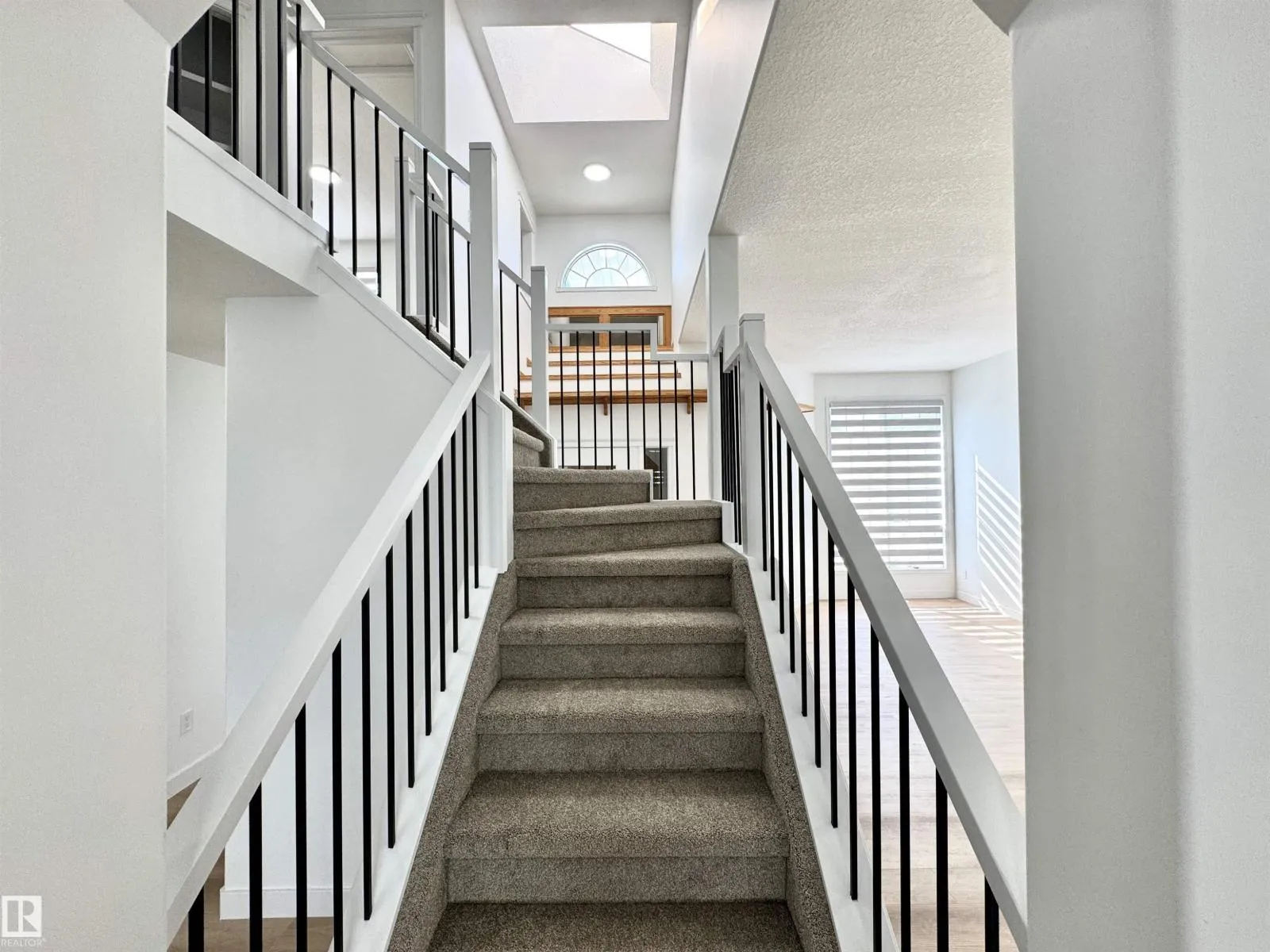 RENOVATED AND MODERN 2200+ sq ft home in Larkspur! On entry, you are greeted by grand foyer and a striking spiral staircase leading to spacious living and dining areas. The sunken family room features a cozy gas fireplace, and the chefâs kitchen boasts granite countertops, pantry, NEW CABINETRY, and NEW SS appliances. Upstairs, the luxurious primary suite includes a spacious bedroom, walk-in closet with MDF shelving, and spa-like ensuite with JACUZZI, and two additional bedrooms include a stylish 3pc bath. The FULLY FINISHED BASEMENT includes a 4pc bath, bedroom, spacious rec room, den, and living area. Additional features include MDF shelving in closets, FRESH PAINT, NEW BLINDS, NEWER FURNACE AND WATER TANK, and NEW FLOORING AND CARPET throughout the entire home. Set on a large lot with mature trees, deck, shed, oversized garage, and EXTENDED DRIVEWAYâmove-in ready with modern upgrades throughout. Prime location near parks, golf course, schools, shopping, and transit. (id:27476)
