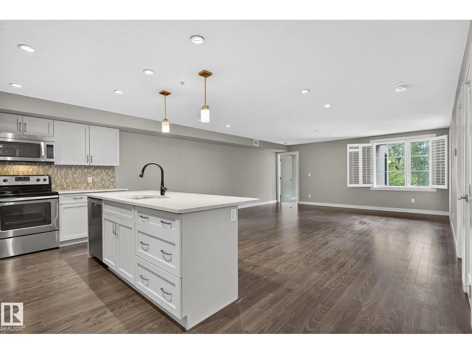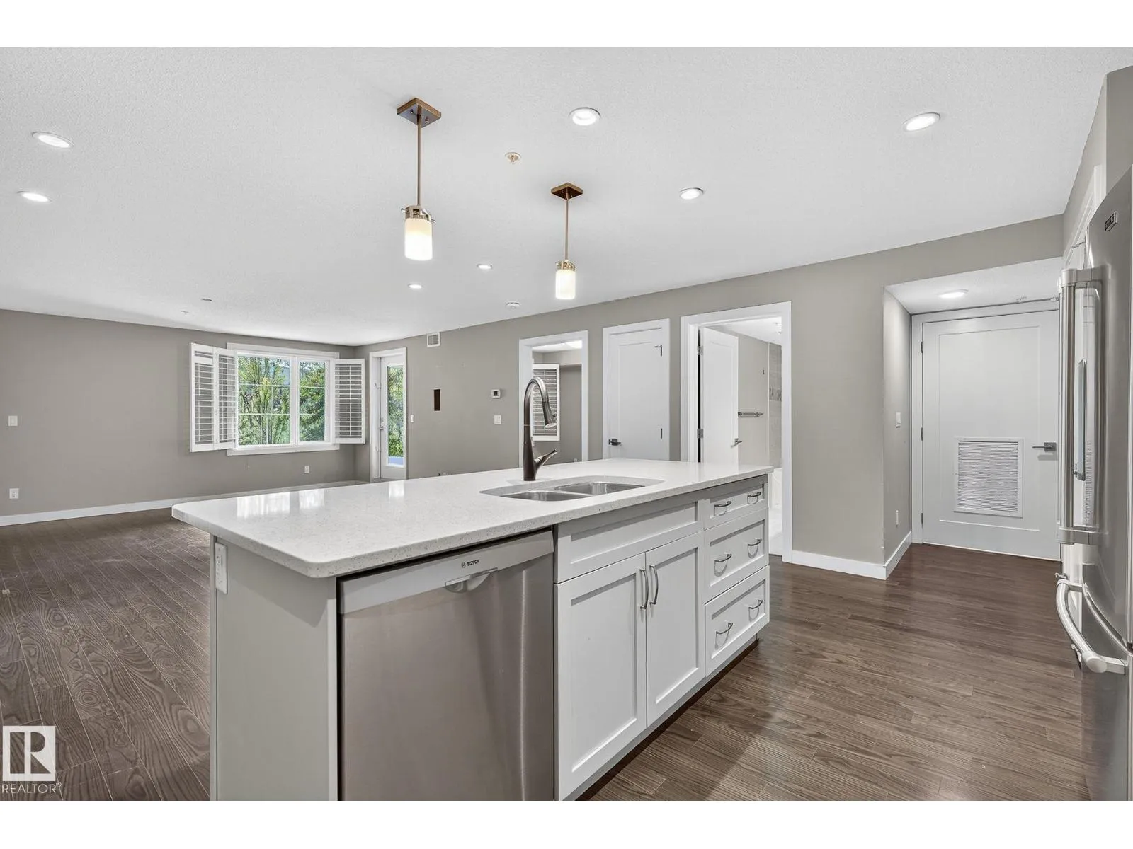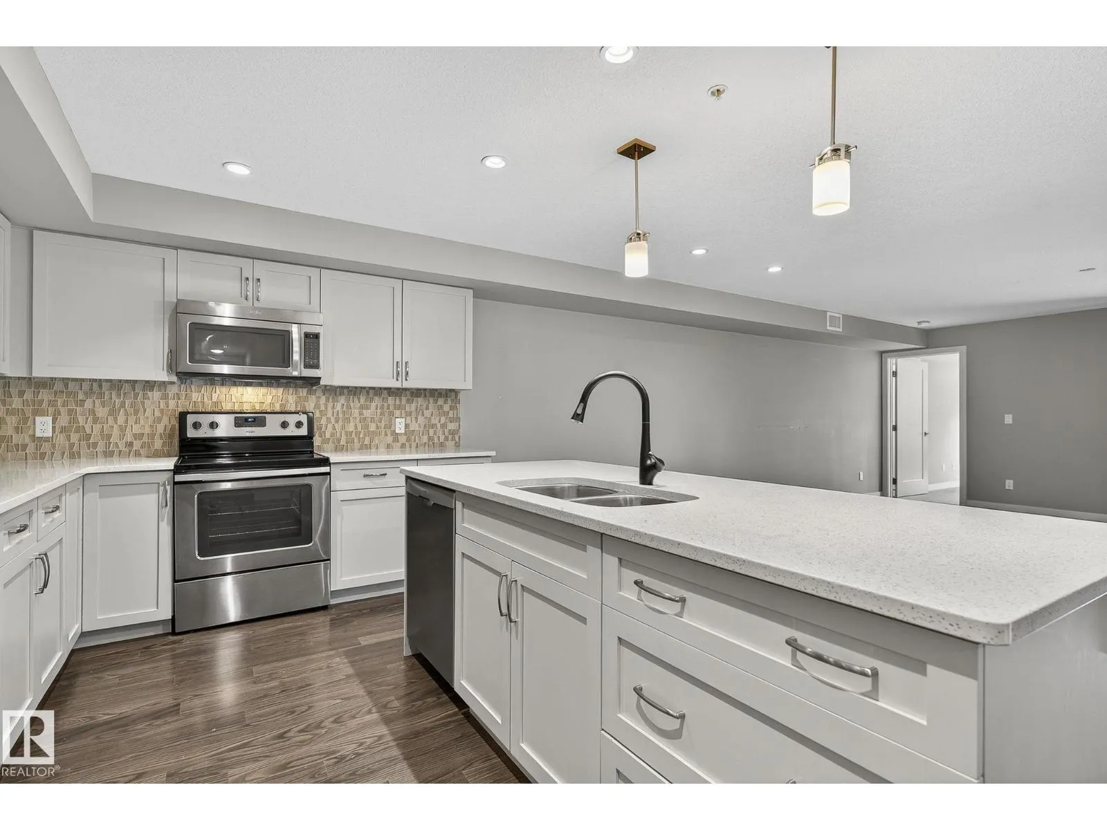 Welcome to The Parc at Edgemont Ravine, Adult living(18+) where dream condo living meets full ravine views! This rare SW-facing unit sits on the 1st floor with massive windows, flooding the the 1,111sqft open-concept plan with natural light. Featuring 2 bedrooms and 2 baths, the homeâs centerpiece is a stunning kitchen with a huge island, quartz counters, upgraded appliances, soft-close drawers, under-cabinet lighting, & ample storage. The spacious living room & dining area flow seamlessly, perfect for entertaining or relaxing with tranquil views. The primary suite includes a large walk-in closet & 3pc ensuite. Step outside to your large private patio with natural gas BBQ hookupâideal for sunsets and summer nights. Complete with A/C, in-suite laundry, 1 titled parking stall, and 2 titled storage spaces (a large room just across the hall plus a storage cage). Rare opportunity to enjoy resort-style living with unmatched privacy and scenery, a true must see to be appreciated! (id:27476)