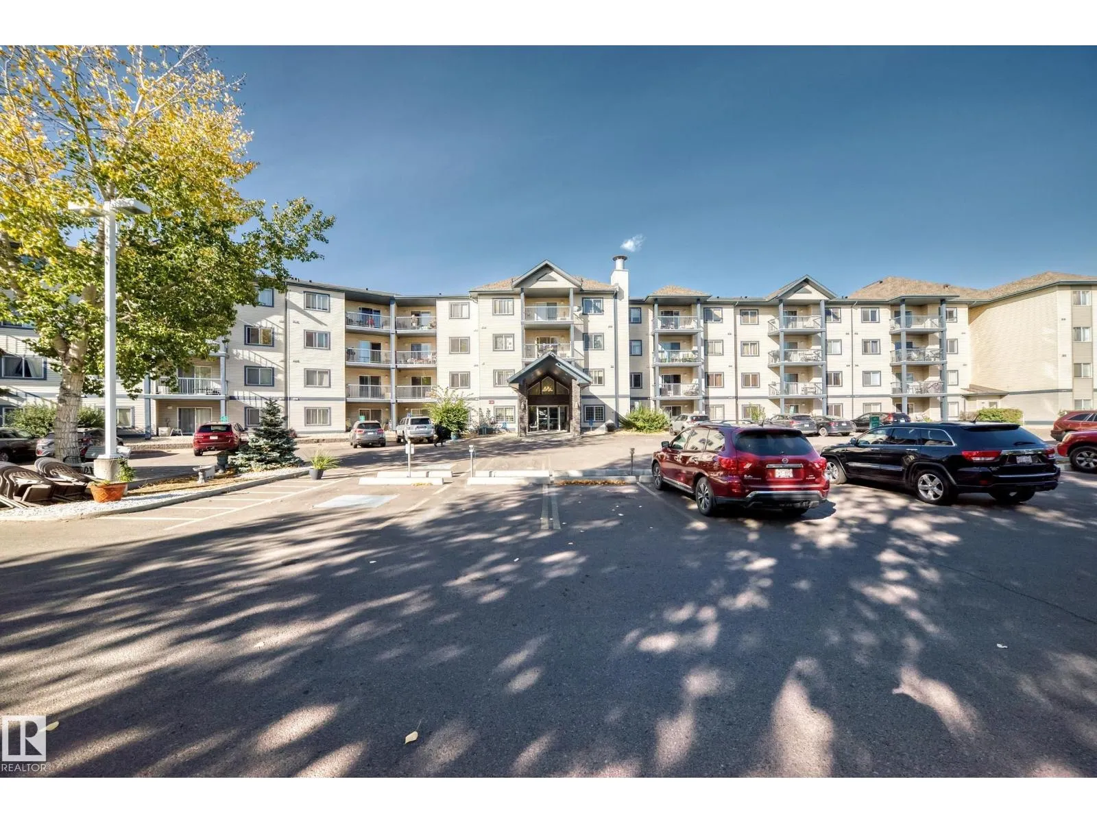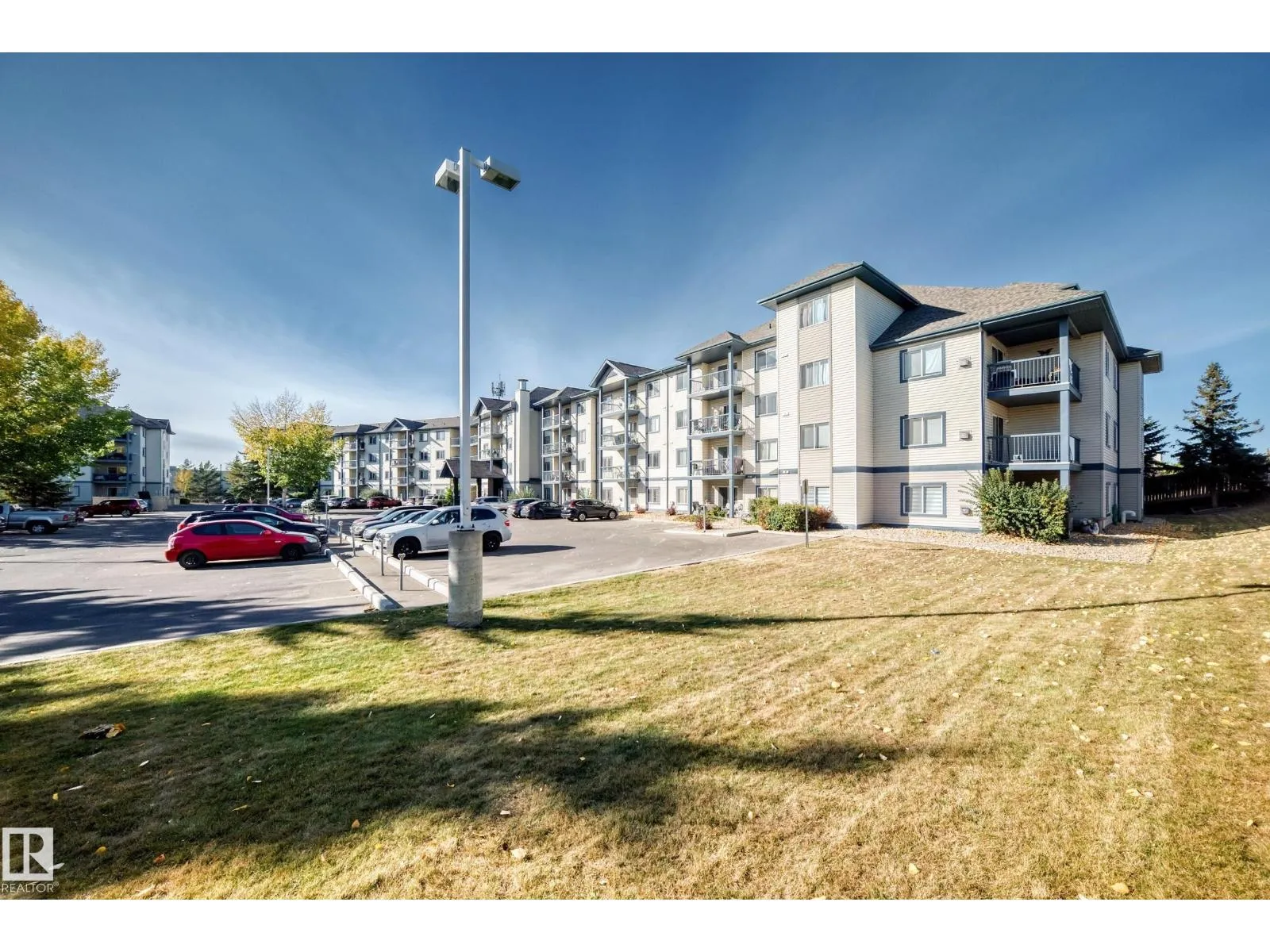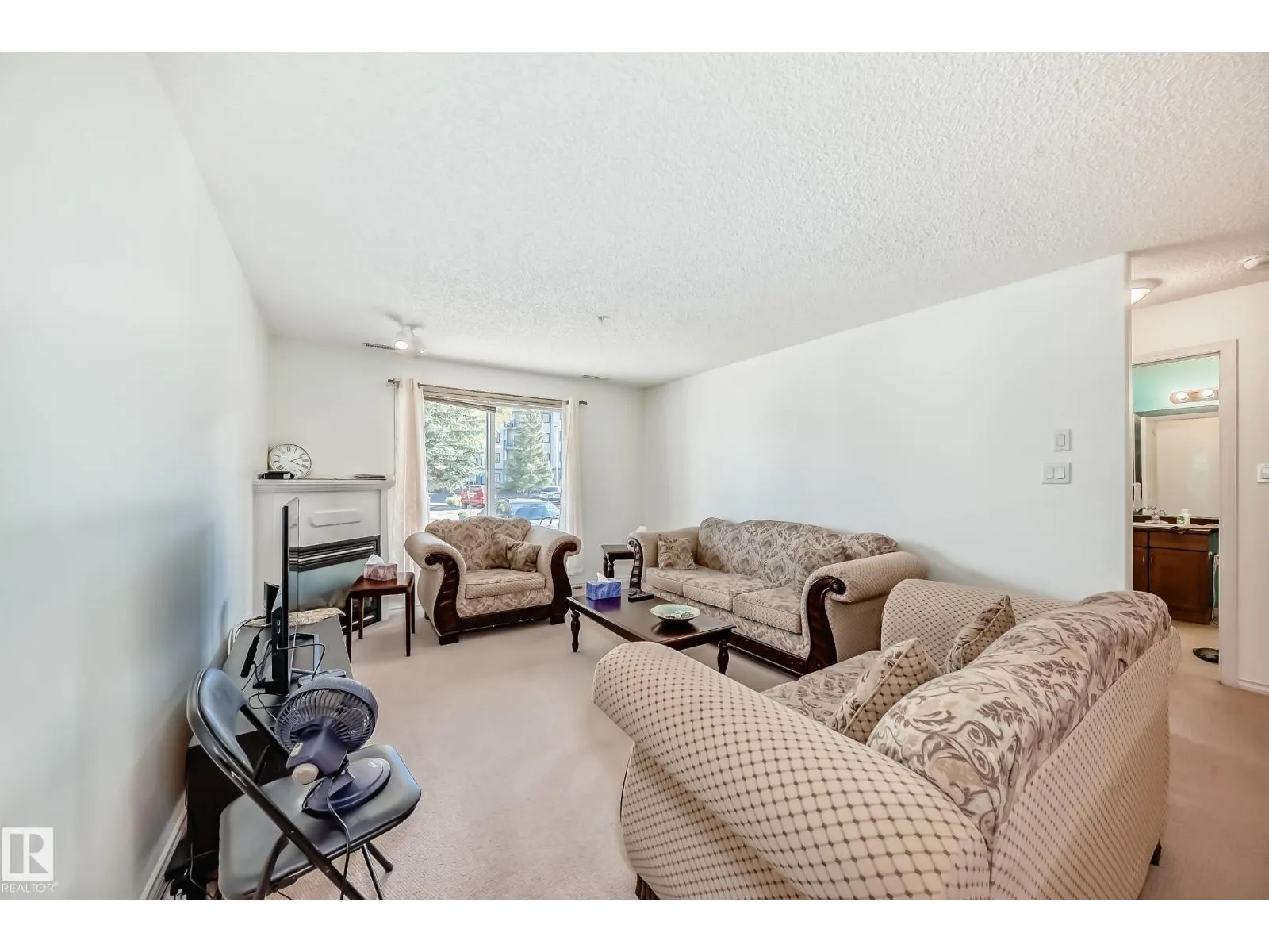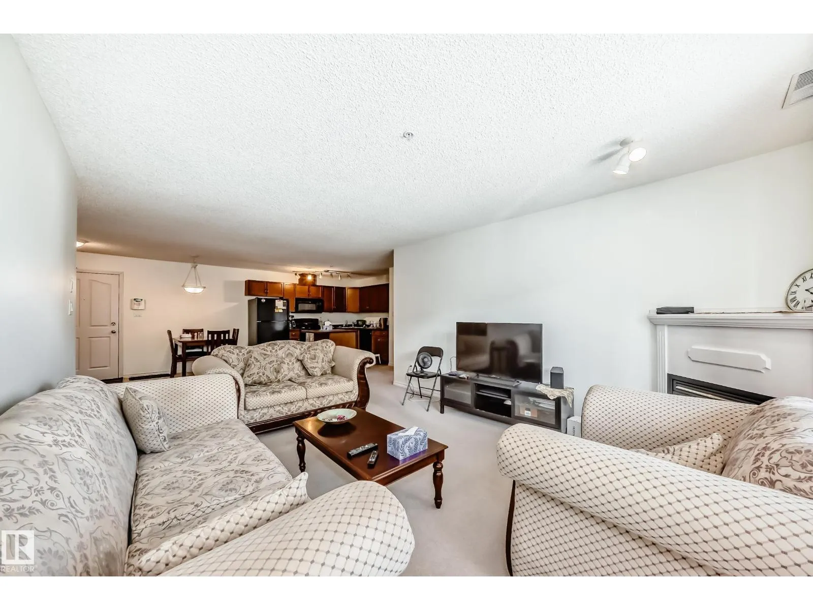 ATTENTION FIRST-TIME BUYERS & INVESTORS! Welcome to this affordable 2 BEDROOM, 2 BATH condo in desirable Eaux Claires. This bright SOUTH-FACING unit features a spacious open floor plan, large closets, a cozy corner gas fireplace, and patio doors leading to a sunny private patio. The kitchen offers maple cabinetry, under-cabinet lighting, and a moveable island. Bedrooms are thoughtfully placed on opposite sides for added privacy, each with its own full bath. Enjoy the comfort of A/C, in-suite laundry, and the convenience of your PARKING STALL literally right outside the unit. The building includes a guest suite and exercise room. Ideally located just steps from shopping, dining, and public transit, with quick access to 97 St, NAIT, downtown, Anthony Henday, and only 10 minutes to CFB Edmonton. A well-managed complex with LOW condo fees that include heat and water make this a smart investment. Move-in ready and waiting for you! (id:27476)