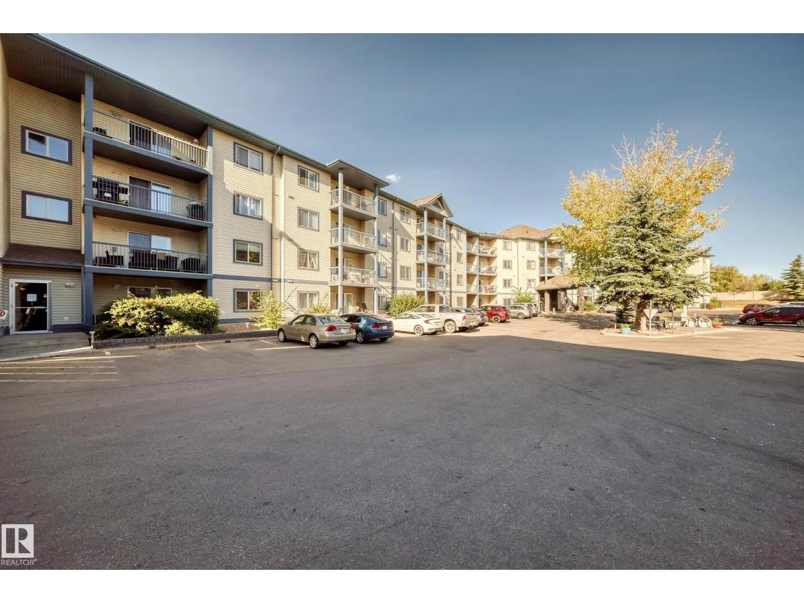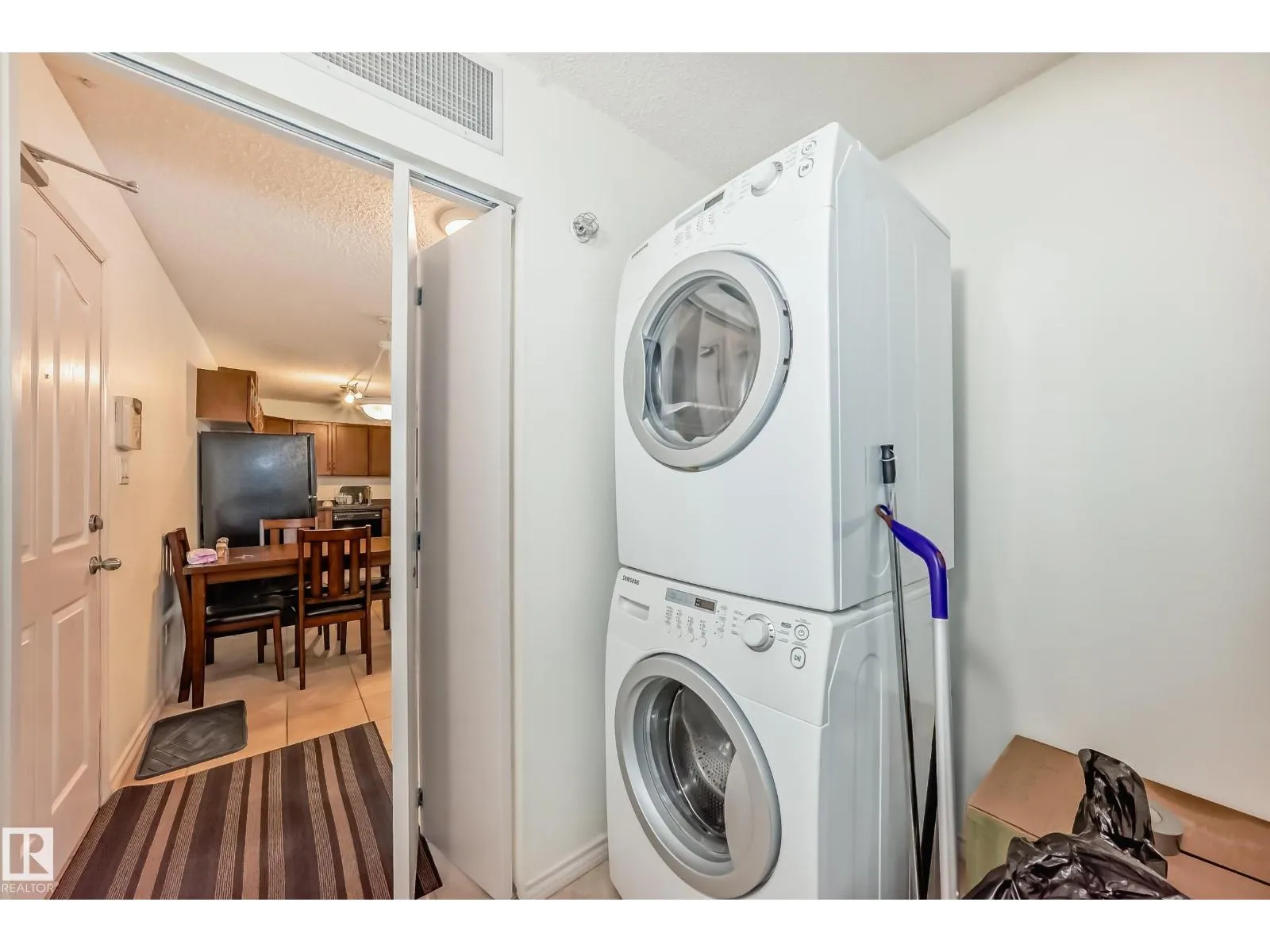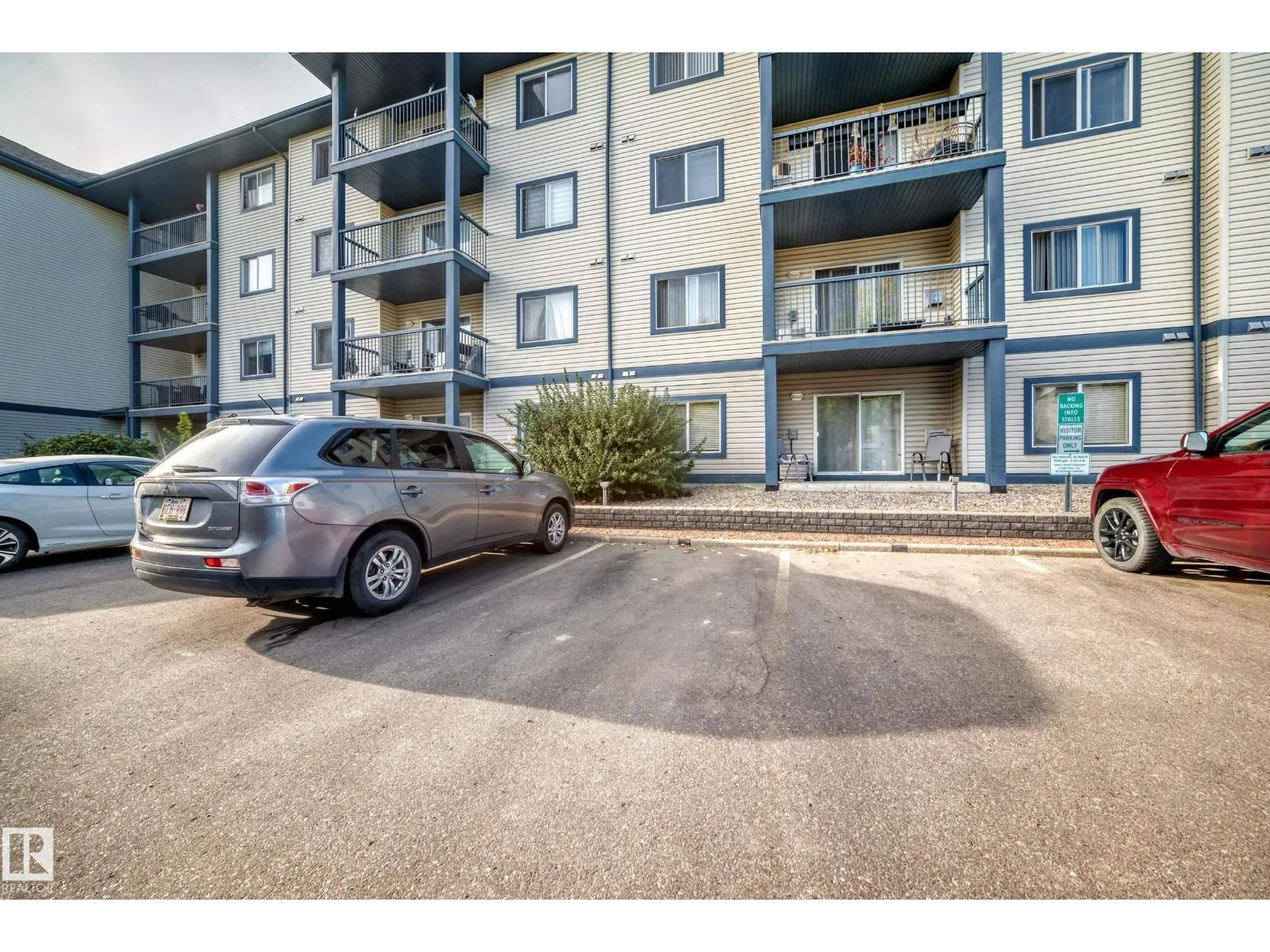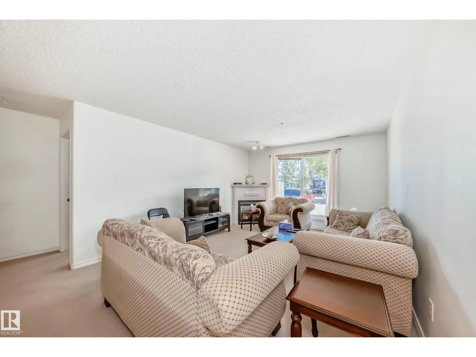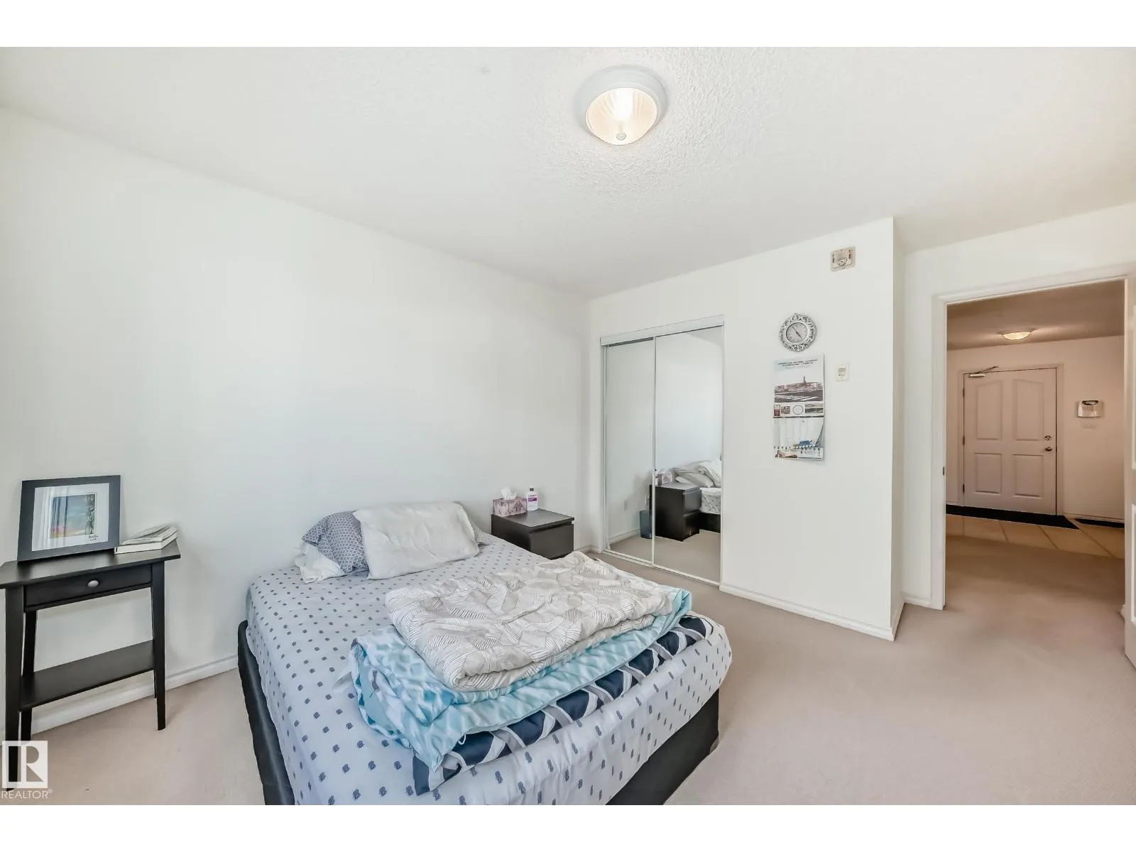 ATTENTION FIRST-TIME BUYERS & INVESTORS! Welcome to this affordable 2 BEDROOM, 2 BATH condo in desirable Eaux Claires. This bright SOUTH-FACING unit features a spacious open floor plan, large closets, a cozy corner gas fireplace, and patio doors leading to a sunny private patio. The kitchen offers maple cabinetry, under-cabinet lighting, and a moveable island. Bedrooms are thoughtfully placed on opposite sides for added privacy, each with its own full bath. Enjoy the comfort of A/C, in-suite laundry, and the convenience of your PARKING STALL literally right outside the unit. The building includes a guest suite and exercise room. Ideally located just steps from shopping, dining, and public transit, with quick access to 97 St, NAIT, downtown, Anthony Henday, and only 10 minutes to CFB Edmonton. A well-managed complex with LOW condo fees that include heat and water make this a smart investment. Move-in ready and waiting for you! (id:27476)