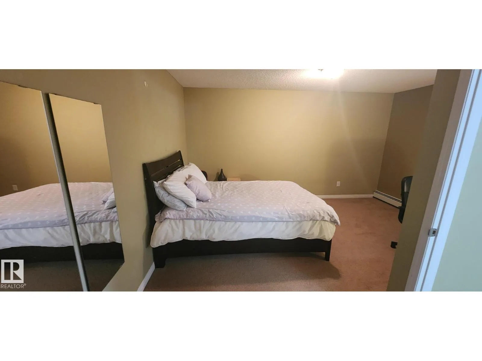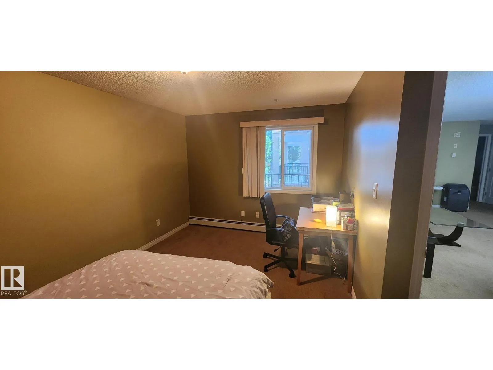 Park Place Boulavard very clean one bedroom plus den/office on the second floor in a private location in the neighborhood of Parkdale This open style condo is over 800 square feet which makes all the rooms very spacious. This condo is extremely well cared for property with a beautiful kitchen with newer white appliances over looking the living room and dining room. There is a nice den/office space and the master bed is large with a walk thru closet to a full 4 piece ensuite. There is in suite laundry and another 4 piece bath. There is sliding doors to a private covered south facing patio and you can see your 2 tandem parking spots.. Park Place Boulevard is centrally located, walking distance to LRT, groceries, restaurants, coffee shops, Commonwealth Stadium and much more. The building is very well kept and common areas are in good condition. Priced very well for the area. (id:27476)