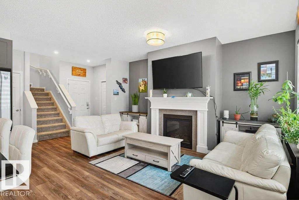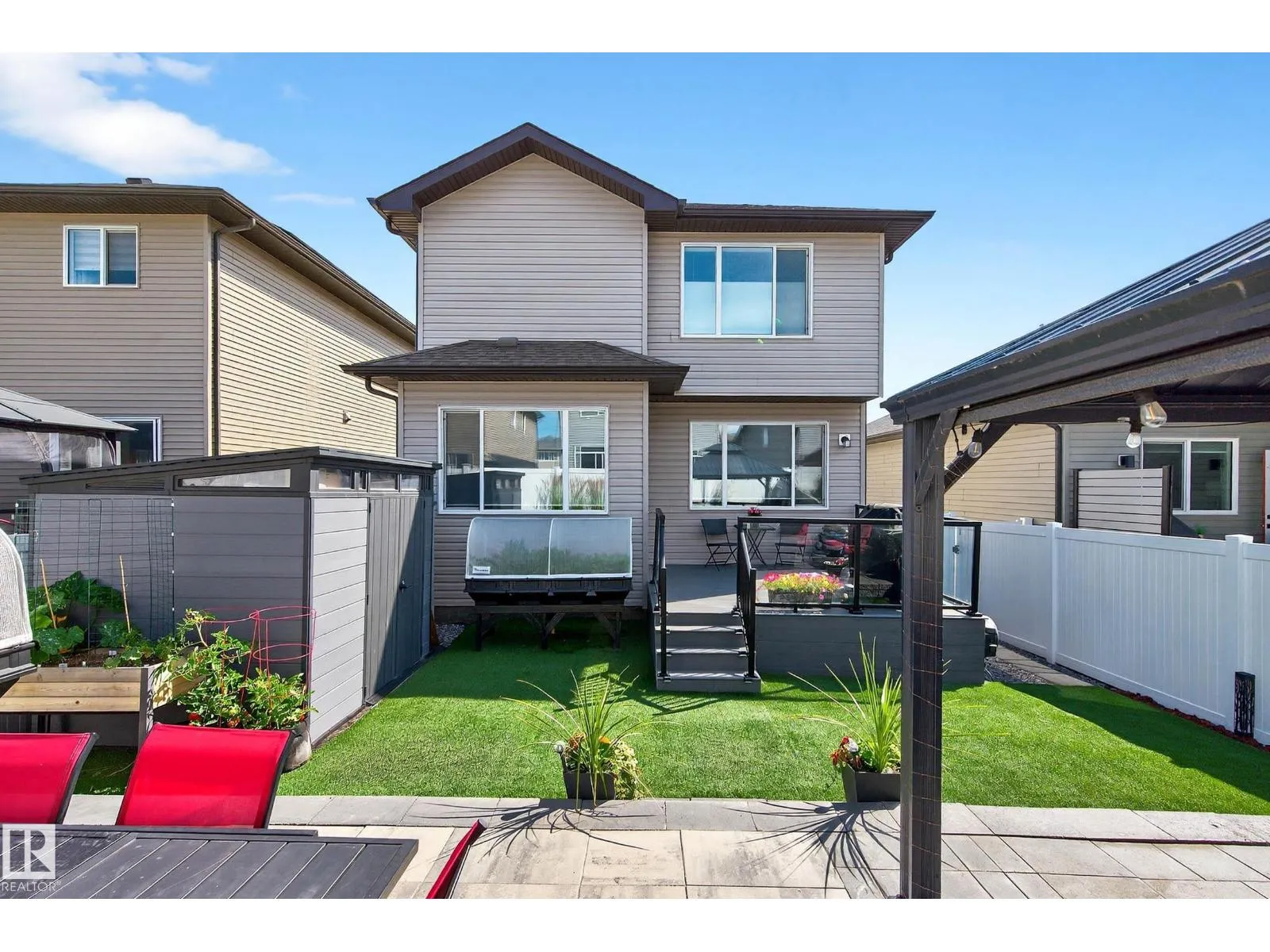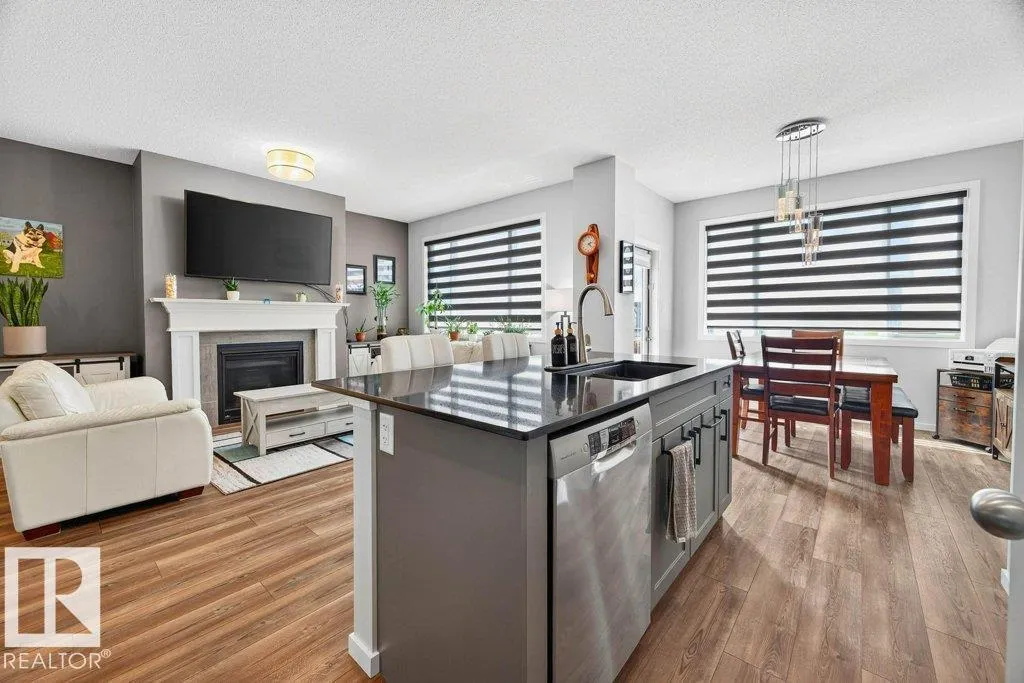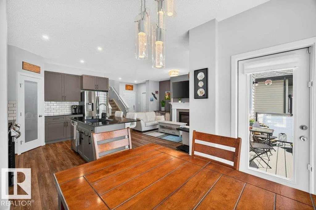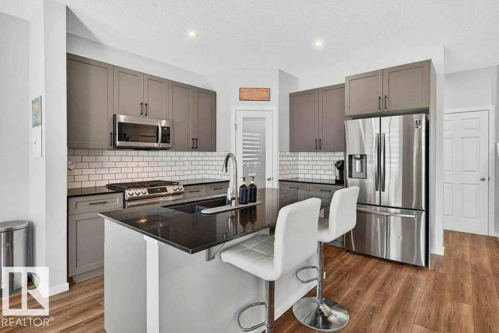 Welcome to this beautifully designed 2-storey F/F home featuring 4 bedrooms & 4 bathrooms. Step into a warm, inviting living room with a cozy fireplace that flows into the open-concept kitchen & breakfast nook. The kitchen boasts sleek stainless steel appliances, a gas stove, & central island with bar seating and access to the deckâperfect for entertaining. Main floor also offers a convenient stacked washer & dryer. Upstairs, split stairs offer privacy & functionâone side leads to a spacious bonus room, the other to a 4-pc bath & 3 bedrooms, including the luxurious primary suite with a 5-pc ensuite & walk-in closet. The F/F basement has a private entrance, full kitchen, living area, bedroom, 3-pc bath, & laundryâideal for extended family. Enjoy year-round comfort with central A/C & a double attached heated garage. The backyard is a low-maintenance oasis with turf, glass-railed deck, & a second patio space to unwind or entertain! Solar panels offer added efficiency. This home truly has it all! (id:27476)