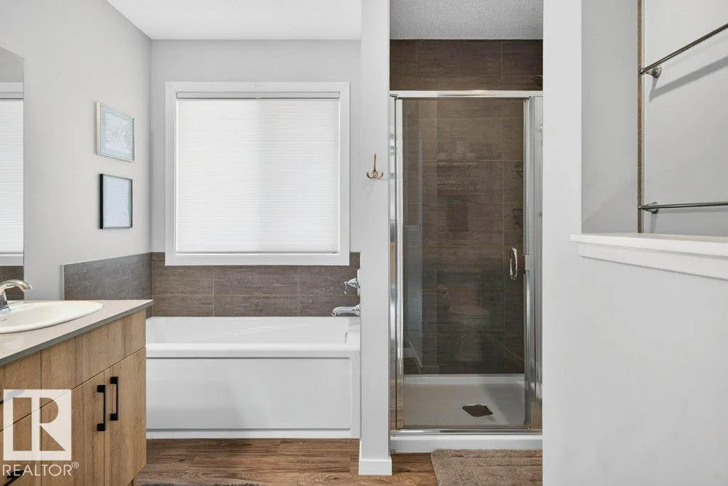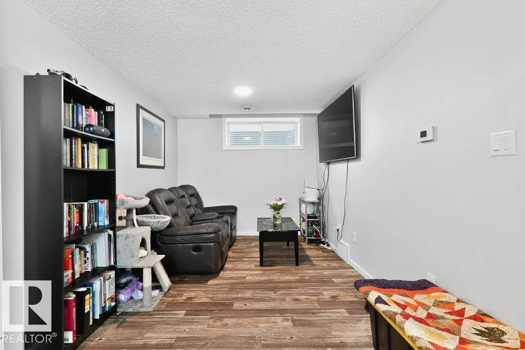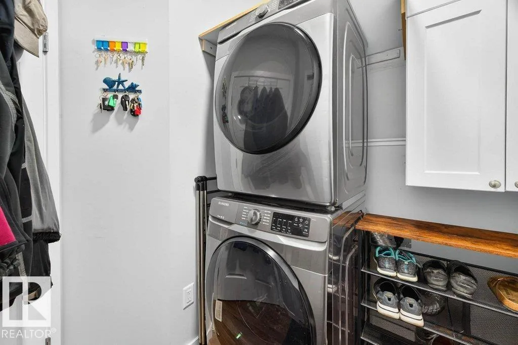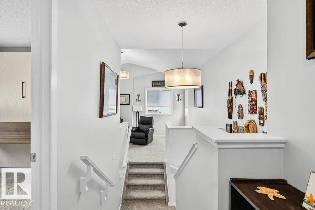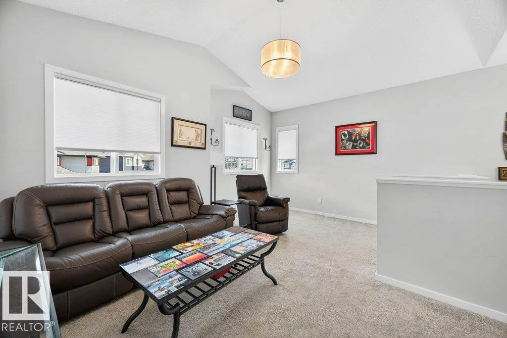 Welcome to this beautifully designed 2-storey F/F home featuring 4 bedrooms & 4 bathrooms. Step into a warm, inviting living room with a cozy fireplace that flows into the open-concept kitchen & breakfast nook. The kitchen boasts sleek stainless steel appliances, a gas stove, & central island with bar seating and access to the deckâperfect for entertaining. Main floor also offers a convenient stacked washer & dryer. Upstairs, split stairs offer privacy & functionâone side leads to a spacious bonus room, the other to a 4-pc bath & 3 bedrooms, including the luxurious primary suite with a 5-pc ensuite & walk-in closet. The F/F basement has a private entrance, full kitchen, living area, bedroom, 3-pc bath, & laundryâideal for extended family. Enjoy year-round comfort with central A/C & a double attached heated garage. The backyard is a low-maintenance oasis with turf, glass-railed deck, & a second patio space to unwind or entertain! Solar panels offer added efficiency. This home truly has it all! (id:27476)