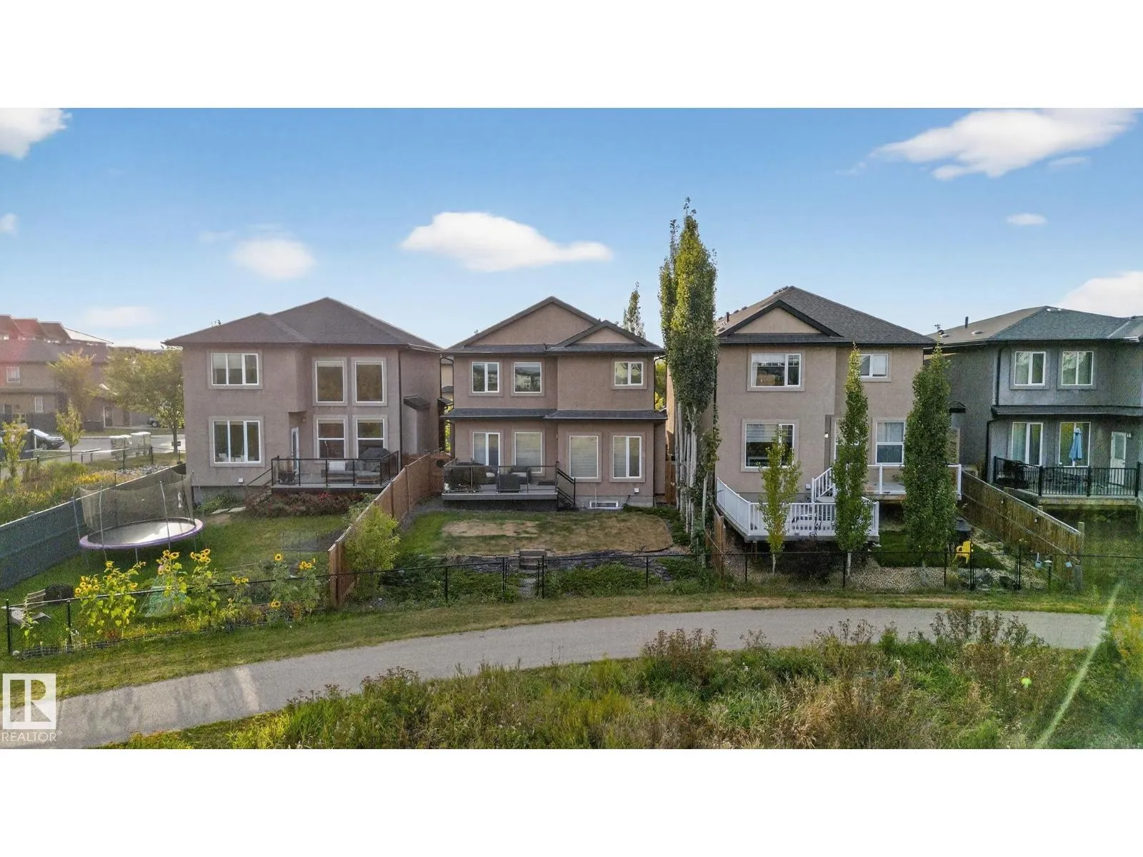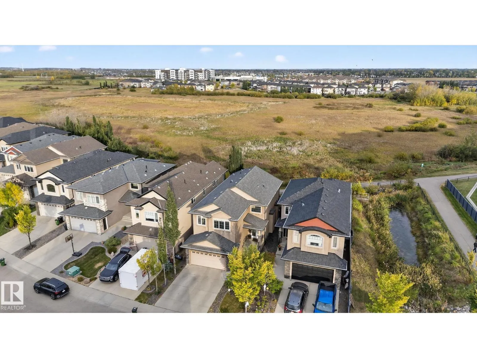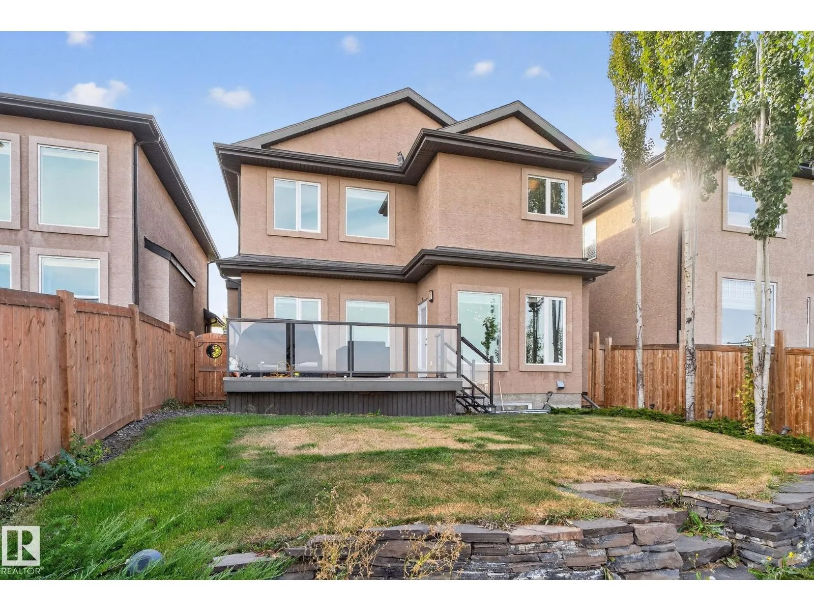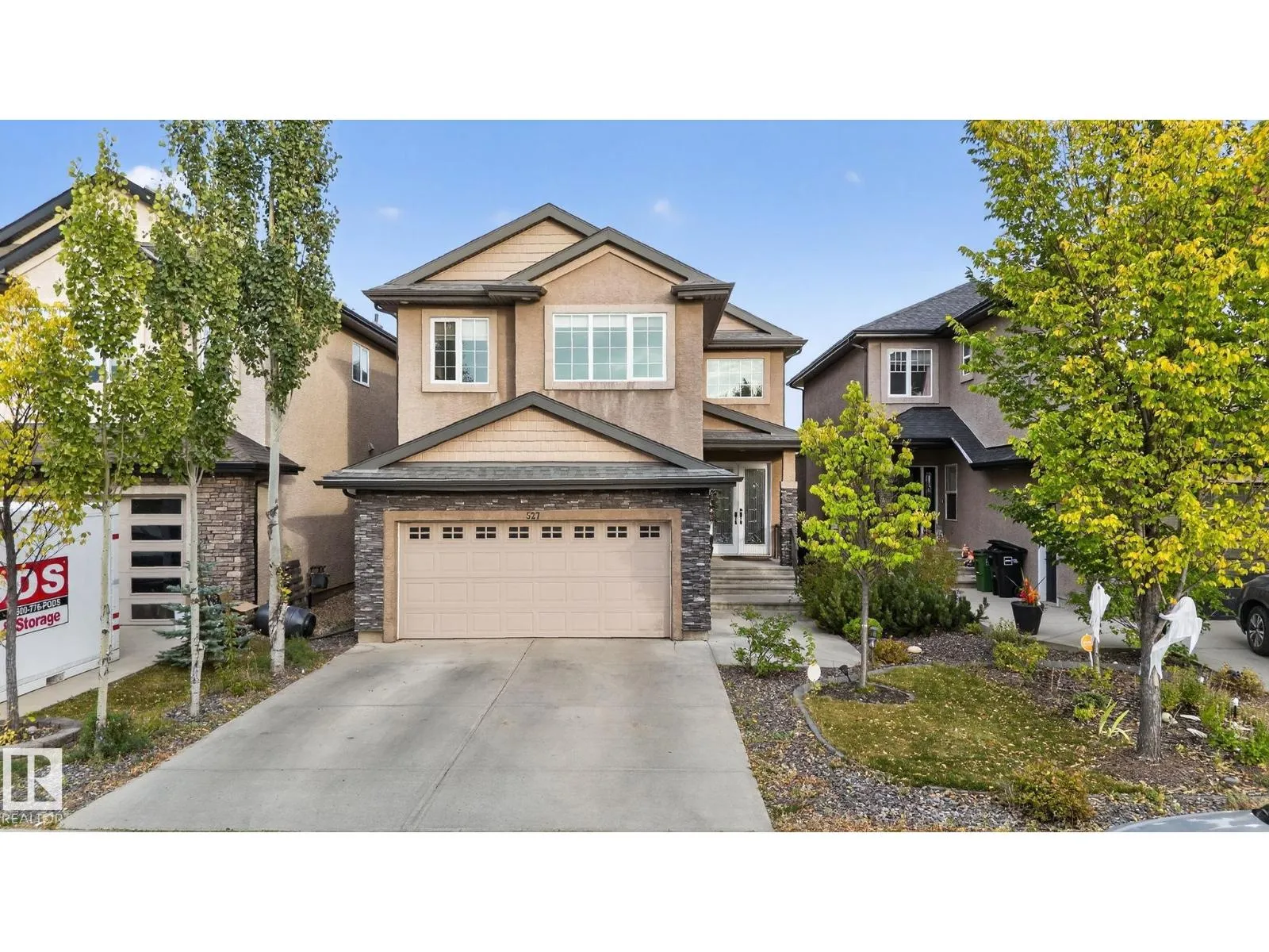 Step into luxury with this stunning, meticulously designed home that offers style, comfort, & functionality. Greeted by elegant double doors, youâll enter a bright, light-filled space. The main floor features a spacious, modern gourmet kitchen with granite countertops, SS appliances, under-cabinet lighting, & ample workspace. The open-concept living & dining areas are centered around a brick fireplace, while a dedicated home office provides the perfect work-from-home setup. Upstairs, the primary suite offers breathtaking views, a spa-inspired ensuite, and a generous walk-in closet. Two additional well-sized bedrooms, a family bathroom, & same-floor laundry complete the level. Find your fully finished basement complete with a bathroom and 2 bedrooms. Additional highlights include upgraded lighting, central A/C, premium finishes throughout, and a fully landscaped yardâall backing onto no rear neighbors for added privacy and tranquility. Only a 4-min drive to the Henday, Walmart, Sobeys, Starbucks, and more! (id:27476)