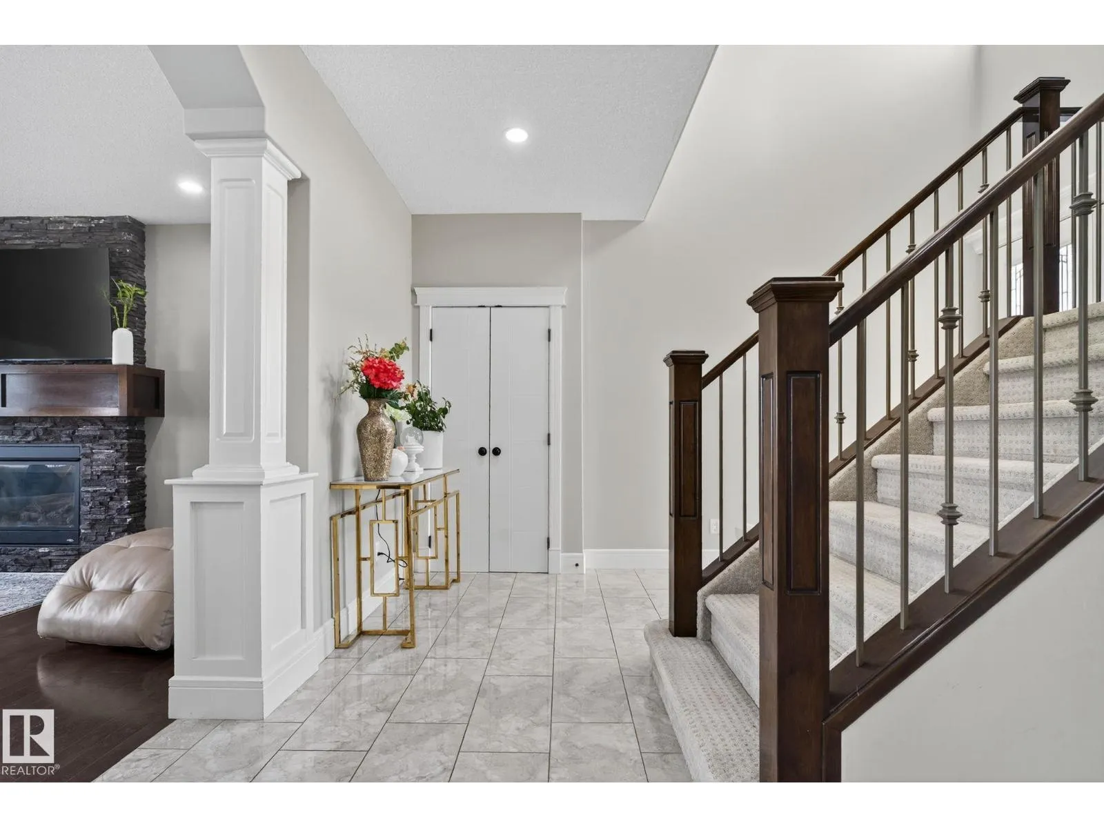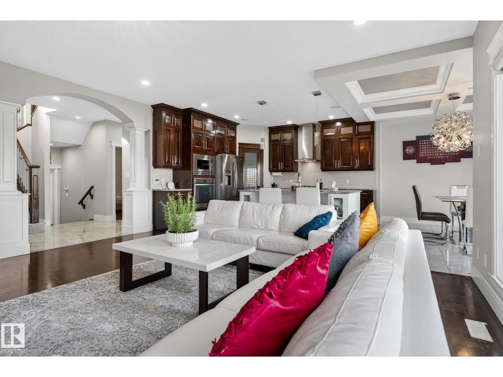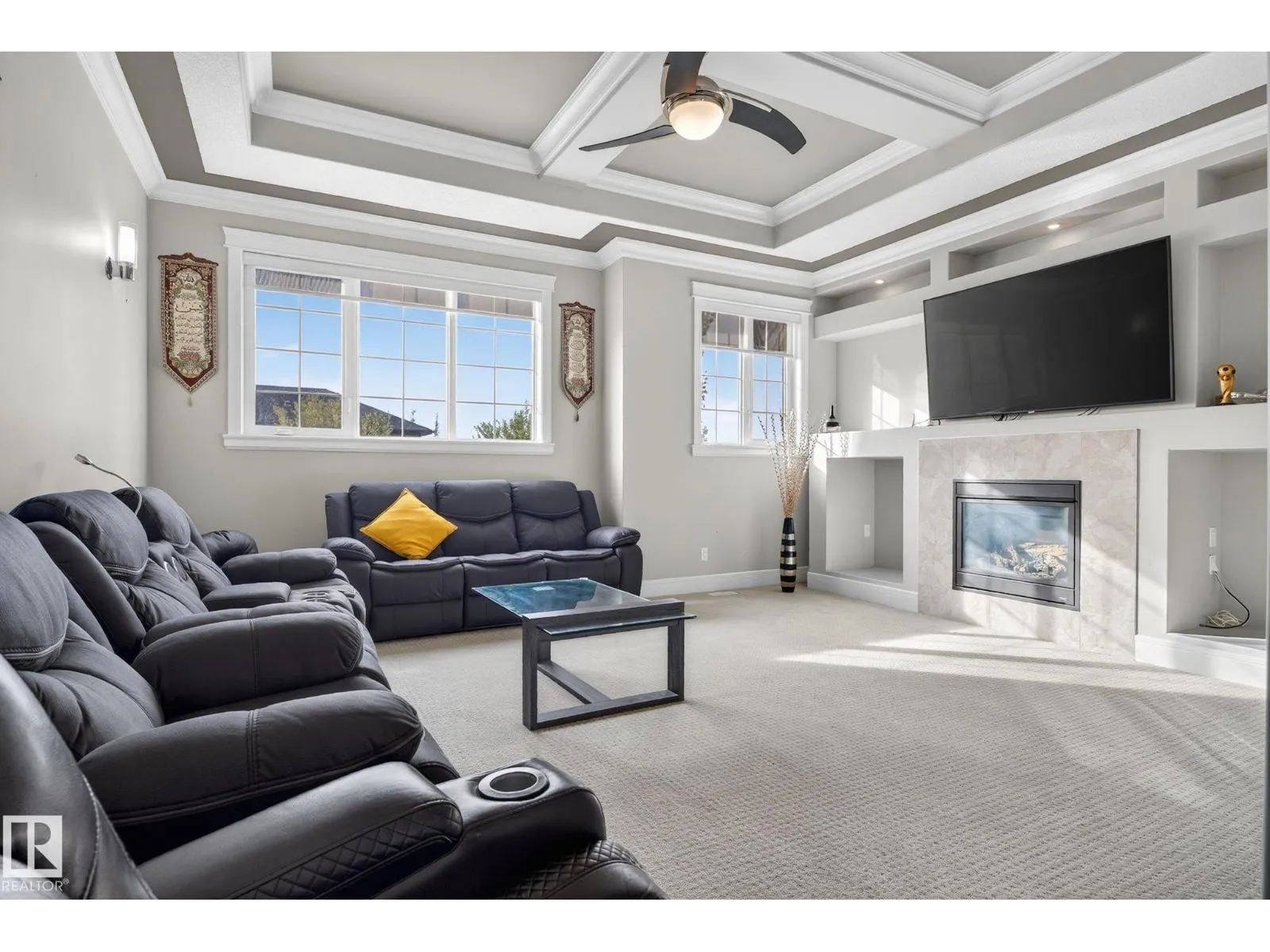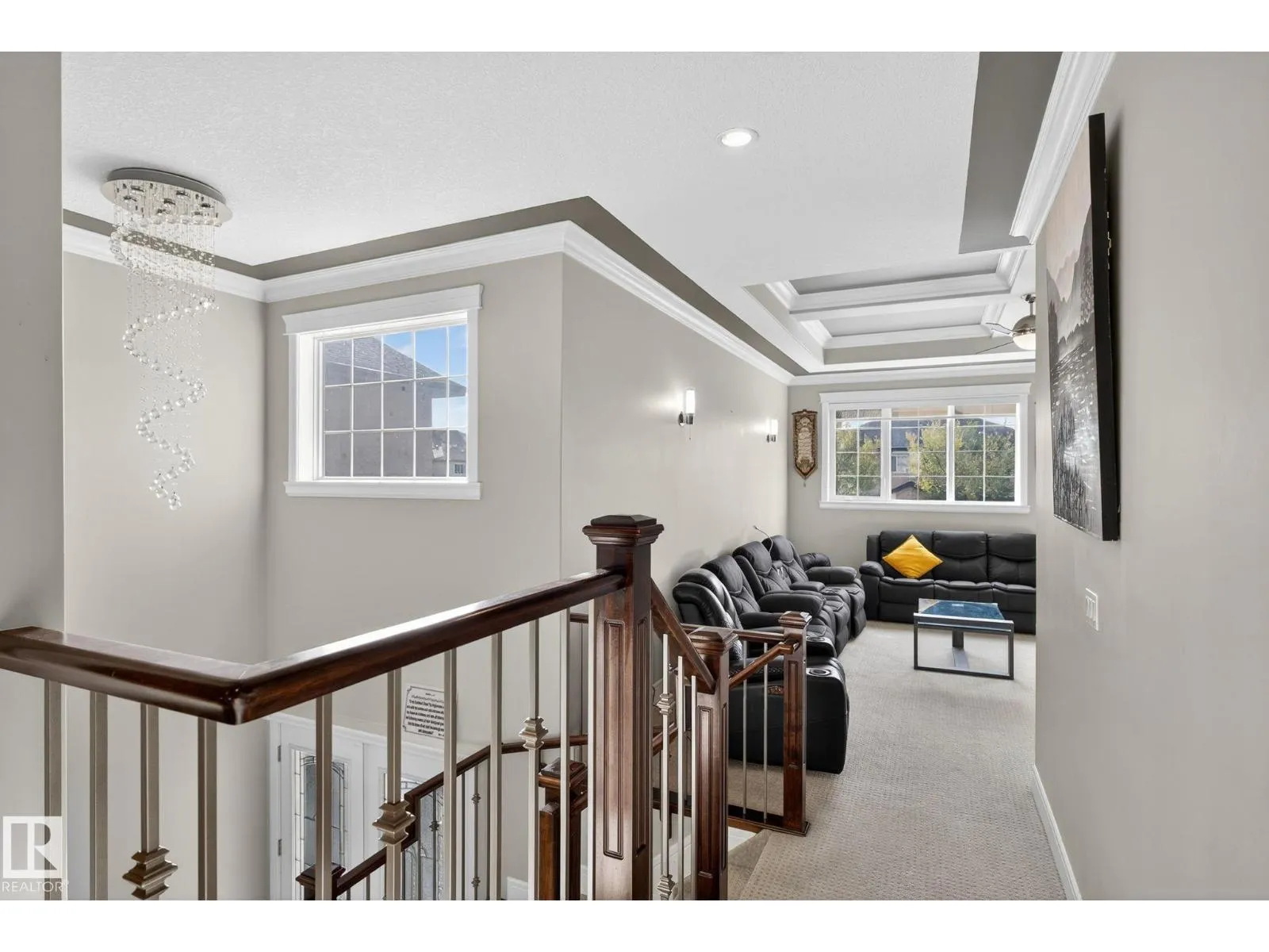 Step into luxury with this stunning, meticulously designed home that offers style, comfort, & functionality. Greeted by elegant double doors, youâll enter a bright, light-filled space. The main floor features a spacious, modern gourmet kitchen with granite countertops, SS appliances, under-cabinet lighting, & ample workspace. The open-concept living & dining areas are centered around a brick fireplace, while a dedicated home office provides the perfect work-from-home setup. Upstairs, the primary suite offers breathtaking views, a spa-inspired ensuite, and a generous walk-in closet. Two additional well-sized bedrooms, a family bathroom, & same-floor laundry complete the level. Find your fully finished basement complete with a bathroom and 2 bedrooms. Additional highlights include upgraded lighting, central A/C, premium finishes throughout, and a fully landscaped yardâall backing onto no rear neighbors for added privacy and tranquility. Only a 4-min drive to the Henday, Walmart, Sobeys, Starbucks, and more! (id:27476)