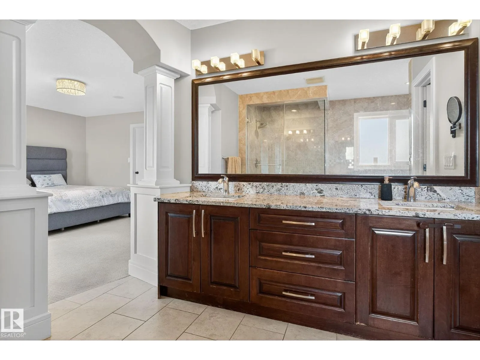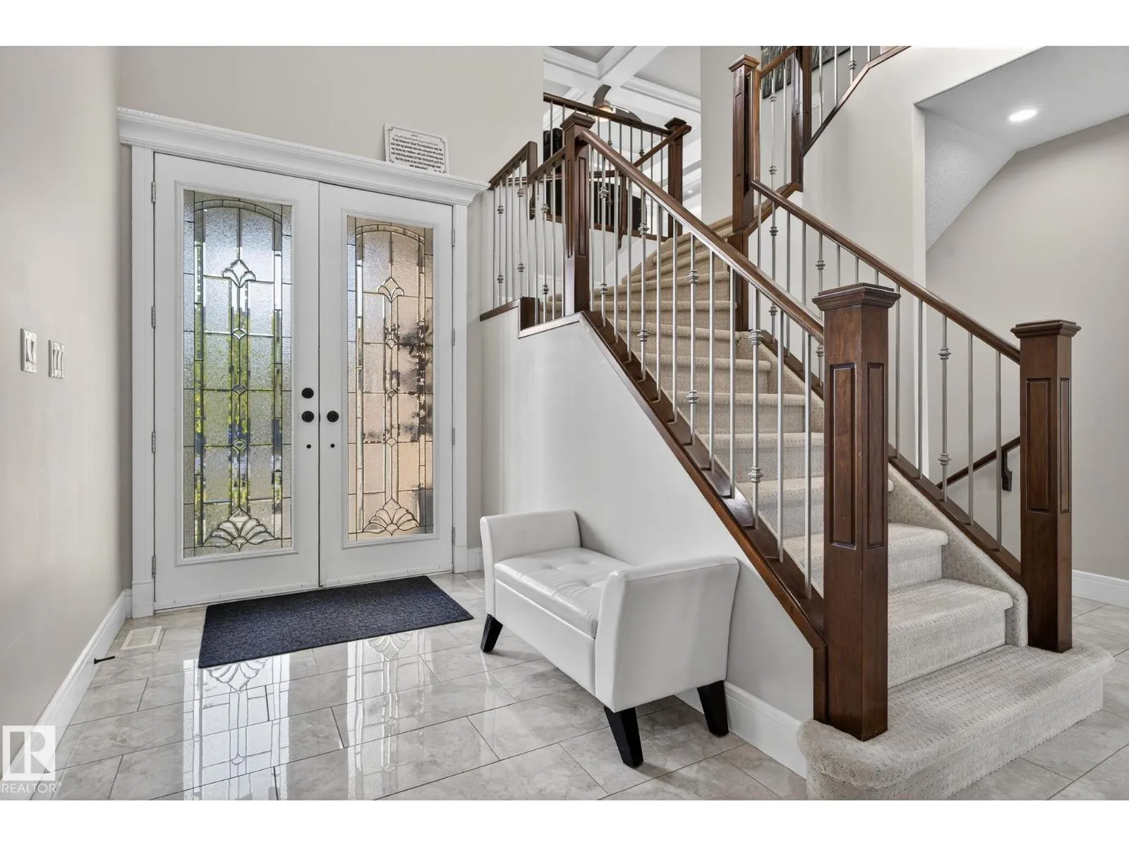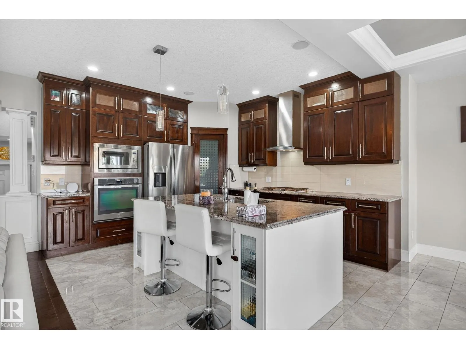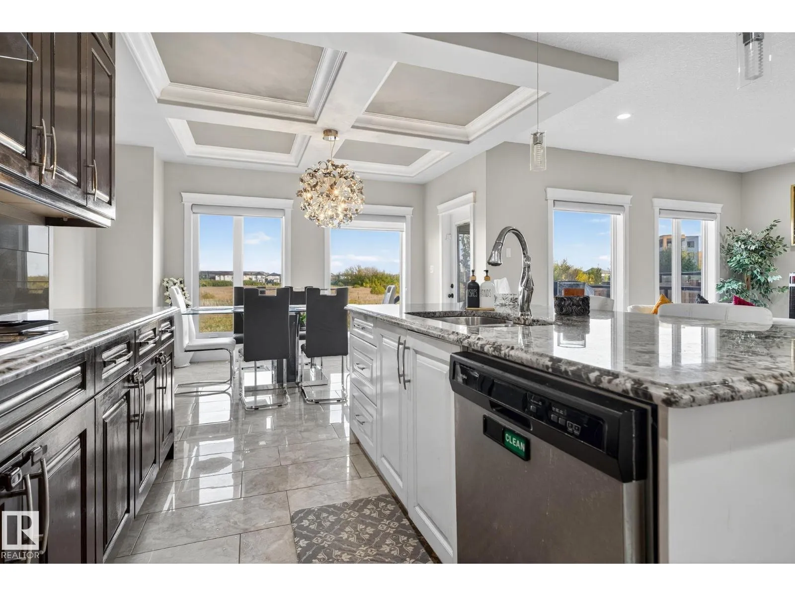 Step into luxury with this stunning, meticulously designed home that offers style, comfort, & functionality. Greeted by elegant double doors, youâll enter a bright, light-filled space. The main floor features a spacious, modern gourmet kitchen with granite countertops, SS appliances, under-cabinet lighting, & ample workspace. The open-concept living & dining areas are centered around a brick fireplace, while a dedicated home office provides the perfect work-from-home setup. Upstairs, the primary suite offers breathtaking views, a spa-inspired ensuite, and a generous walk-in closet. Two additional well-sized bedrooms, a family bathroom, & same-floor laundry complete the level. Find your fully finished basement complete with a bathroom and 2 bedrooms. Additional highlights include upgraded lighting, central A/C, premium finishes throughout, and a fully landscaped yardâall backing onto no rear neighbors for added privacy and tranquility. Only a 4-min drive to the Henday, Walmart, Sobeys, Starbucks, and more! (id:27476)
