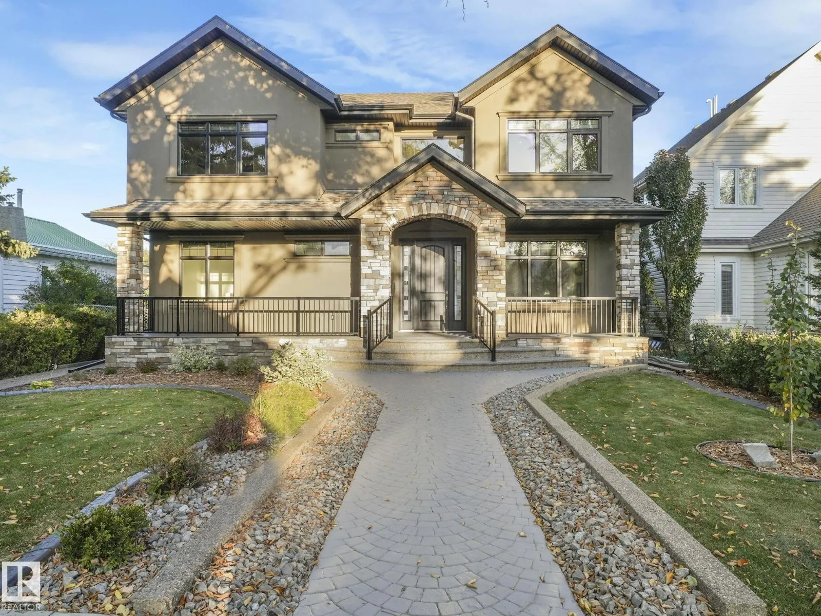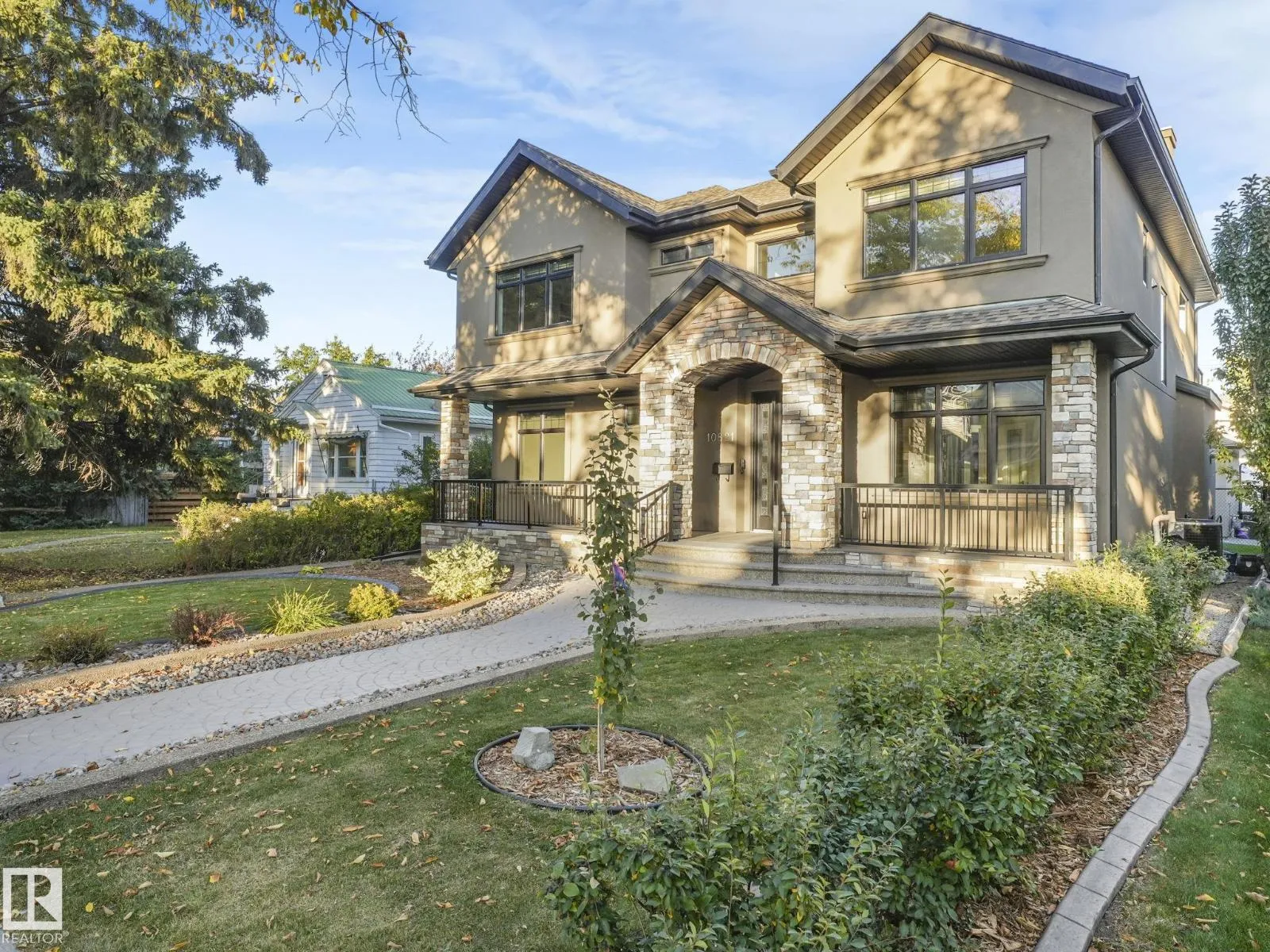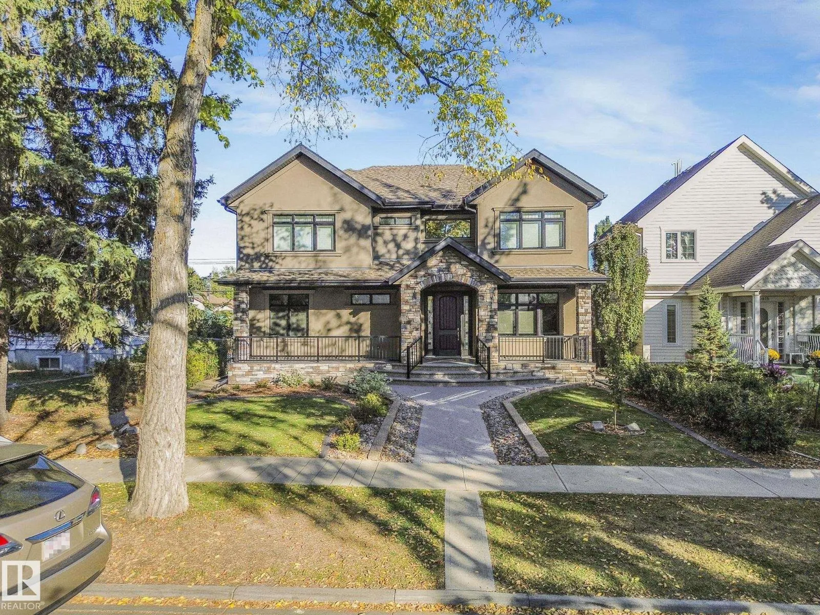 Rare opportunity in prime Westmount! Steps from 124 St, the river valley, U of A & downtown. Built with no compromises, this executive home features soaring 20â ceilings, massive windows & custom stone finishes. Designed for comfort with dual boiler systems & in-floor heating in both home & garage. The chefâs kitchen boasts premium S/S appliances, walk-in pantry w/prep sink & access to a deck with BBQ, hot tub & fire pit. Offering 5 bedrooms & 6 bathrooms, including one in the heated 3-car garage (could fit up to 5 cars with 2 lifts). The master retreat has a fireplace, spa ensuite with steam/massage shower, soaker tub, huge walk-in closet & private deck with southeast DT views. All rooms enjoy separate surround system. The basement includes a private suite with separate entrance, theatre, bar & pool table. Outdoors is fully landscaped with RV parking. A one-of-a-kind luxury residence blending style, space & function in one of Edmontonâs most sought-after neighborhoods. (id:27476)