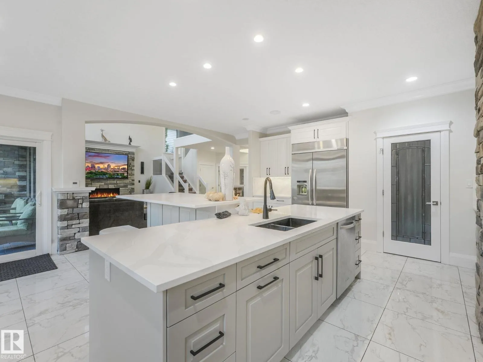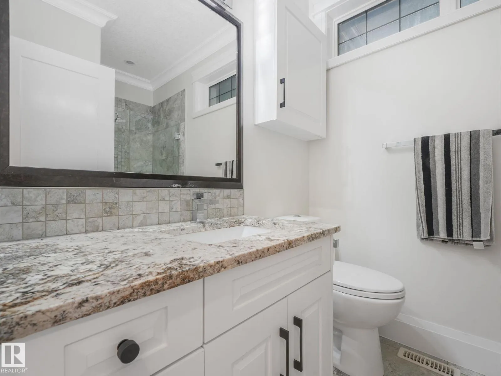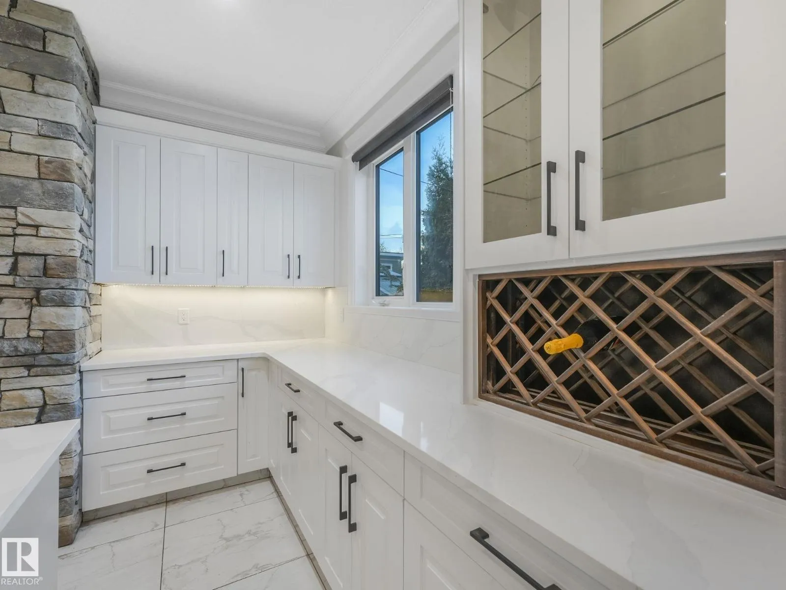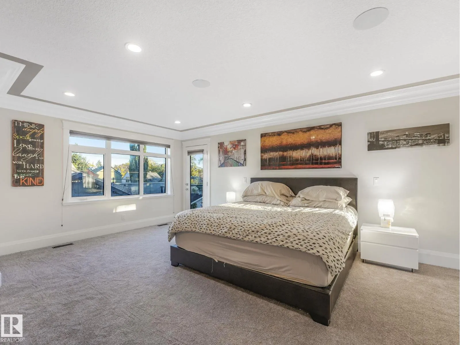 Rare opportunity in prime Westmount! Steps from 124 St, the river valley, U of A & downtown. Built with no compromises, this executive home features soaring 20â ceilings, massive windows & custom stone finishes. Designed for comfort with dual boiler systems & in-floor heating in both home & garage. The chefâs kitchen boasts premium S/S appliances, walk-in pantry w/prep sink & access to a deck with BBQ, hot tub & fire pit. Offering 5 bedrooms & 6 bathrooms, including one in the heated 3-car garage (could fit up to 5 cars with 2 lifts). The master retreat has a fireplace, spa ensuite with steam/massage shower, soaker tub, huge walk-in closet & private deck with southeast DT views. All rooms enjoy separate surround system. The basement includes a private suite with separate entrance, theatre, bar & pool table. Outdoors is fully landscaped with RV parking. A one-of-a-kind luxury residence blending style, space & function in one of Edmontonâs most sought-after neighborhoods. (id:27476)