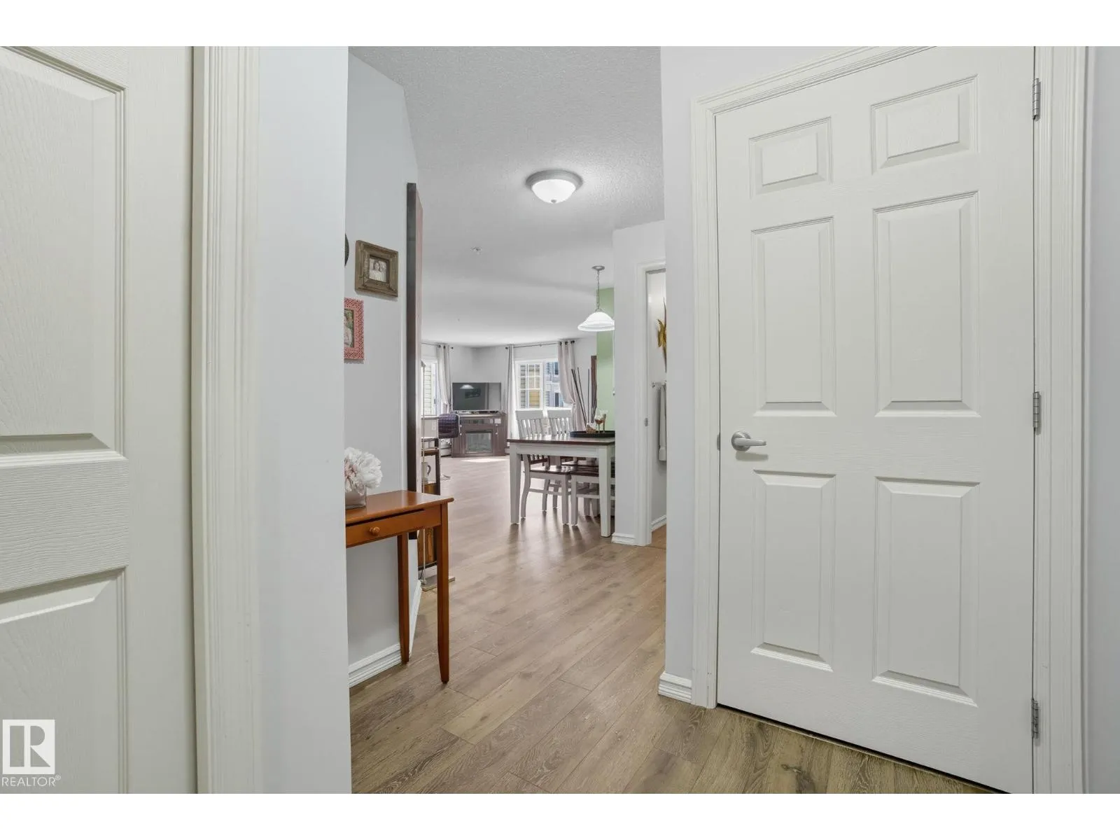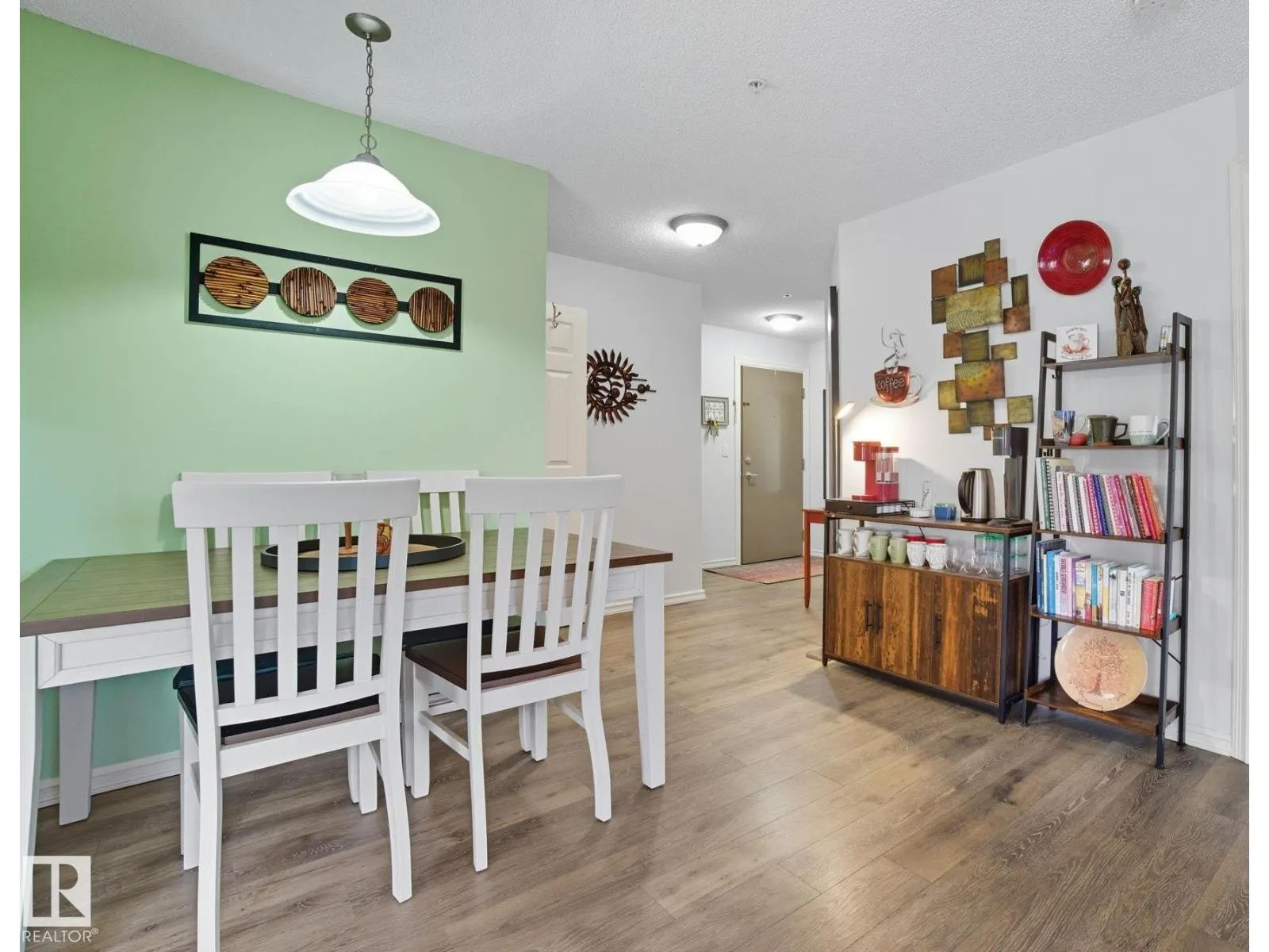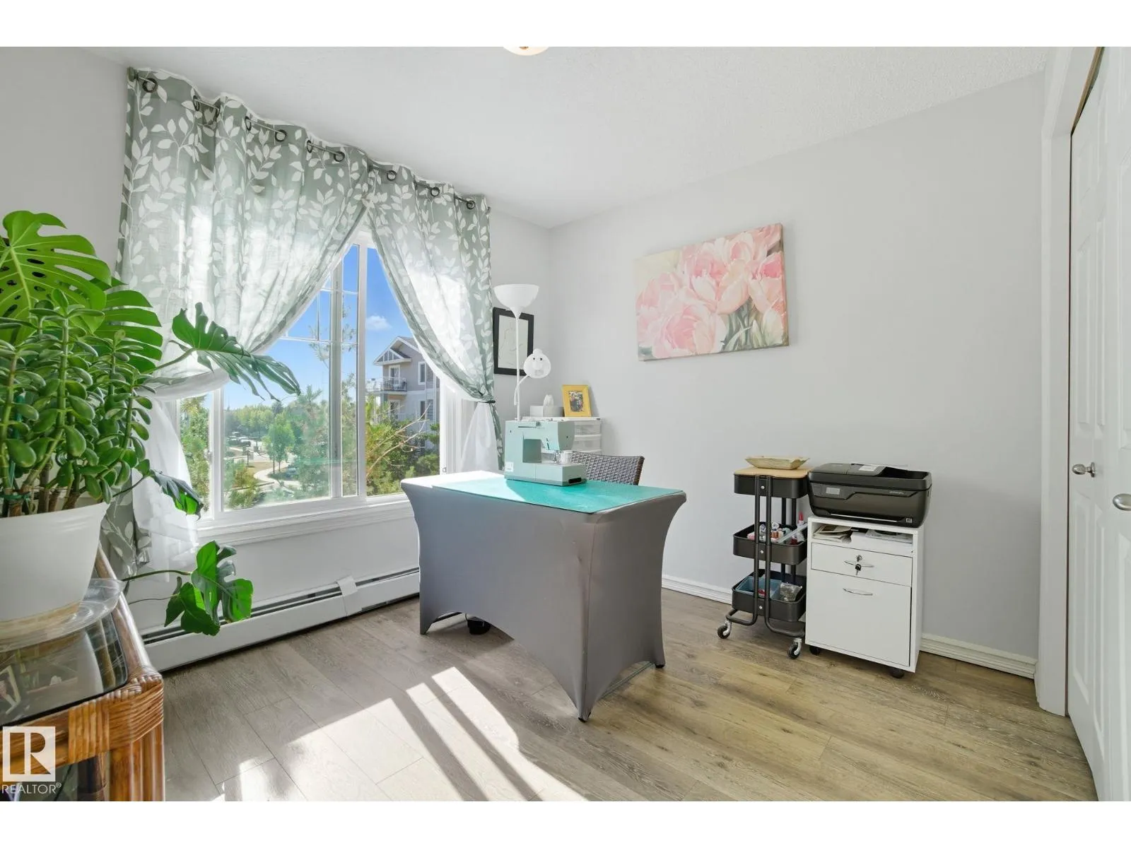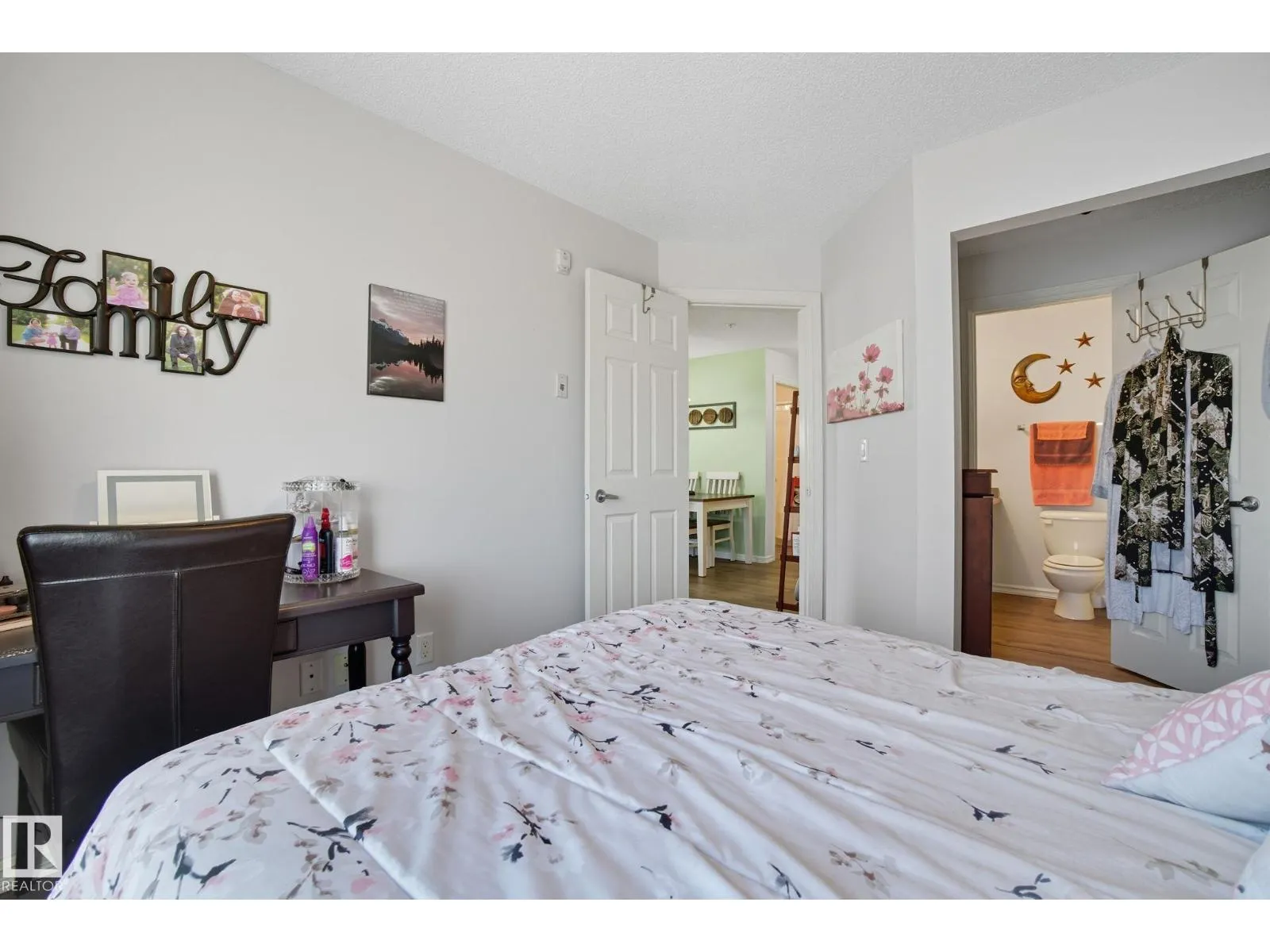LOCATION! Bright CORNER executive condo with large wraparound balcony! All the conveniences just steps from shopping, parks, transportation, Whitemud & Henday. Fabulous open floorplan with surrounding bright South and East windows and sunny views in each room.Renovated with designer colors and gorgeous vinyl plank flooring throughout. Beautiful maple kitchen w/ plenty of cabinets and counters enjoying East morning views out window over sink. Dining area is off kitchen and good sized relaxing living room that walks onto amazing covered corner balcony with gas BBQ hookups to relax the summer and fall away. Kingsized master bedroom has him/her walk through closets and full ensuite. Good sized 2nd bedroom enjoys sunny south views, 4pc bath and insuite laundry complete the main floor. Assigned same floor extra storage area also included for extra room. ALSO, 2 TITLED parking stalls: 1 underground and 1 surface stall. Complex includes fitness centre. This RARE CORNER condo is bright an has is ALL! (id:27476)