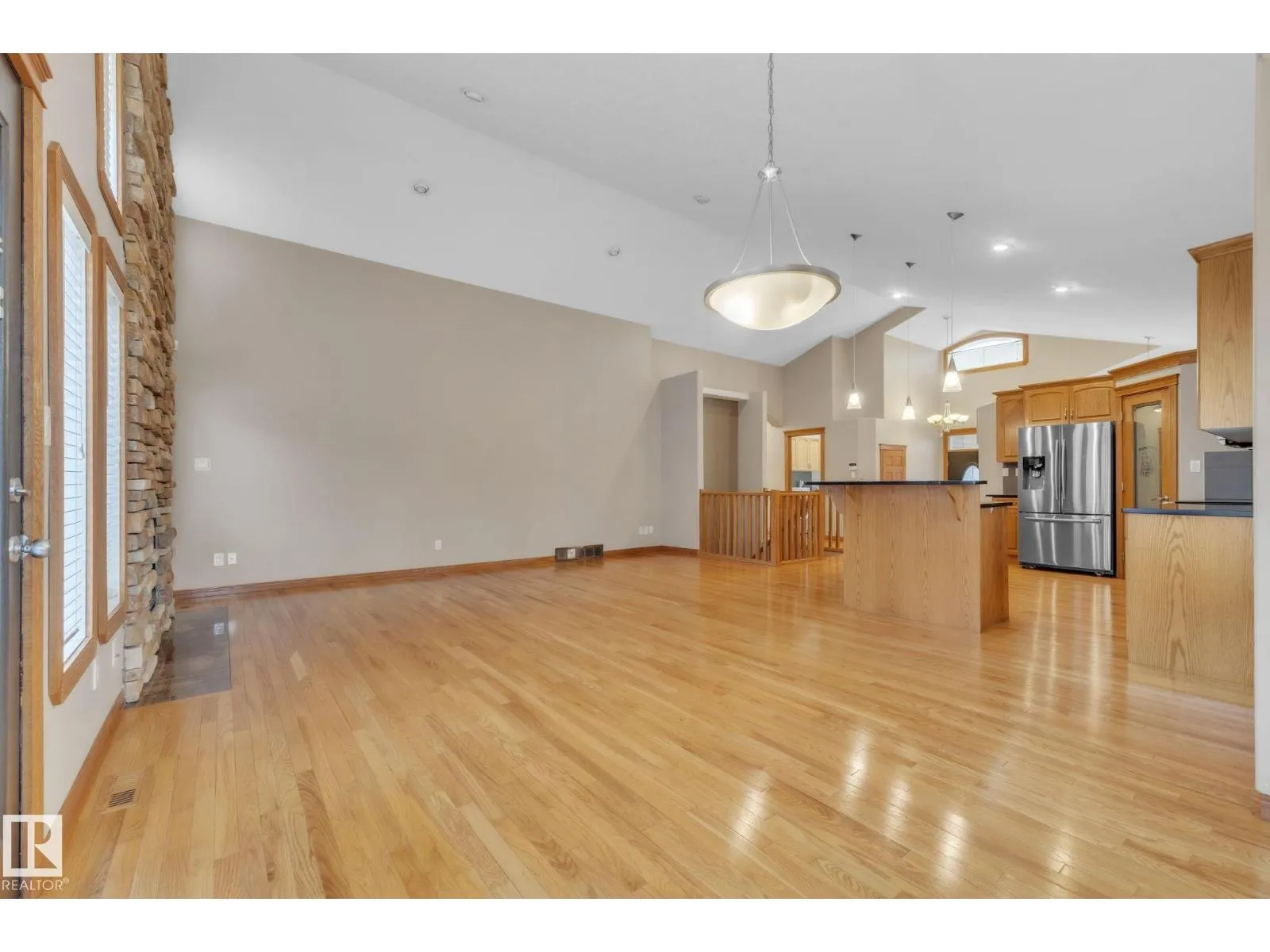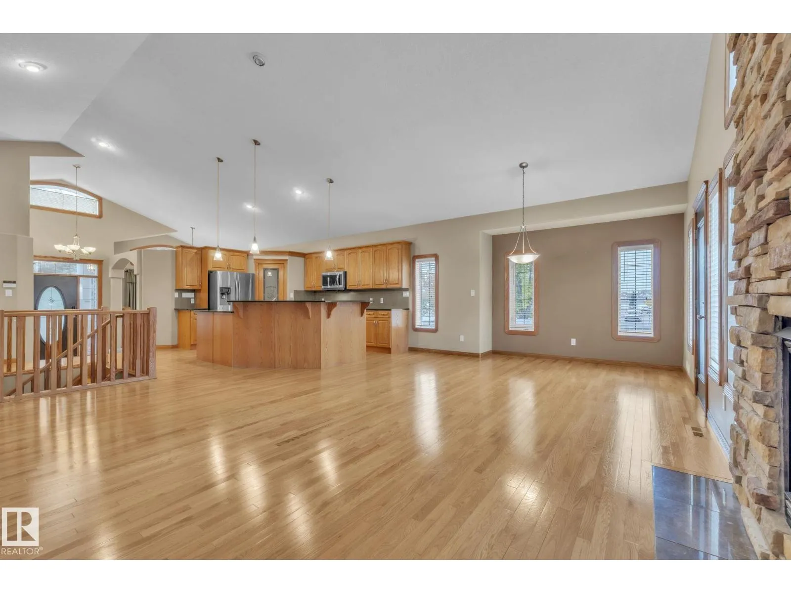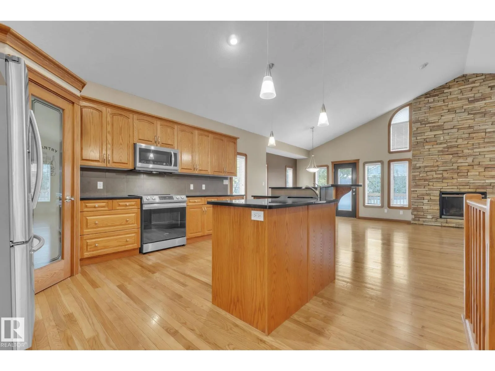 Your next ADDRESS awaits in SUMMERSIDE with quick possession! Located steps from the lake in a quiet cul-de-sac, this beautiful bungalow offers style, space, and an unbeatable location.The main floor features a bright open concept layout with vaulted ceilings, a versatile formal dining room/den/home office, and a spacious kitchen complete with SS appliances, corner pantry, and central island. The eating nook opens to a deck, concrete pad and fenced yard, perfect for relaxing or entertaining.Living room filled with natural light and centered around a gas fireplace with surrounding windows. Enjoy the convenience of main floor laundry, a primary suite with 4-piece ensuite, 2nd bedroom and full bathroom. The fully finished basement is built for entertaining with in-floor heating, a second fireplace, massive rec room, wet bar, and pool table (included!).2 additional bedrooms, bathroom, and plenty of storage complete this level.Hardwood floors on the main and a heated garage! Corner lot for added privacy! (id:27476)