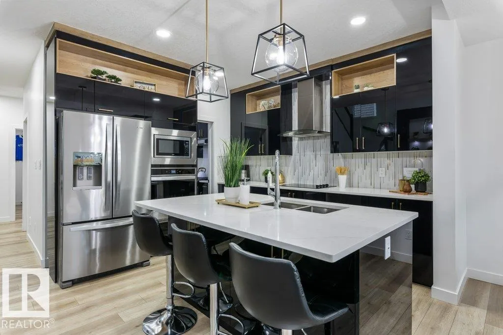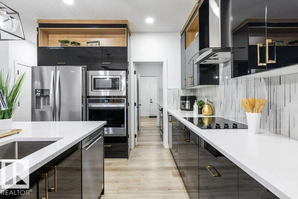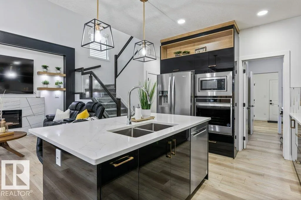 Discover this contemporary 2-storey, 6 BEDRM home in prestigious Keswick, w/ 2 BDRM LEGAL BASEMENT SUITE & 3000+sqft total living space! Step into the spacious foyer, where luxury vinyl plank leads to the MAIN FLR BEDRM & FULL bath. The custom kitchen showcases QUARTZ countertops, built-in SS appliances, large island, modern cabinetry & SPICE kitchen w/ GAS range! Gather in the dining nook or OPEN TO ABOVE living rm, flooded w/ NATURAL light from HUGE windows & enjoy the stunning FEATURE FIREPLACE wall. Upstairs, youâll LOVE the tranquil primary suite w/ luxurious 5pc ensuite, incl jetted tub & WALK-IN closet, plus 2 generous bedrms, 4pc bath, laundry & cozy bonus room. LEGAL BASEMENT SUITE offers 2 bedrms, kitchen, full bath, living rm & laundry. A DBL ATTACHED garage completes this GORGEOUS home. WALKING DISTANCE to Joey Moss & Joan Carr K-9 SCHOOLS, playgrounds & parks! Located near all major amenities, Currents of Windermere shopping, Movati fitness, river valley trails & quick access to Henday. 10/10 (id:27476)