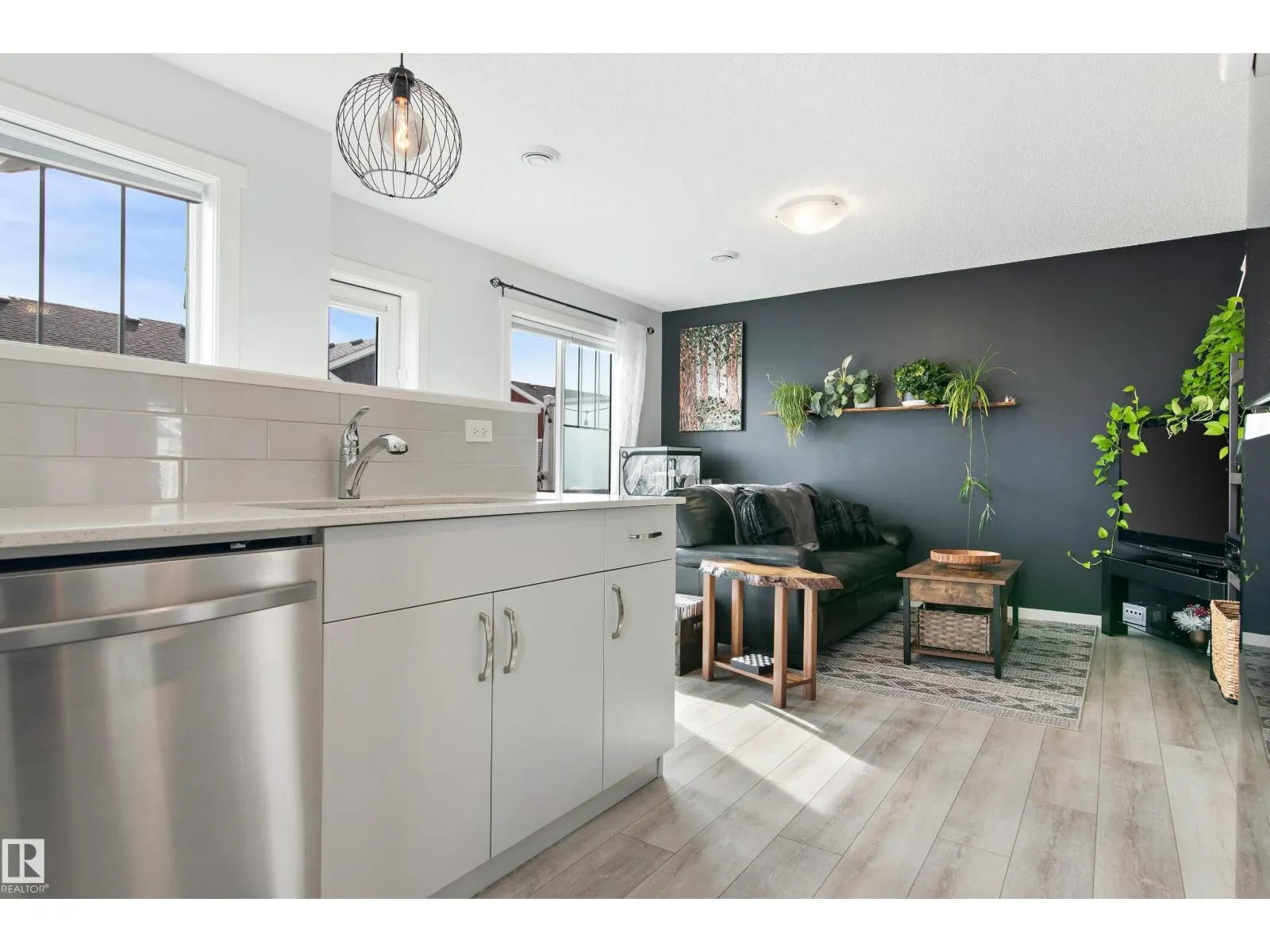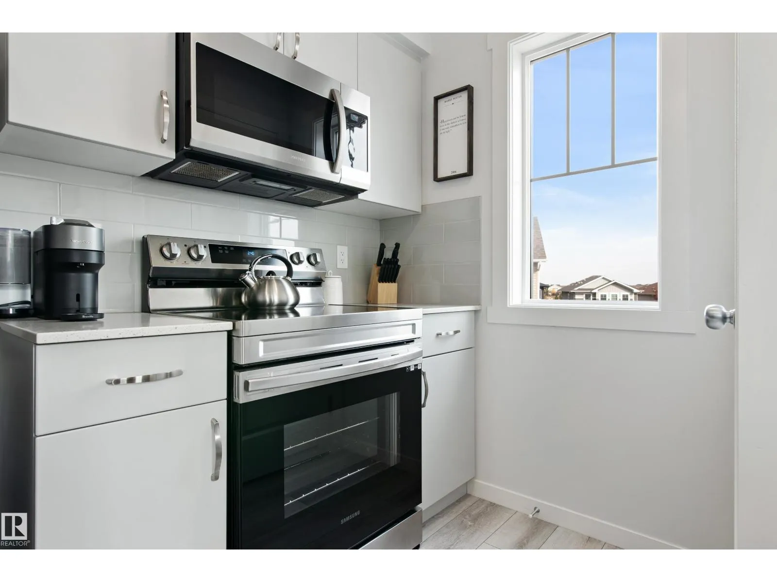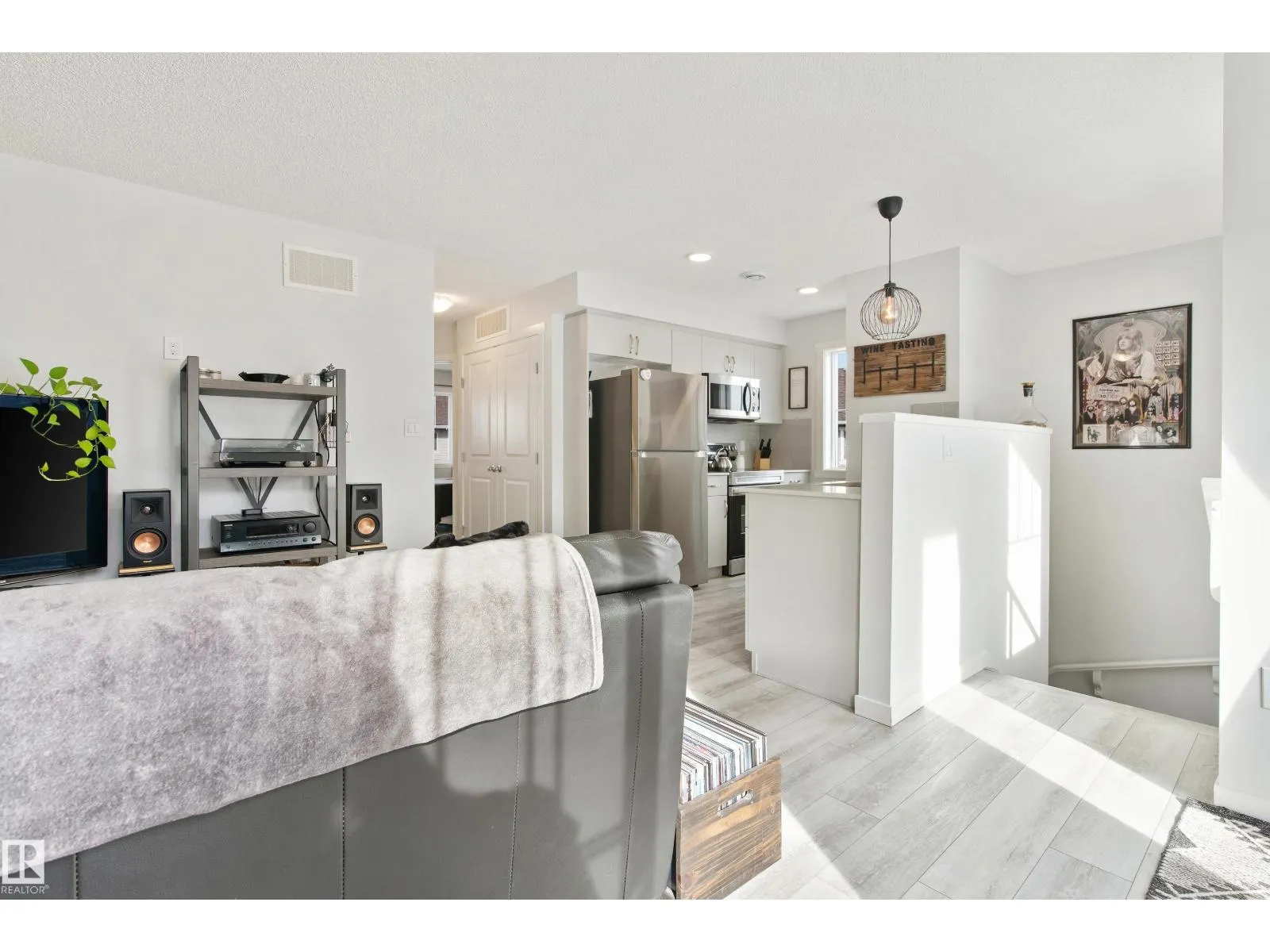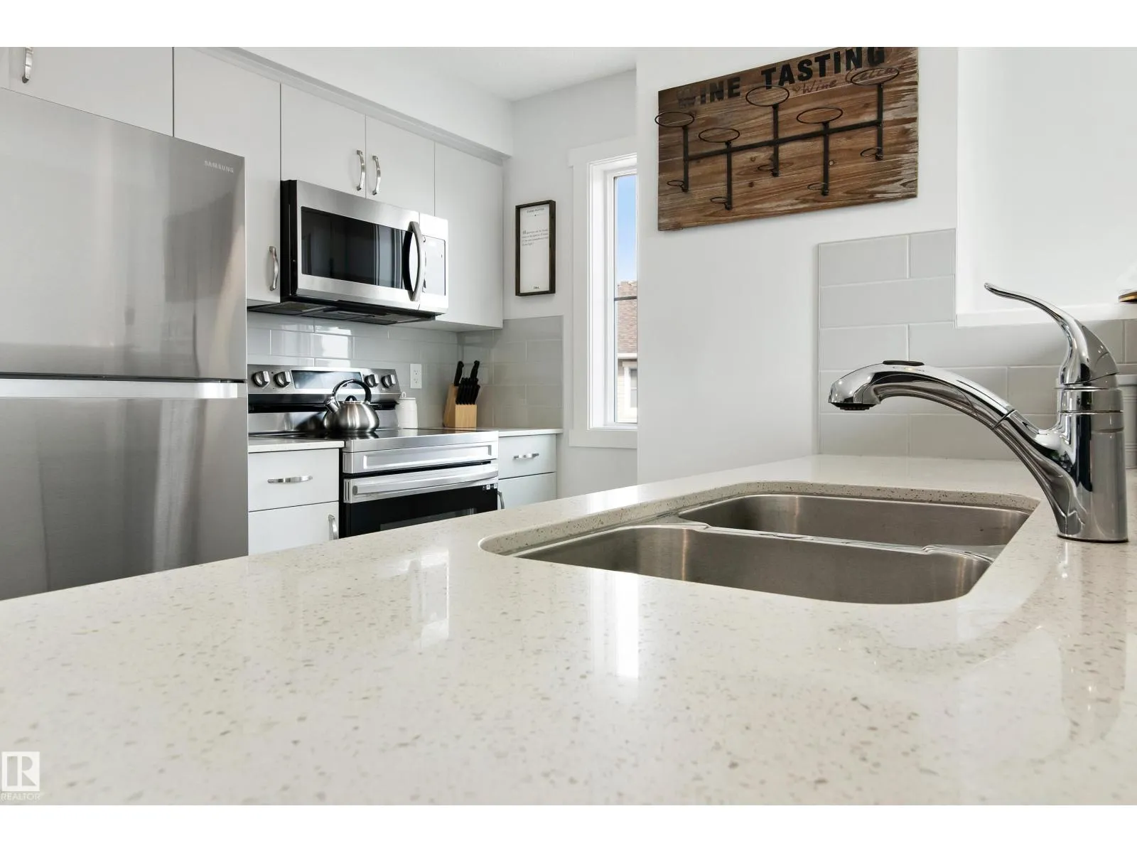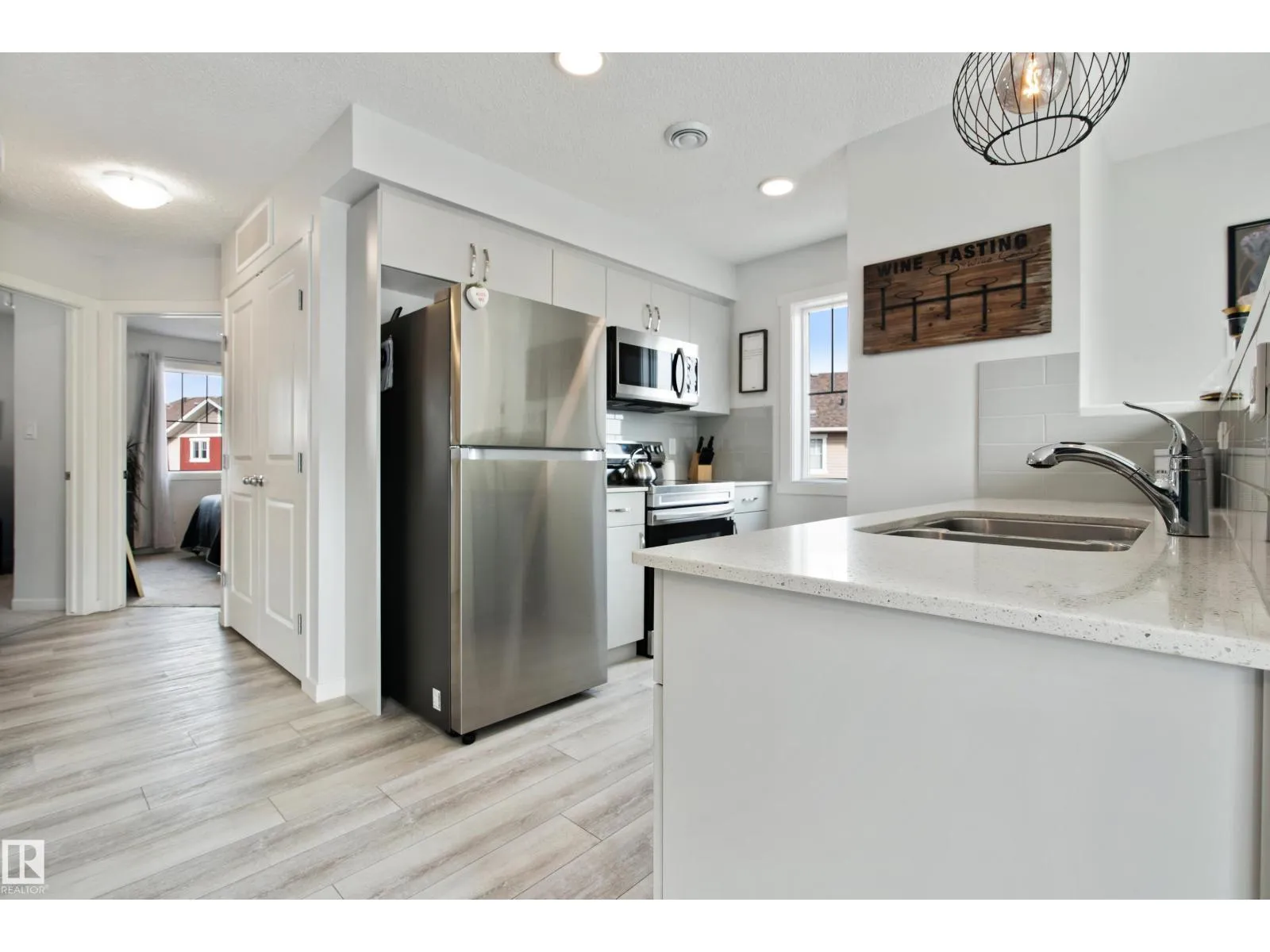 Extremely well maintained, 2 bedroom and 1 bathroom top floor end unit townhouse in the community of Crystallin Nera. Featuring an open concept layout, the kitchen which has quartz countertops, stainless steel appliances and a pantry for extra storage looks onto the good sized living area which has direct access to the balcony with a slight view of the lake. The 4 piece main bathroom has quartz countertops as well and down the hall, is the primary bedroom which has a walk in closet and across from it is the second bedroom which can also be used as an office space. Don't worry about brushing snow off your vehicle this winter as there is a single attached garage and on the lower level there is a good sized storage room too. Another bonus is the visitor parking just outside your door. Close to shopping, transit, CFB Edmonton as well as Henday access, this home is in a fantastic location! (id:27476)