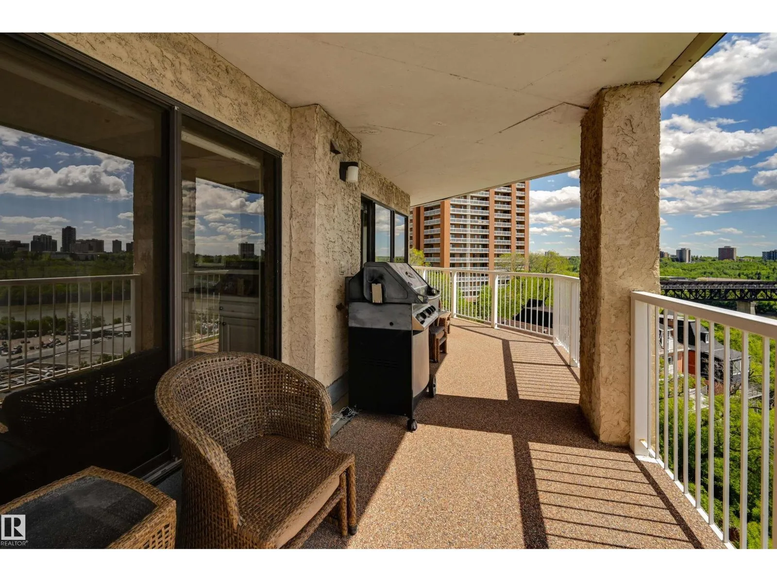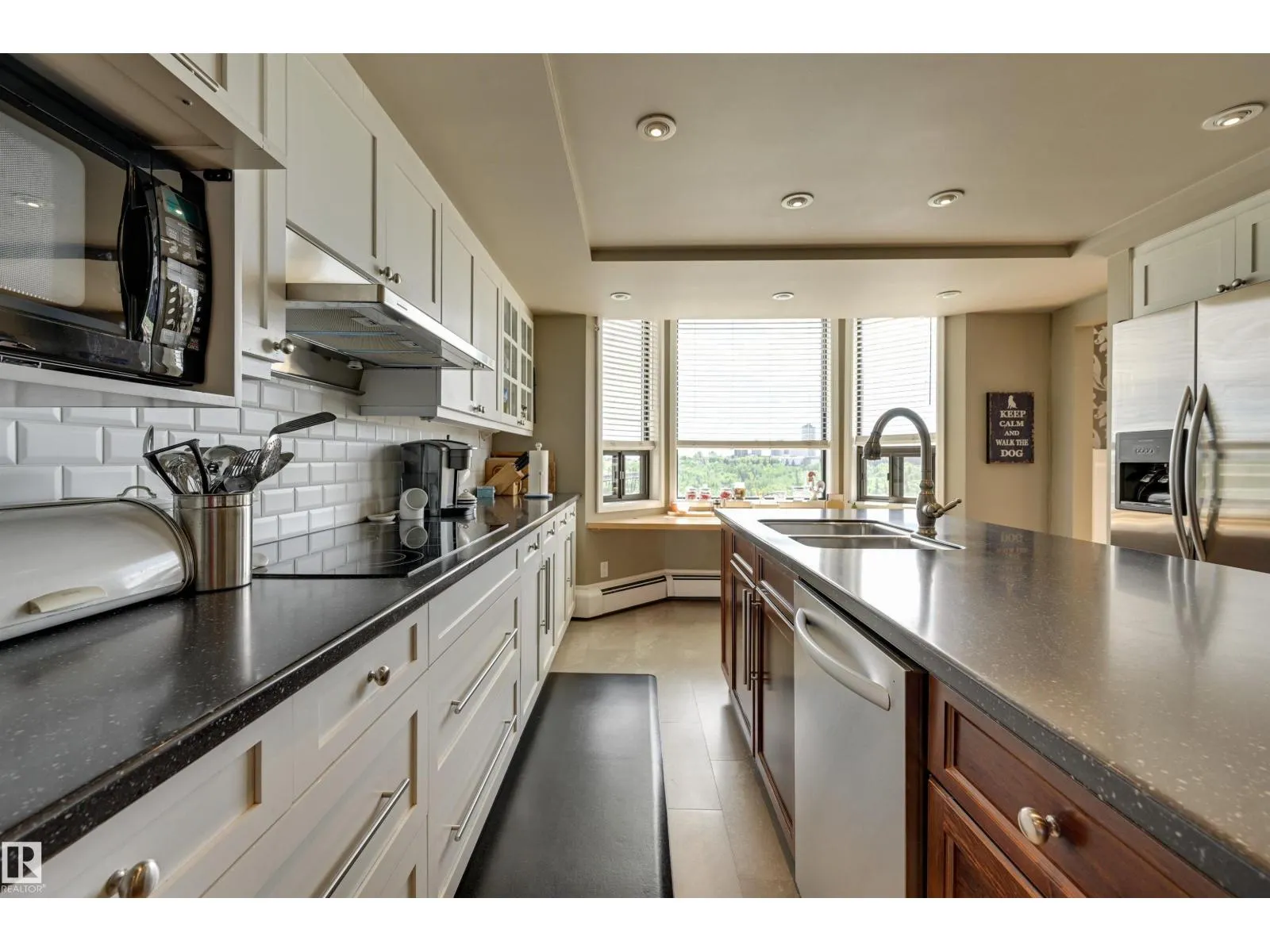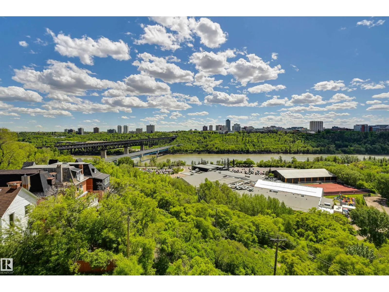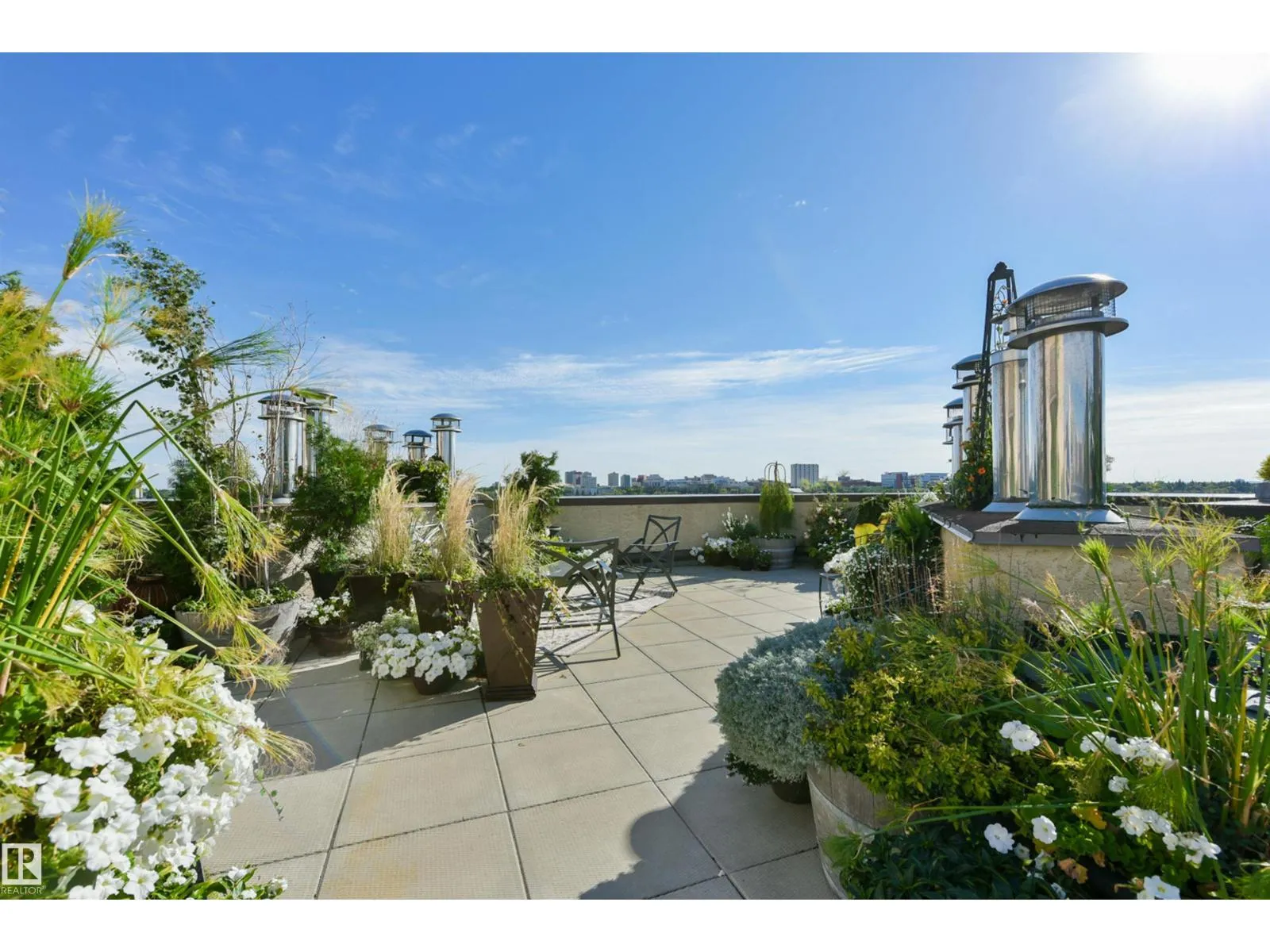 RIVER VALLEY VIEWS from this ENTIRE FLOOR PENTHOUSE condo on the 6th floor in this unique 10 unit CONCRETE building. Conveniently located steps from the river valley trails, the LRT & quick access to Downtown, Ice District, Brewery District & the U of A. Spectacular views with 360 degree exposures. This RENOVATED 3 bedroom 2.5 bath 2,391 sq.ft. unit has loads of space for entertaining & lots of natural light. Enjoy the gourmet kitchen with ample counter space, an 11' island , 2 pullout pantries, stainless steel appliances. The spacious living room with a wood burning fireplace & the family room with a gas fireplace have access to the wrap around southwest facing deck. Primary bedroom has a 3 piece ensuite w a walk-in shower & office area. 2nd bedroom has been turned into a dressing room with built-in closets. The 3rd bedroom has a Murphy bed & built-in desk. 3 piece bathroom with a walk-in shower. The building has a GORGEOUS ROOFTOP DECK. TWO UNDERGROUND PARKING 14, 15. Impeccably kept, a beautiful home! (id:27476)