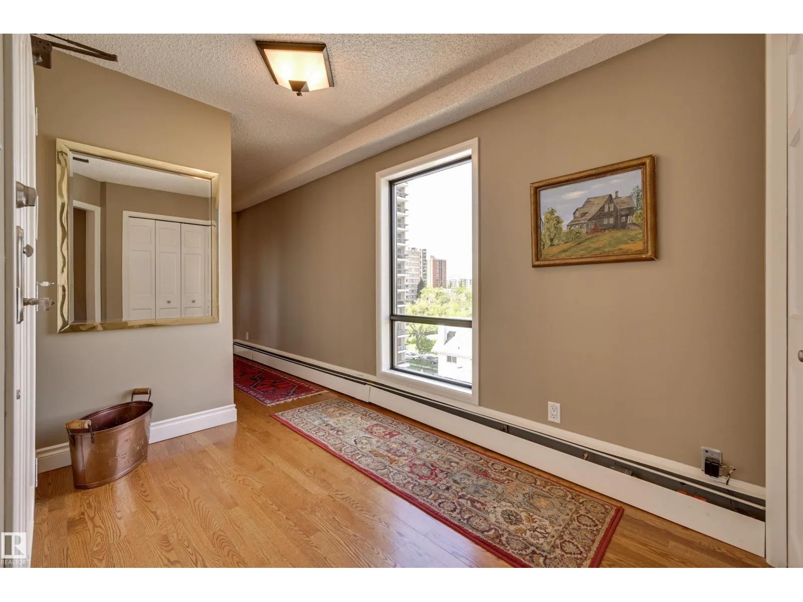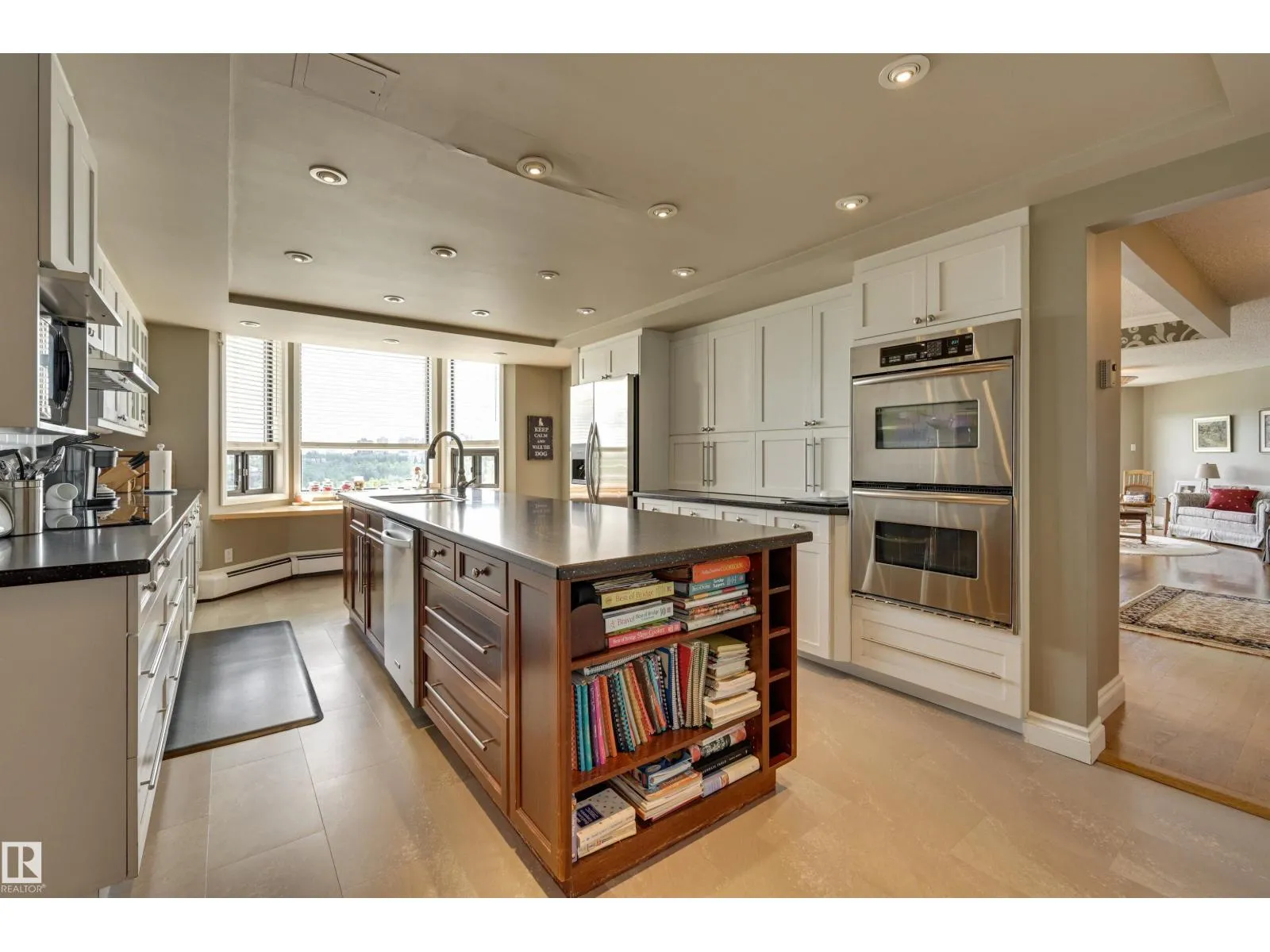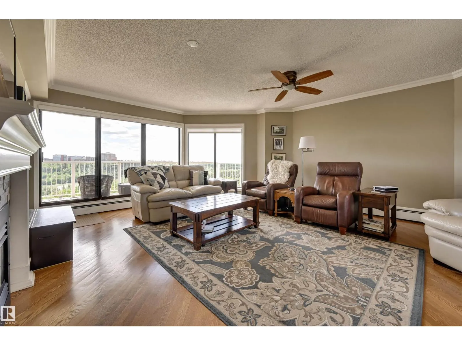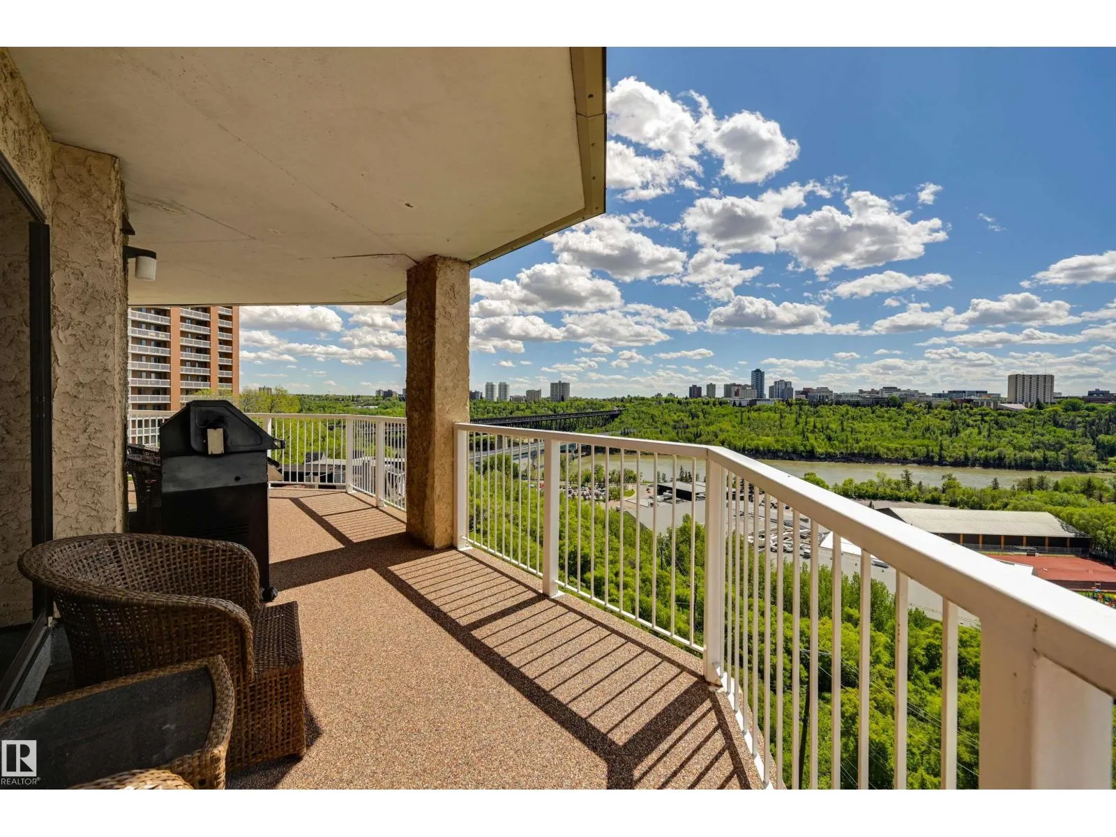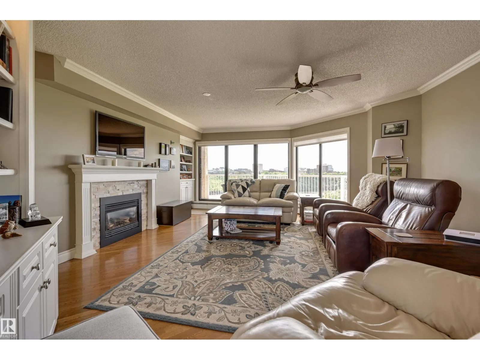 RIVER VALLEY VIEWS from this ENTIRE FLOOR PENTHOUSE condo on the 6th floor in this unique 10 unit CONCRETE building. Conveniently located steps from the river valley trails, the LRT & quick access to Downtown, Ice District, Brewery District & the U of A. Spectacular views with 360 degree exposures. This RENOVATED 3 bedroom 2.5 bath 2,391 sq.ft. unit has loads of space for entertaining & lots of natural light. Enjoy the gourmet kitchen with ample counter space, an 11' island , 2 pullout pantries, stainless steel appliances. The spacious living room with a wood burning fireplace & the family room with a gas fireplace have access to the wrap around southwest facing deck. Primary bedroom has a 3 piece ensuite w a walk-in shower & office area. 2nd bedroom has been turned into a dressing room with built-in closets. The 3rd bedroom has a Murphy bed & built-in desk. 3 piece bathroom with a walk-in shower. The building has a GORGEOUS ROOFTOP DECK. TWO UNDERGROUND PARKING 14, 15. Impeccably kept, a beautiful home! (id:27476)