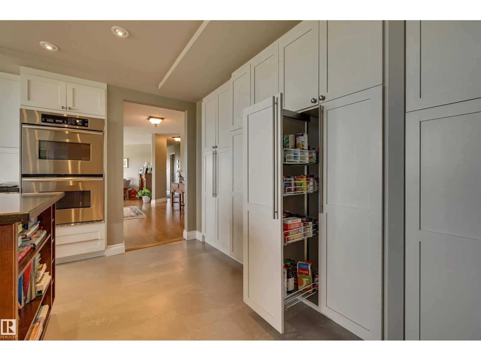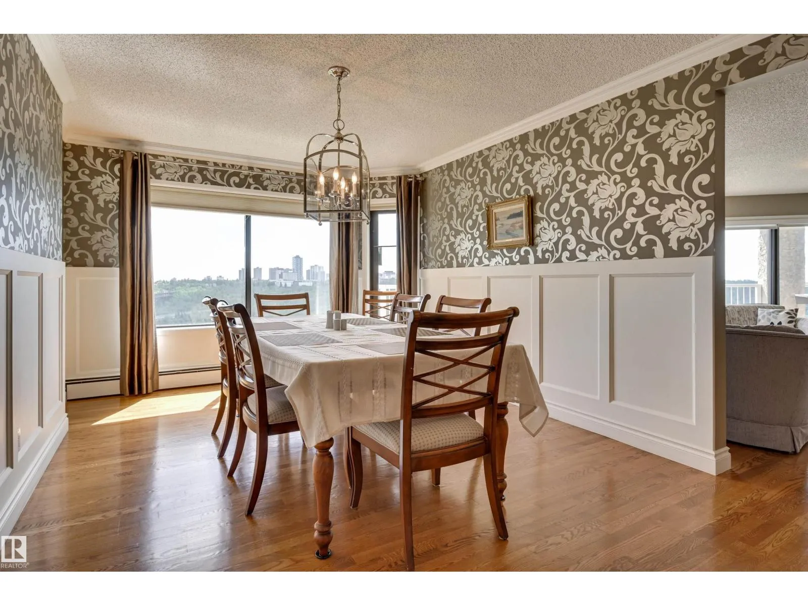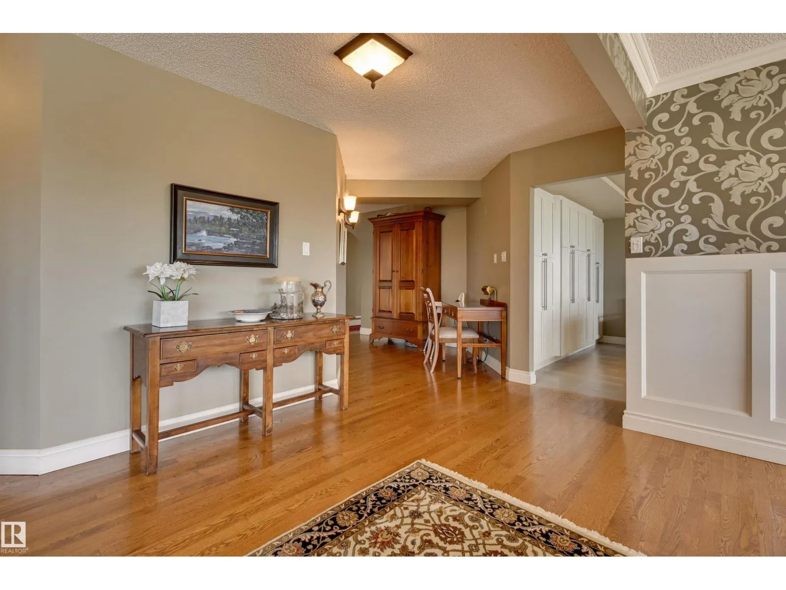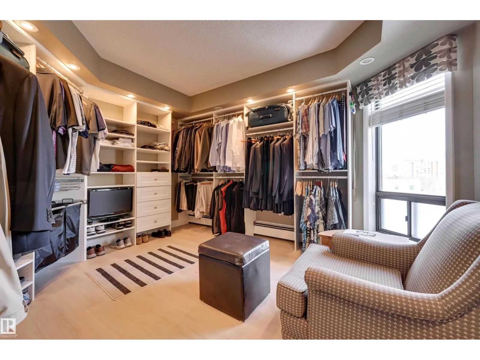RIVER VALLEY VIEWS from this ENTIRE FLOOR PENTHOUSE condo on the 6th floor in this unique 10 unit CONCRETE building. Conveniently located steps from the river valley trails, the LRT & quick access to Downtown, Ice District, Brewery District & the U of A. Spectacular views with 360 degree exposures. This RENOVATED 3 bedroom 2.5 bath 2,391 sq.ft. unit has loads of space for entertaining & lots of natural light. Enjoy the gourmet kitchen with ample counter space, an 11' island , 2 pullout pantries, stainless steel appliances. The spacious living room with a wood burning fireplace & the family room with a gas fireplace have access to the wrap around southwest facing deck. Primary bedroom has a 3 piece ensuite w a walk-in shower & office area. 2nd bedroom has been turned into a dressing room with built-in closets. The 3rd bedroom has a Murphy bed & built-in desk. 3 piece bathroom with a walk-in shower. The building has a GORGEOUS ROOFTOP DECK. TWO UNDERGROUND PARKING 14, 15. Impeccably kept, a beautiful home! (id:27476)