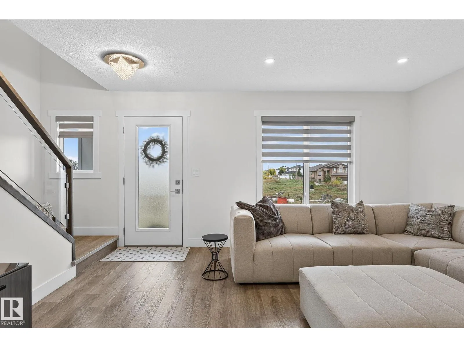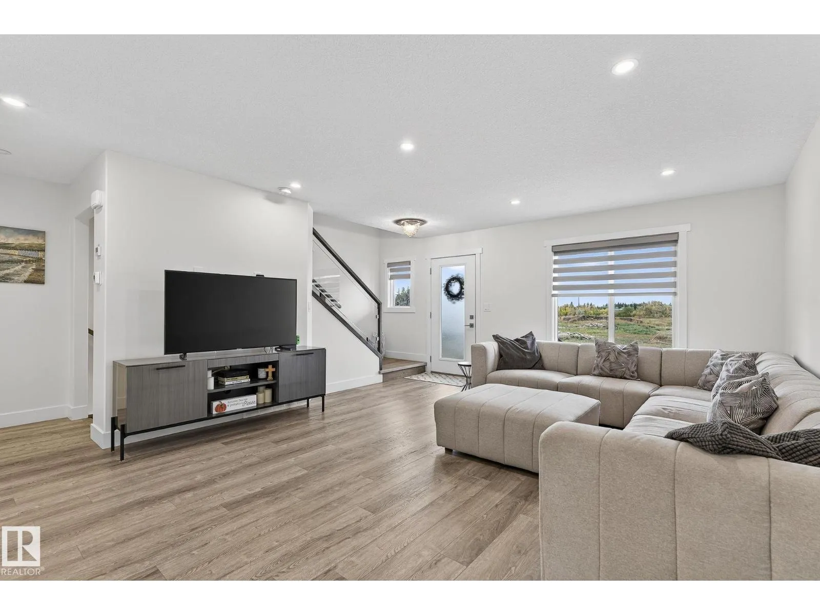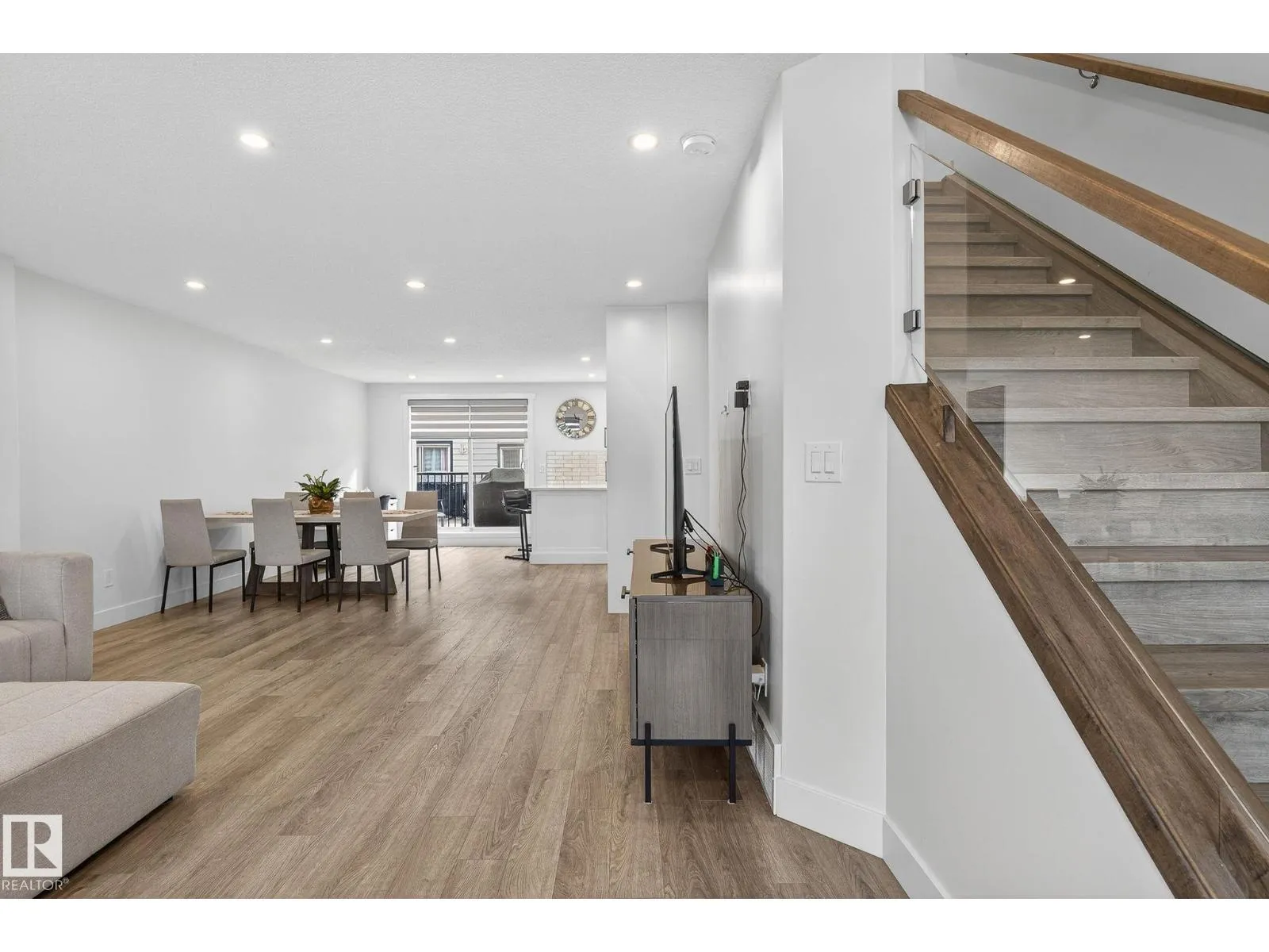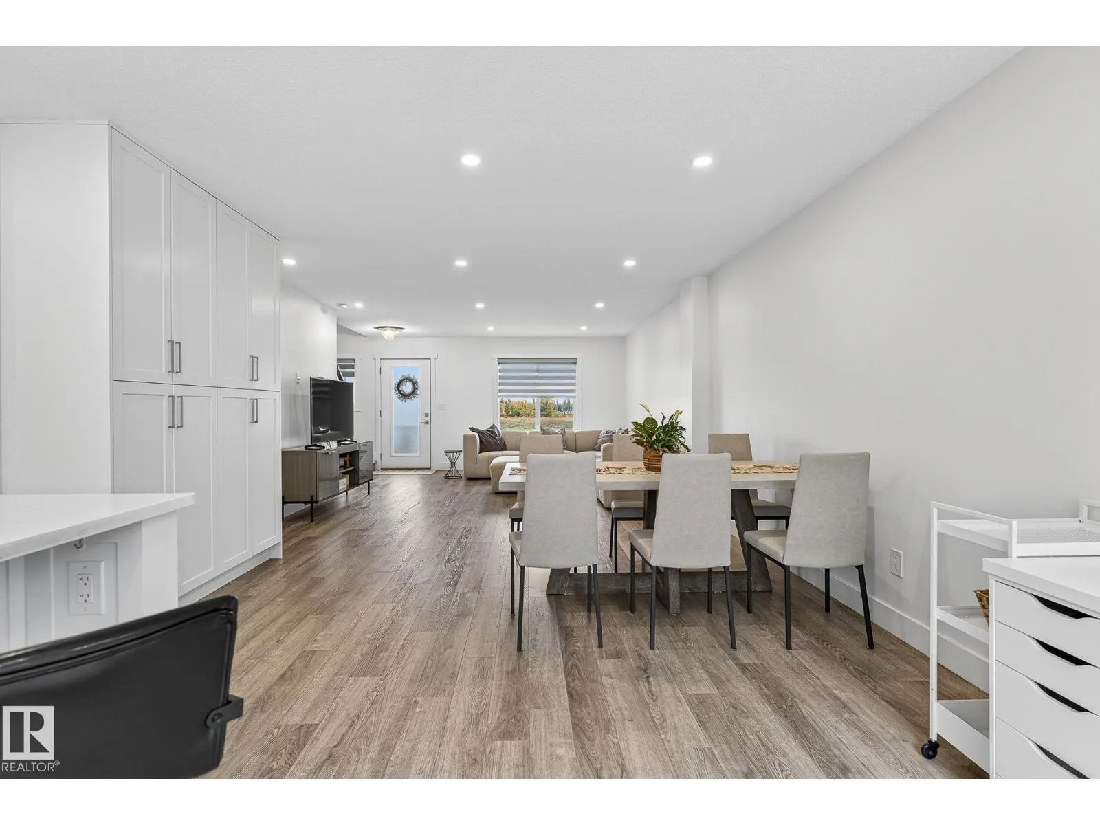 Welcome to this beautifully designed modern end unit townhome, offering just under 1,800 sq ft of total living space in the heart of Eaux Claires. Completed in May 2023, this home features premium finishes, a thoughtful layout, and exceptional conveniences. The upper level includes a spacious primary bedroom with a 4-piece ensuite, two additional bedrooms, another full 4-piece bathroom, upper-floor laundry, and ample closet space. The main floor offers a bright and open living & dining area, and a kitchen with floor-to-ceiling cabinetry for added storage and modern appeal. On the lower level, enjoy a bonus/flex room, a 2-piece bathroom, utility/furnace room, and access to the double attached garage. This townhome comes with central air conditioning for added comfort. Located minutes from shopping, grocery stores, cafes, schools, and the Eaux Claires Transit Centre, this home is perfect for families, professionals, or investors looking for a move-in-ready property in a well-connected neighbourhood. (id:27476)