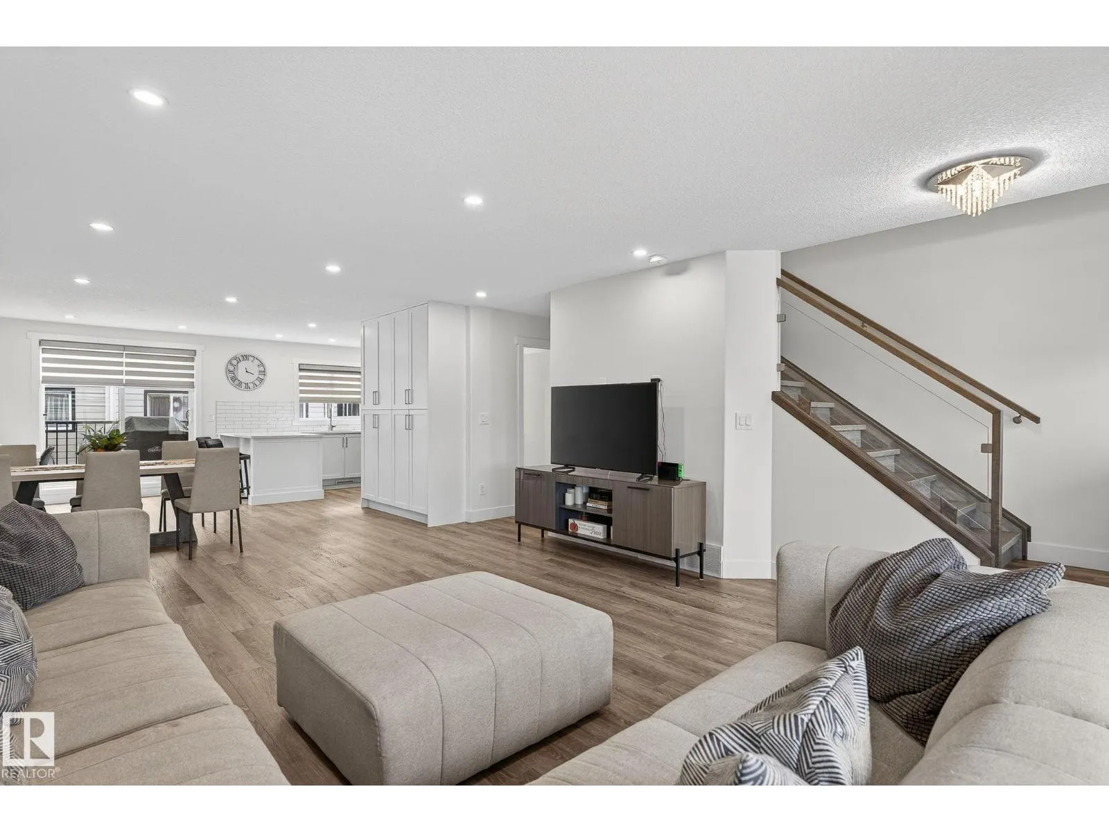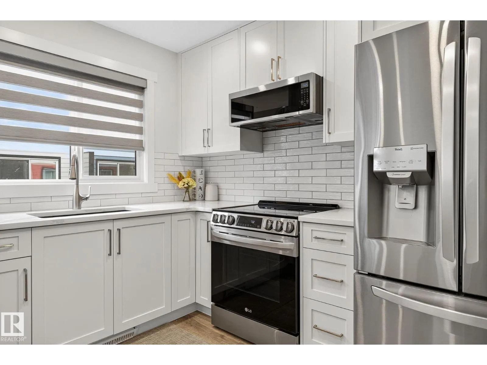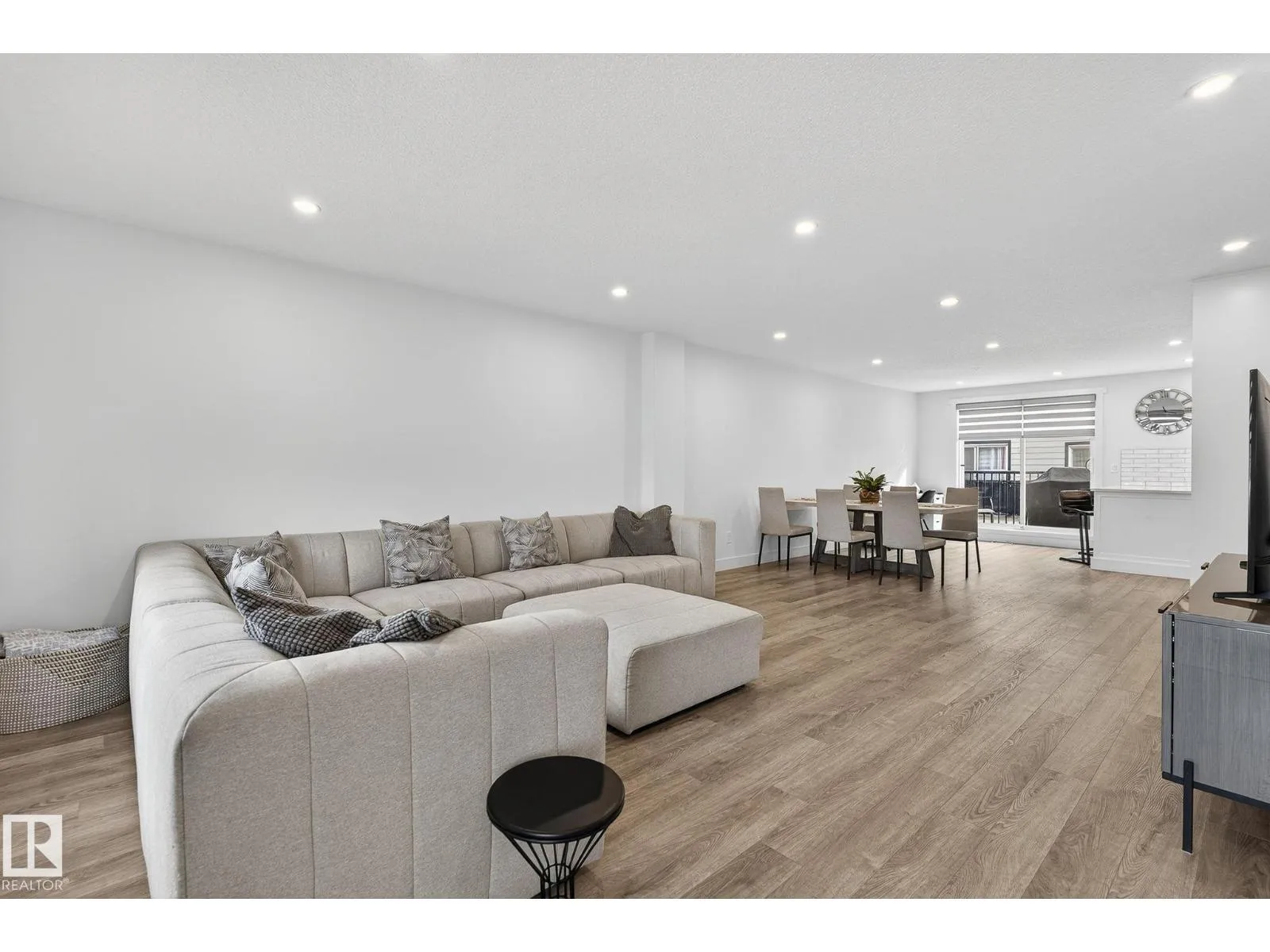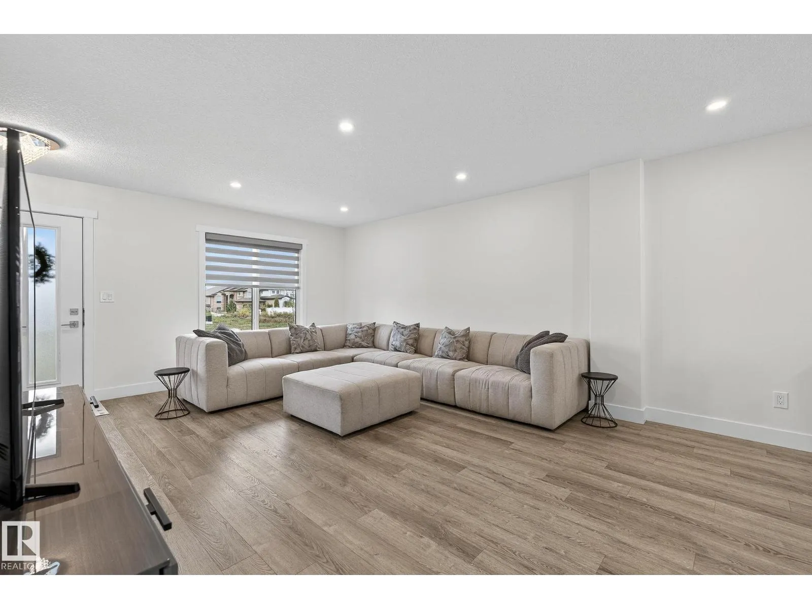 Welcome to this beautifully designed modern end unit townhome, offering just under 1,800 sq ft of total living space in the heart of Eaux Claires. Completed in May 2023, this home features premium finishes, a thoughtful layout, and exceptional conveniences. The upper level includes a spacious primary bedroom with a 4-piece ensuite, two additional bedrooms, another full 4-piece bathroom, upper-floor laundry, and ample closet space. The main floor offers a bright and open living & dining area, and a kitchen with floor-to-ceiling cabinetry for added storage and modern appeal. On the lower level, enjoy a bonus/flex room, a 2-piece bathroom, utility/furnace room, and access to the double attached garage. This townhome comes with central air conditioning for added comfort. Located minutes from shopping, grocery stores, cafes, schools, and the Eaux Claires Transit Centre, this home is perfect for families, professionals, or investors looking for a move-in-ready property in a well-connected neighbourhood. (id:27476)