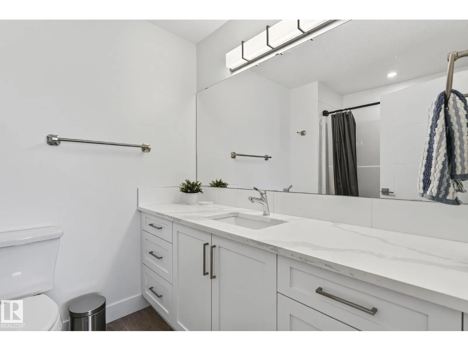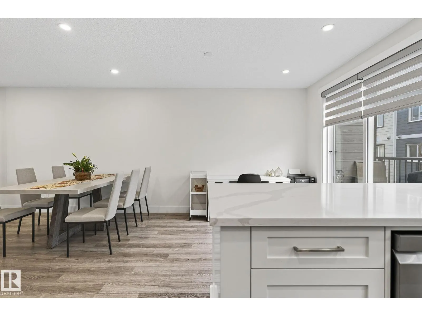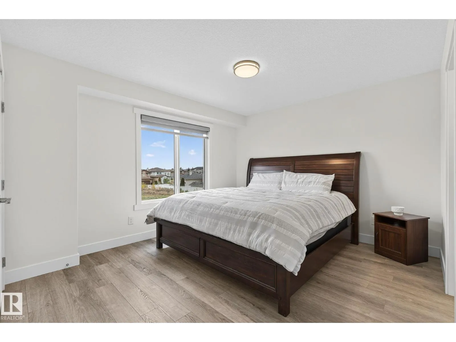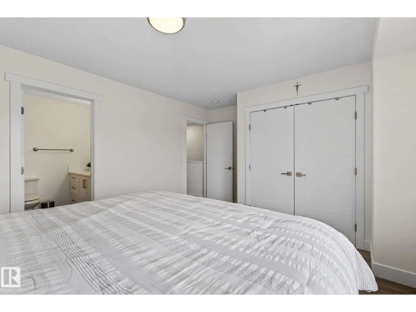 Welcome to this beautifully designed modern end unit townhome, offering just under 1,800 sq ft of total living space in the heart of Eaux Claires. Completed in May 2023, this home features premium finishes, a thoughtful layout, and exceptional conveniences. The upper level includes a spacious primary bedroom with a 4-piece ensuite, two additional bedrooms, another full 4-piece bathroom, upper-floor laundry, and ample closet space. The main floor offers a bright and open living & dining area, and a kitchen with floor-to-ceiling cabinetry for added storage and modern appeal. On the lower level, enjoy a bonus/flex room, a 2-piece bathroom, utility/furnace room, and access to the double attached garage. This townhome comes with central air conditioning for added comfort. Located minutes from shopping, grocery stores, cafes, schools, and the Eaux Claires Transit Centre, this home is perfect for families, professionals, or investors looking for a move-in-ready property in a well-connected neighbourhood. (id:27476)