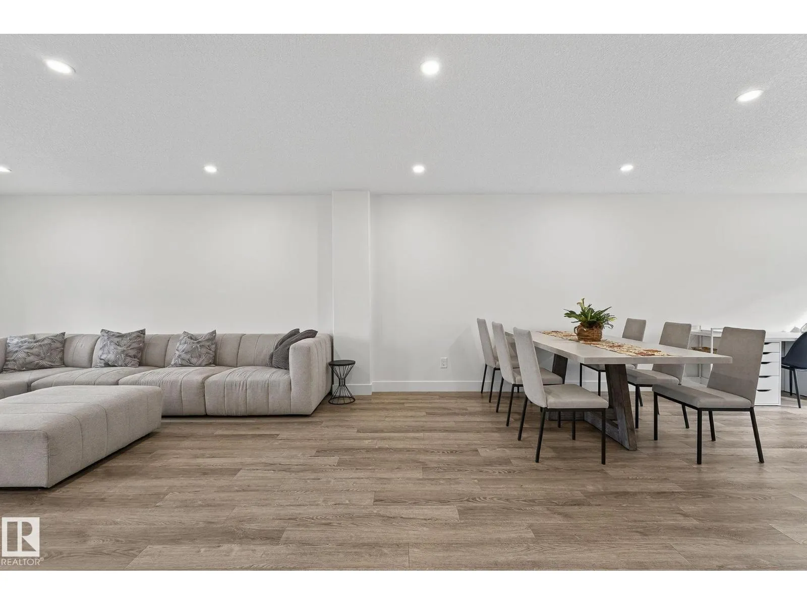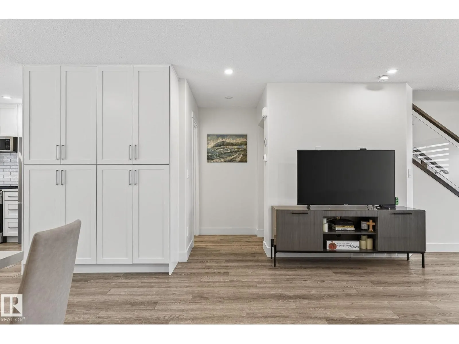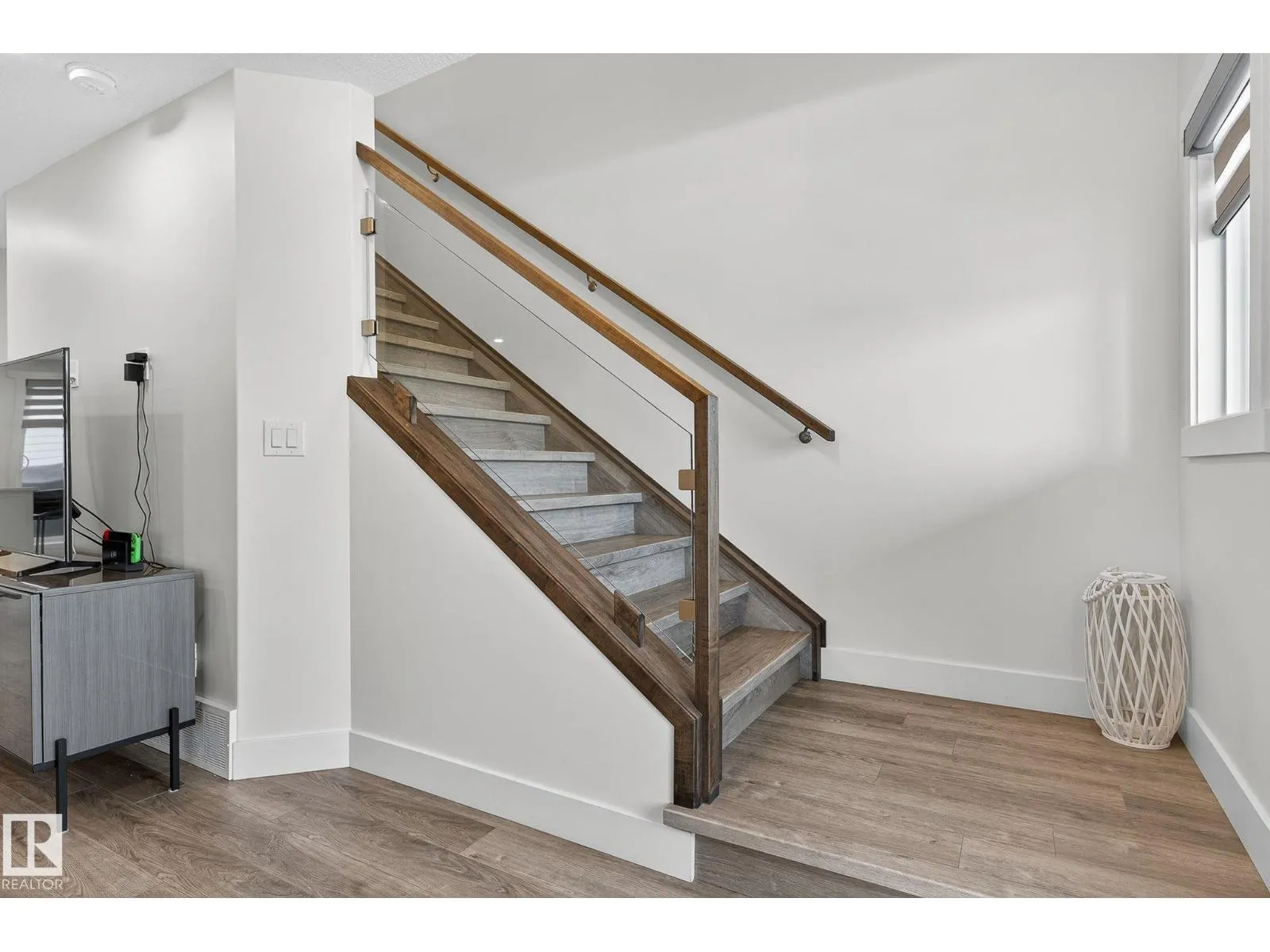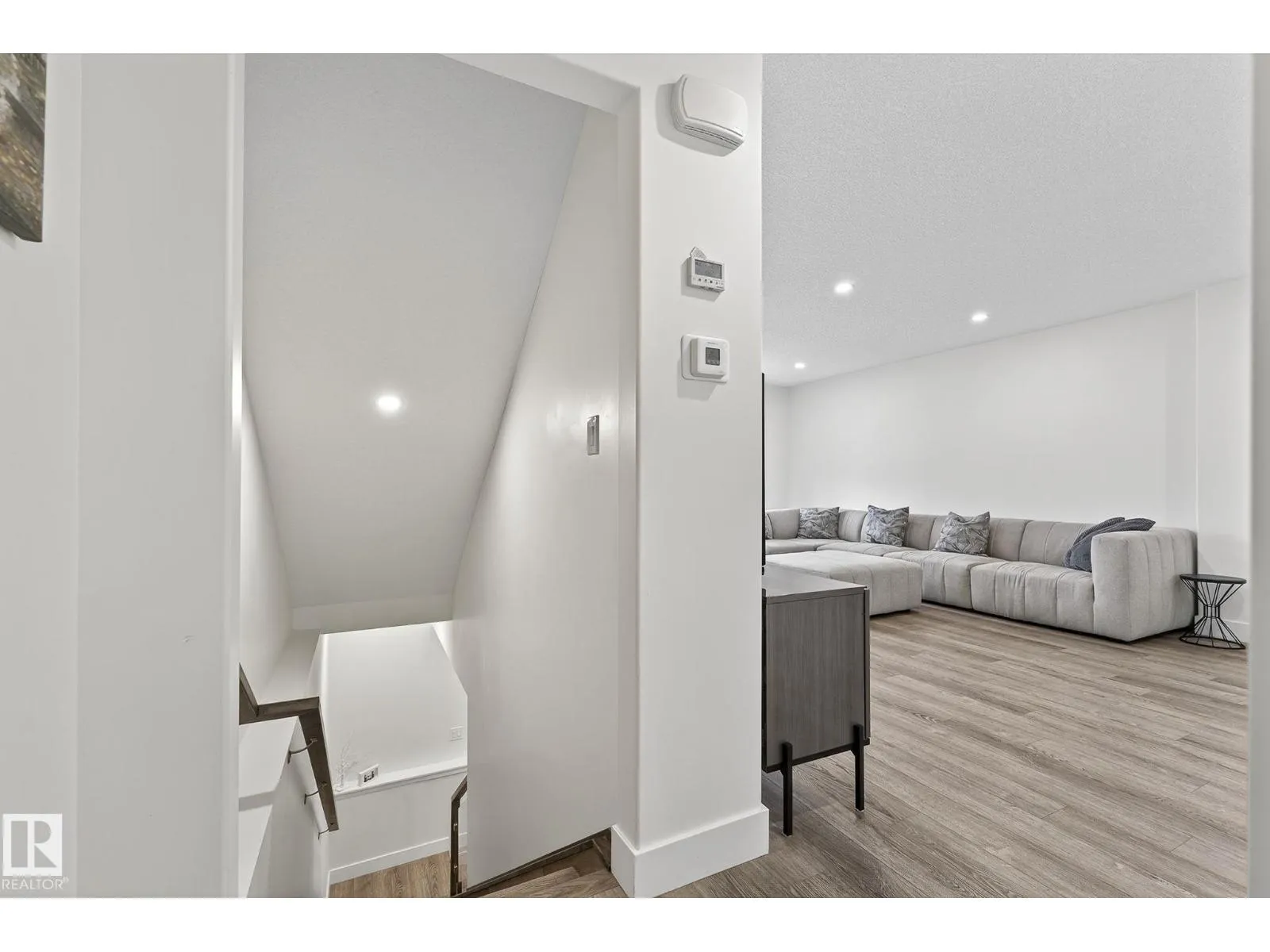 Welcome to this beautifully designed modern end unit townhome, offering just under 1,800 sq ft of total living space in the heart of Eaux Claires. Completed in May 2023, this home features premium finishes, a thoughtful layout, and exceptional conveniences. The upper level includes a spacious primary bedroom with a 4-piece ensuite, two additional bedrooms, another full 4-piece bathroom, upper-floor laundry, and ample closet space. The main floor offers a bright and open living & dining area, and a kitchen with floor-to-ceiling cabinetry for added storage and modern appeal. On the lower level, enjoy a bonus/flex room, a 2-piece bathroom, utility/furnace room, and access to the double attached garage. This townhome comes with central air conditioning for added comfort. Located minutes from shopping, grocery stores, cafes, schools, and the Eaux Claires Transit Centre, this home is perfect for families, professionals, or investors looking for a move-in-ready property in a well-connected neighbourhood. (id:27476)