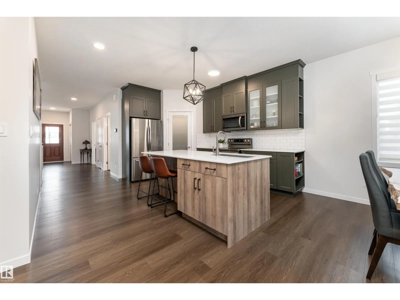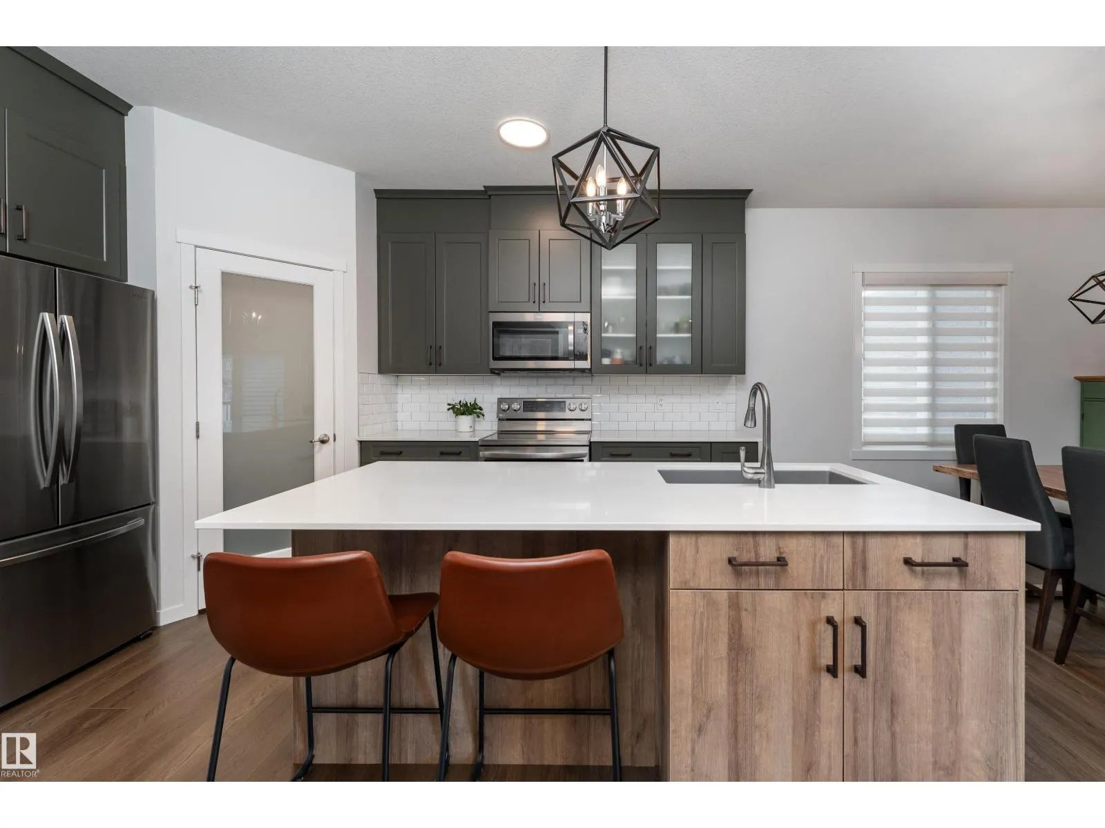 This 1358sqft bungalow built in 2022 by Coventry Homes offers 2 beds & 2 baths on main floor, double-attached garage at the back & low maintenance yard in the desirable Griesbach neighbourhood. A spacious, open entry way welcomes you into this well-maintained, like-new home! Primary offers walk-through closet w/ organizers & 5pc ensuite w/ dual sinks, stand-up shower & soaker tub. Kitchen offers corner pantry w/ frosted glass door, upgraded cabinets, s/s appliances & island w/ lots of storage. Sliding doors opens up to composite deck & low-maintenance paved concrete yard. Oversized mud room leads to attach garage at the back. Other features: no back neighbours, extra driveway parking, 9ft ceilings, triple-pane windows, widened 36 interior doors for easy wheelchair access, quartz countertops, vinyl plank flooring, 10lb carpet underlay, 150amp electrical panel, tankless hot water & Hunter Douglas blinds. Prime location w/ easy access to Downtown, Yellowhead Trail, shopping, restaurants, schools & more! (id:27476)