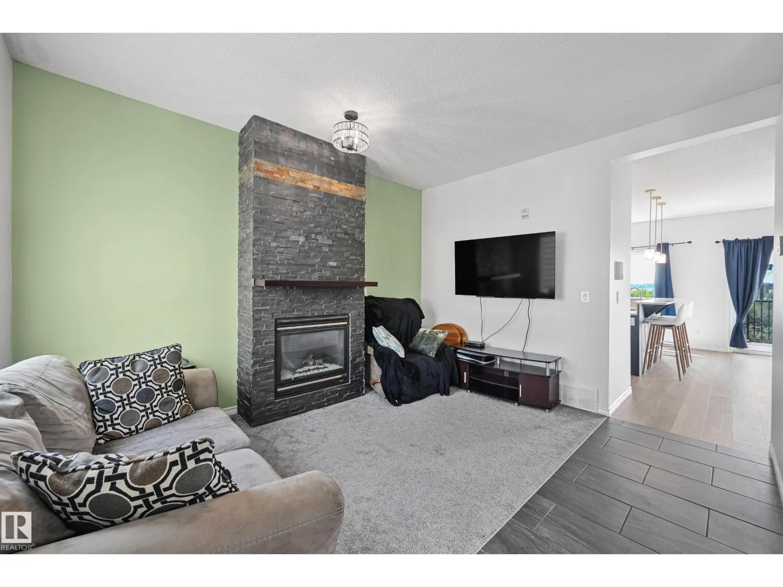 Welcome to this well kept, updated 2-storey townhouse condo in Tuscan Village, located in the quiet community of Carlton. This home features 2 bedrooms, 2.5 bathrooms, and 2 assigned underground parking stalls. The main floor has 9â ceilings and a bright, open layout. The living room includes a gas fireplace. The kitchen has been stylishly updated and offers an island with an extended eating bar, ample cabinets, granite counters and a tile backsplash. The dining area leads to a spacious balcony which overlooks a huge green space and has a gas line for your bbq. A 2-piece bathroom completes the main level. Upstairs, youâll find two large primary bedrooms, each with a walk-in closet and private ensuite, plus convenient upper-floor laundry. The finished basement includes a storage room and access to the heated underground parking stalls. Located with easy access to Anthony Henday Drive, this home is also close to schools, public transit, and shopping. A great opportunity in a well-managed complex! (id:27476)