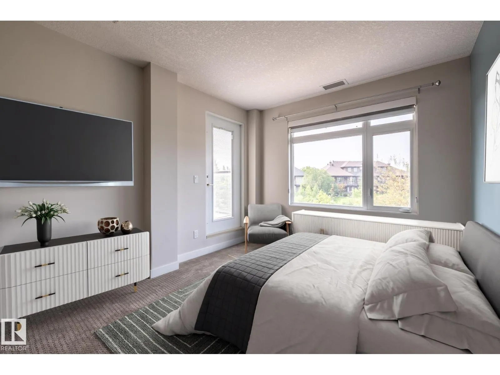 2-Storey Executive Townhouse-style Condo. 3 Bedrooms (1 on main level, 2 upper level) and 3 Bathrooms (2 full bathrooms upper level and 1 half bathroom in lower level). Master Bedroom (upper level) has walk-through closet and ensuite bathroom. Private Double Garage (heated) underground. Park your vehicle and walk into your home. This Condo also has 1 extra Parking stall underground (heated) - (about 20 feet from your private Double Garage). This Condo unit faces South, so there is plenty of natural light. This unit also faces the pond and quiet walkway. Large main level patio and also an upper level deck, with access from the 2 bedrooms. Unit has HEAT and Air Conditioning. Some photos attached are virtually staged. (id:27476)