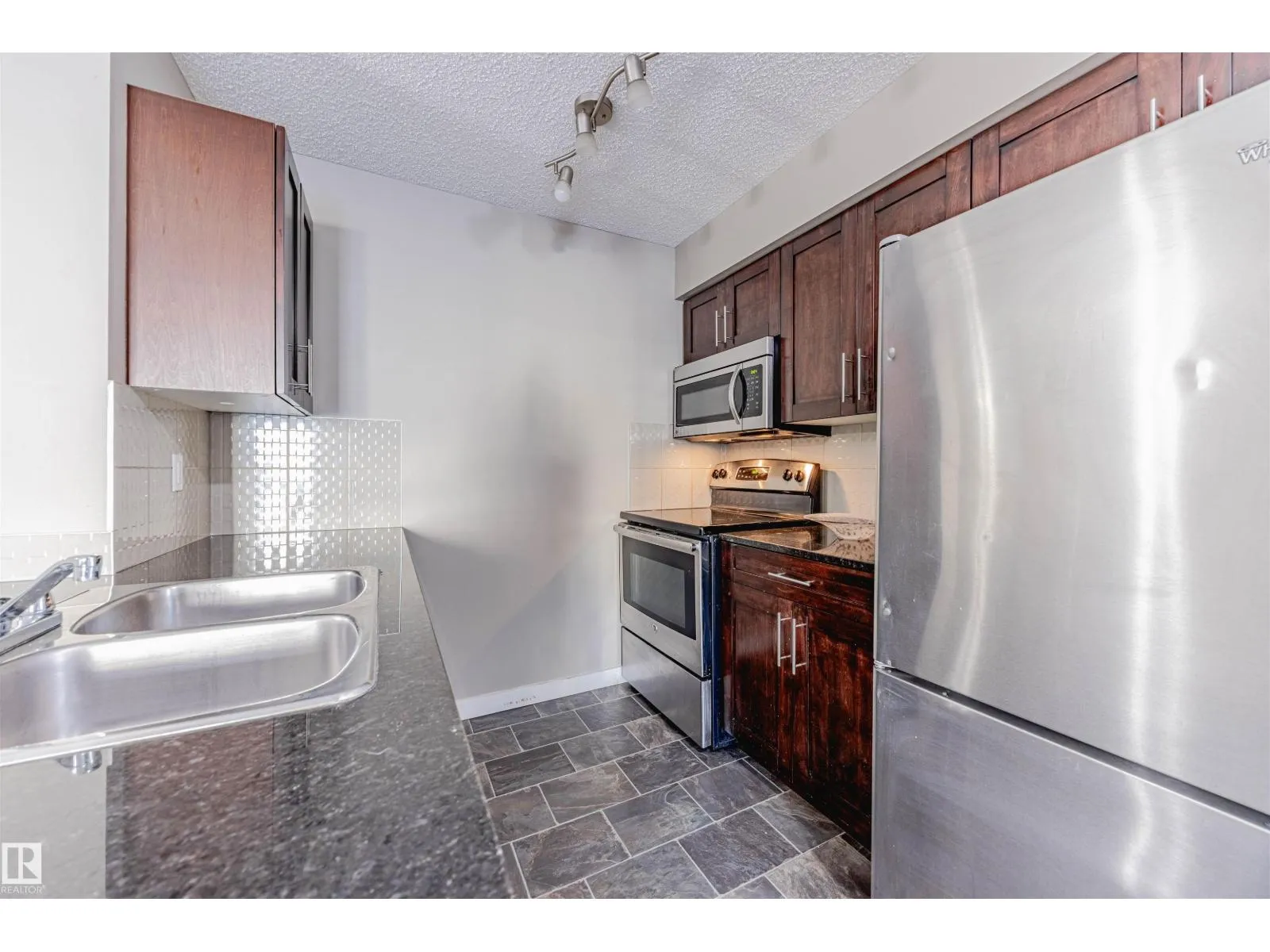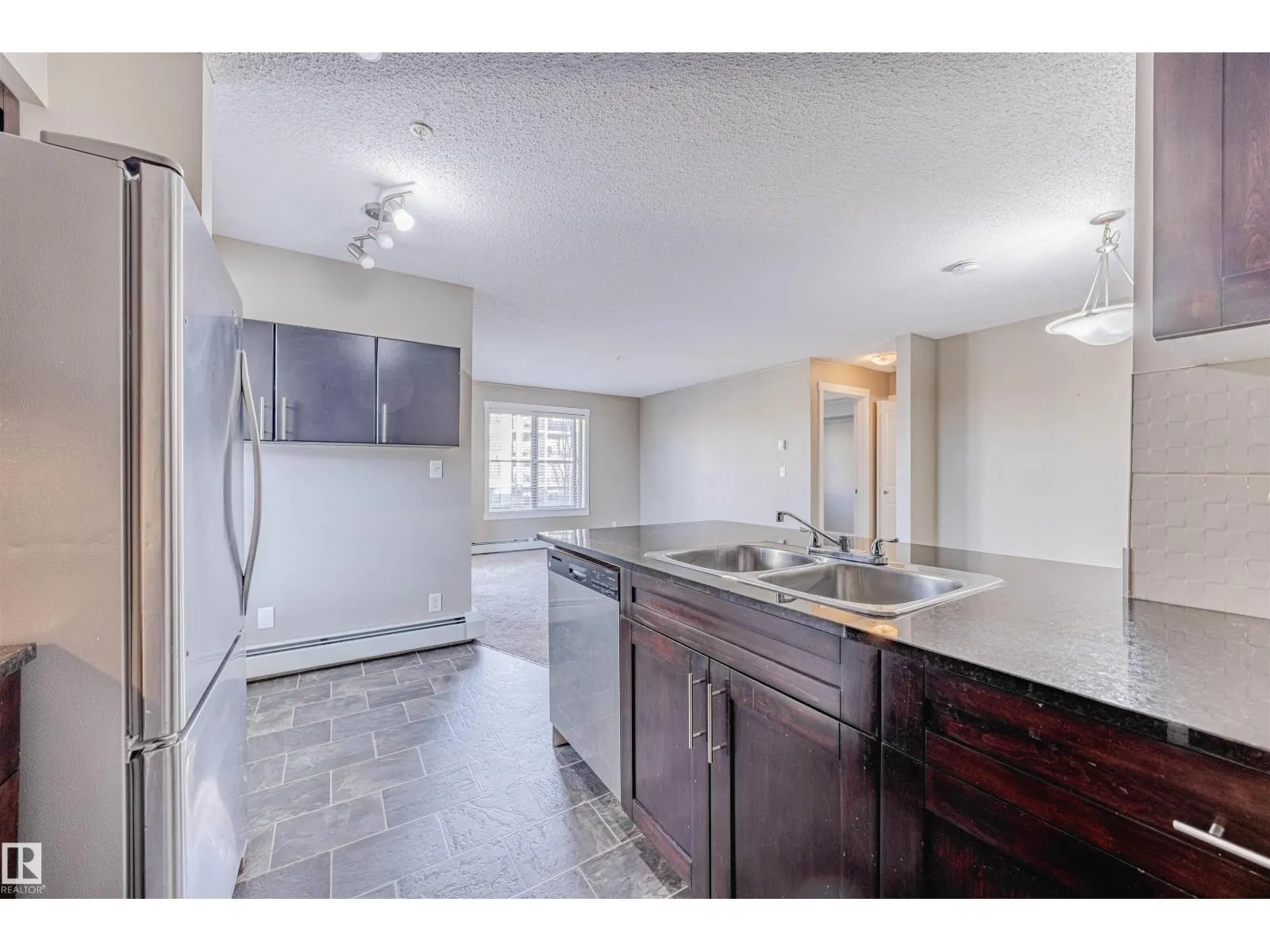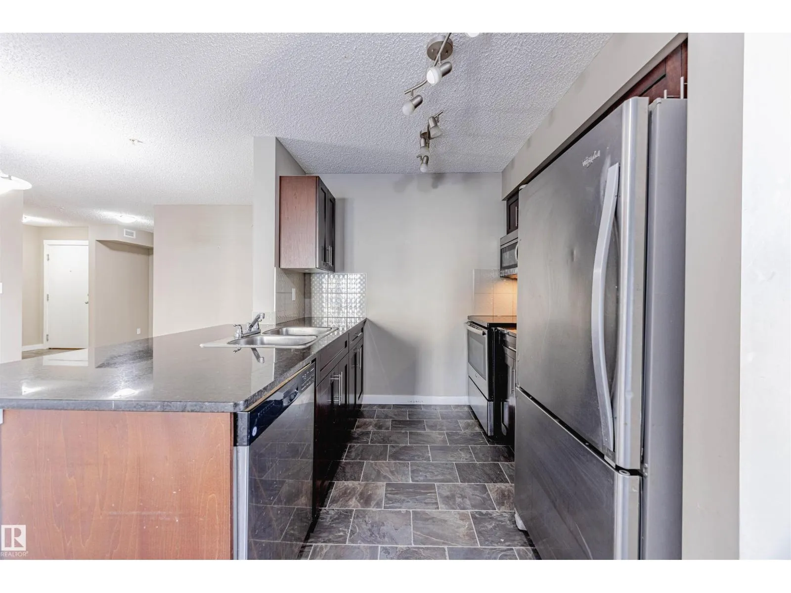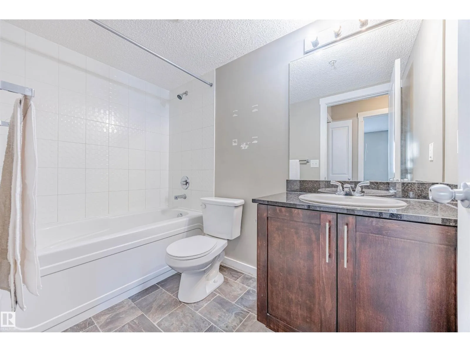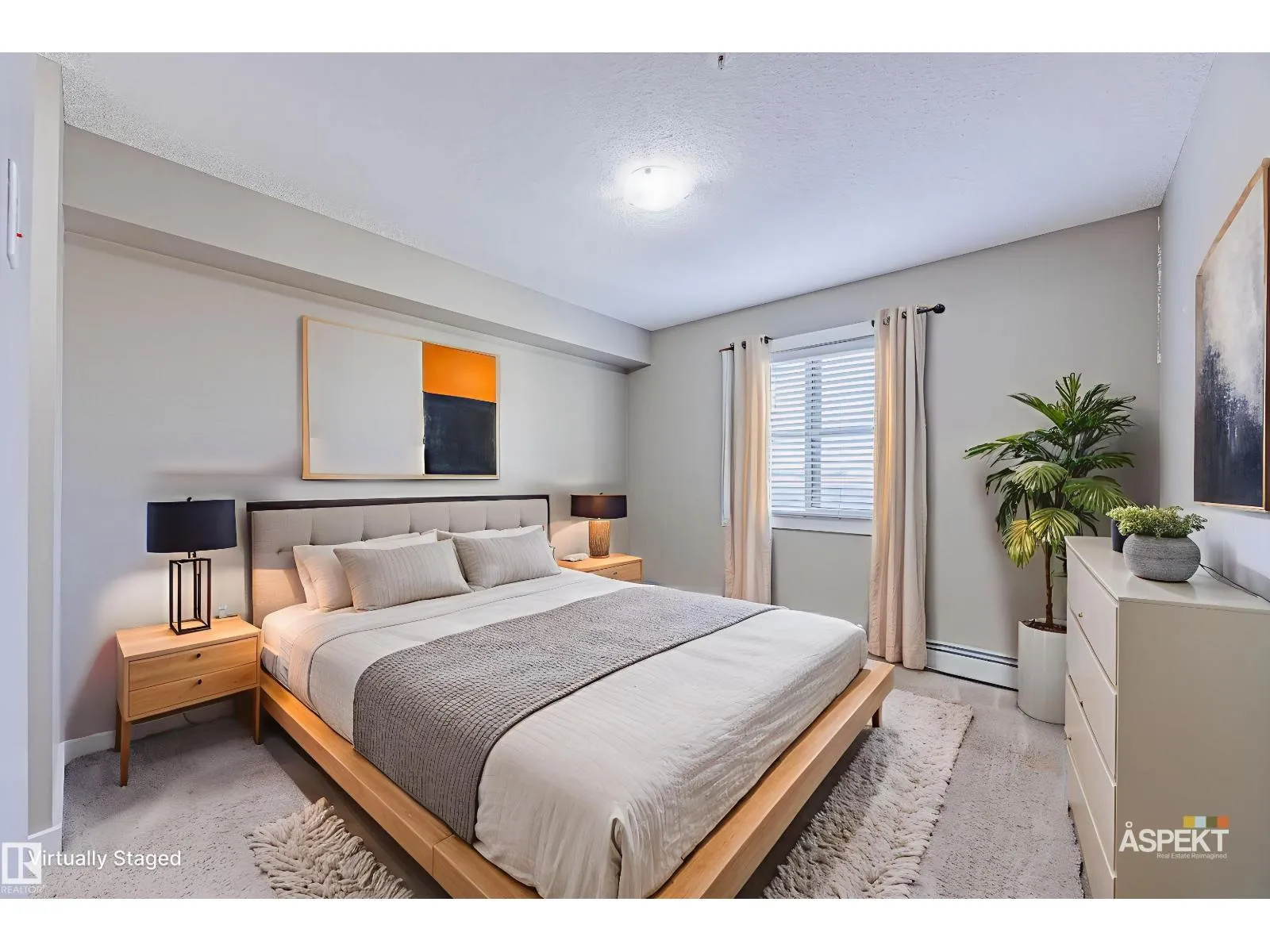 Super Location at MacTaggart Ridge Gate! Bright and modern! 925 sqft of contemporary living in a highly desirable community. Excellent investment! The open-concept layout features a bright, south-facing living room with a large window and patio door leading to a spacious Corner unit balcony with open views. A well-appointed kitchen with granite countertops, dark cabinetry, and stainless steel appliances. A spacious primary suite, with a walk-through closet, and a private 3-piece ensuite. A generously sized second bedroom with a south-facing window. Flexible open entrance area, ideal for a home office. Additional highlights include: In-suite laundry with storage. Titled, heated underground parking, Prime locationâwalking distance to shopping, transit, ravine trails, and dining at Currents of Windermere, quick access to Anthony Henday Drive This is the perfect home for first-time buyers, downsizers, or investors looking for a move-in-ready condo in a fantastic location. (id:27476)
