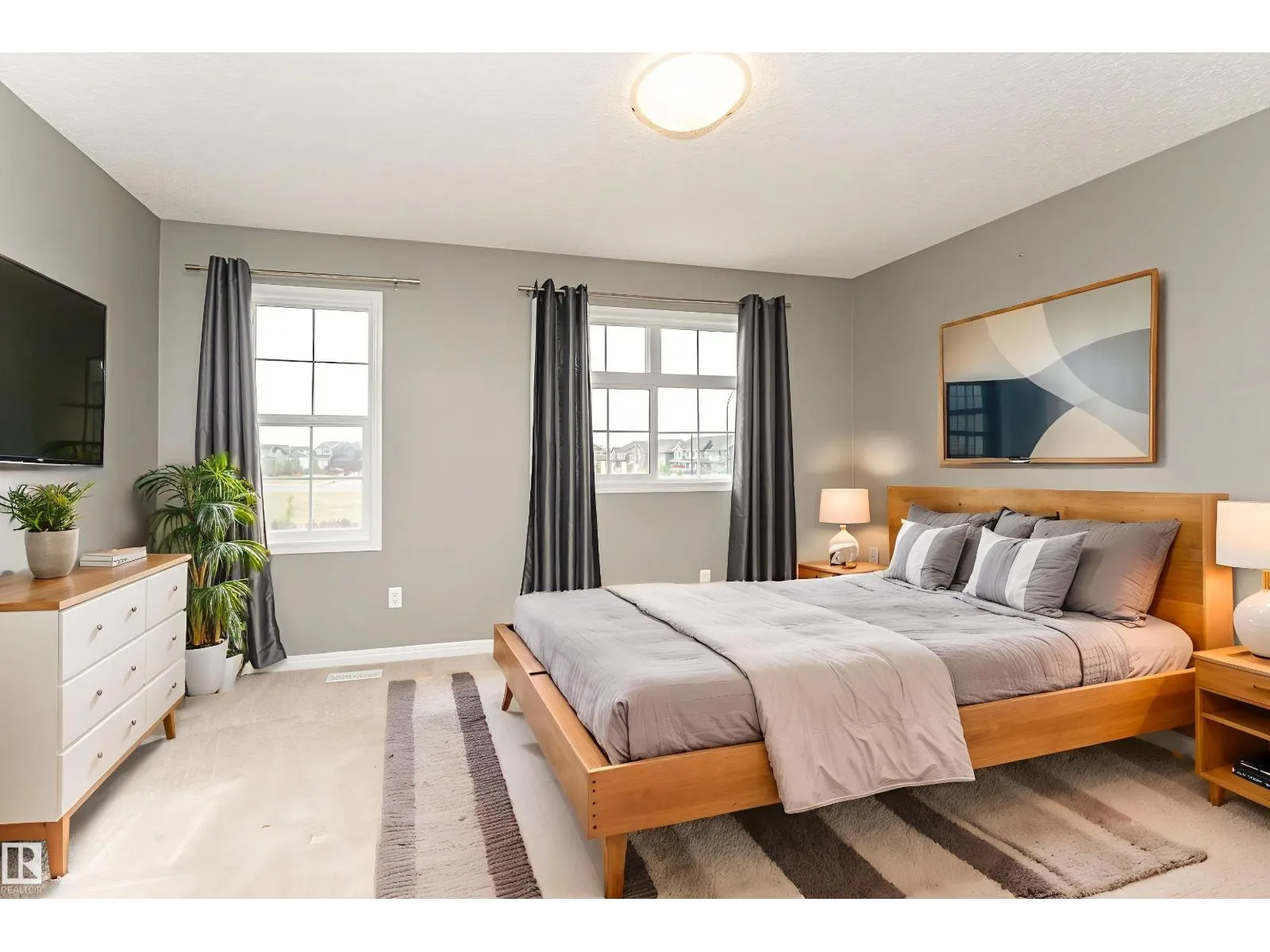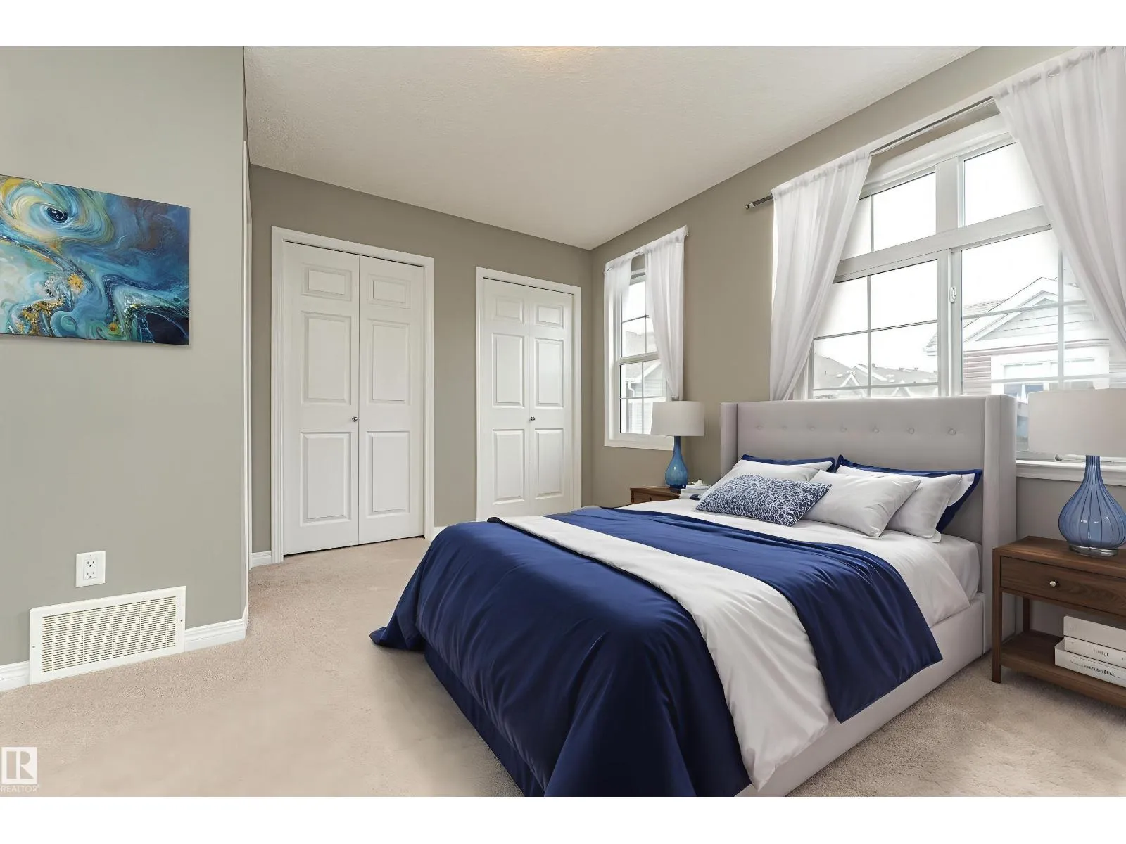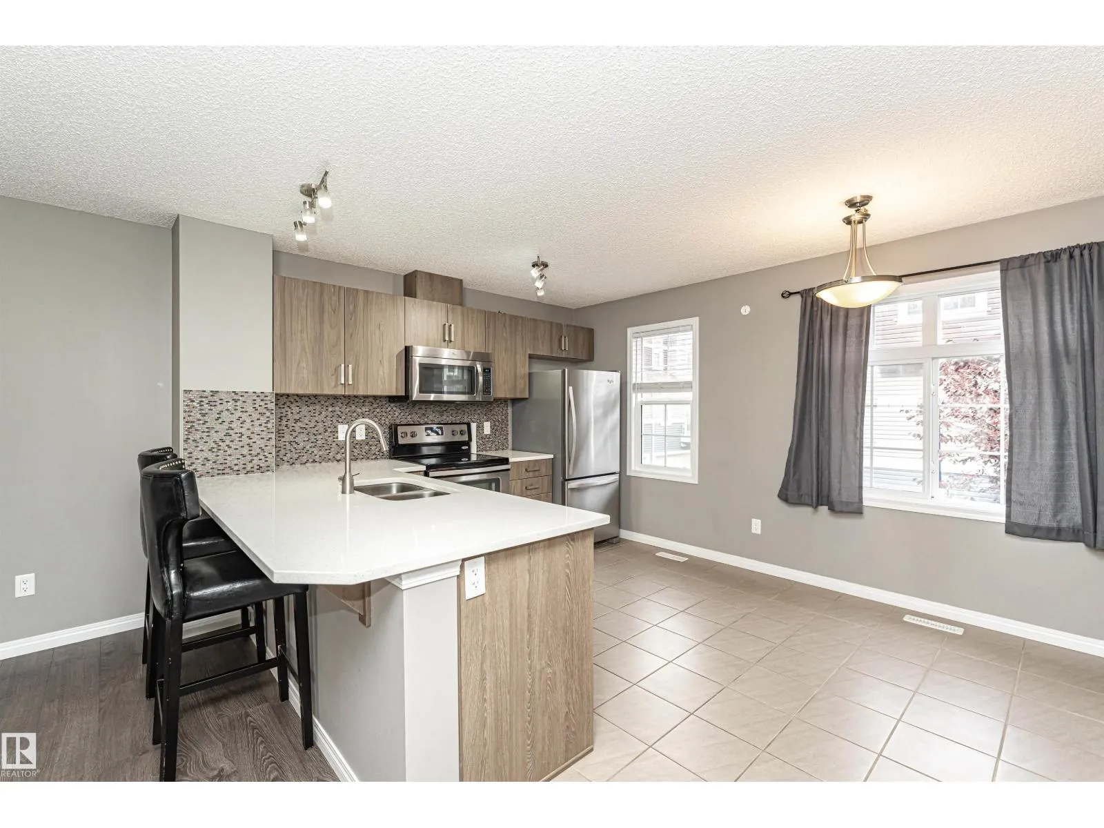 Welcome to The Sands in Summerside! Step inside this immaculately maintained 2-bedroom, 2.5-bath townhouse and feel right at home. Bright entryway, modern laminate flooring set the tone for a warm & welcoming space. Open-concept main floor is perfect for everyday living & entertaining. Living room flows seamlessly into the kitchen, where youâll find sleek quartz countertops, stainless steel appliances, and loads of cabinetryâa kitchen designed for both function and style. A dining room and a handy 2-piece powder room completes the main level. Upstairs, the sought-after dual primary layout features 2 spacious bedrooms, each with its own full ensuite bathâideal for roommates, guests, or a private office setup. The attached tandem double garage provides parking and extra storage. Best of all, this home comes with exclusive access to Lake Summerside. Imagine 32-acre lake, sandy beach, and year-round recreation. With schools, ETS, shopping & quick access to Henday. Welcome Home! (Some photos virtually staged) (id:27476)
