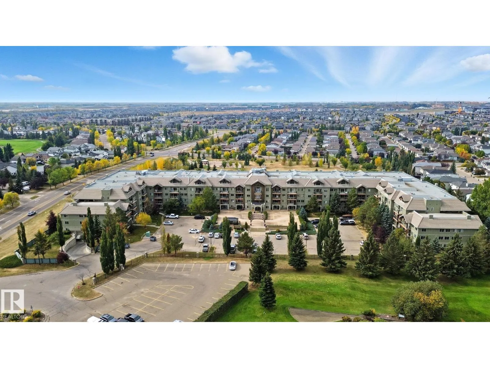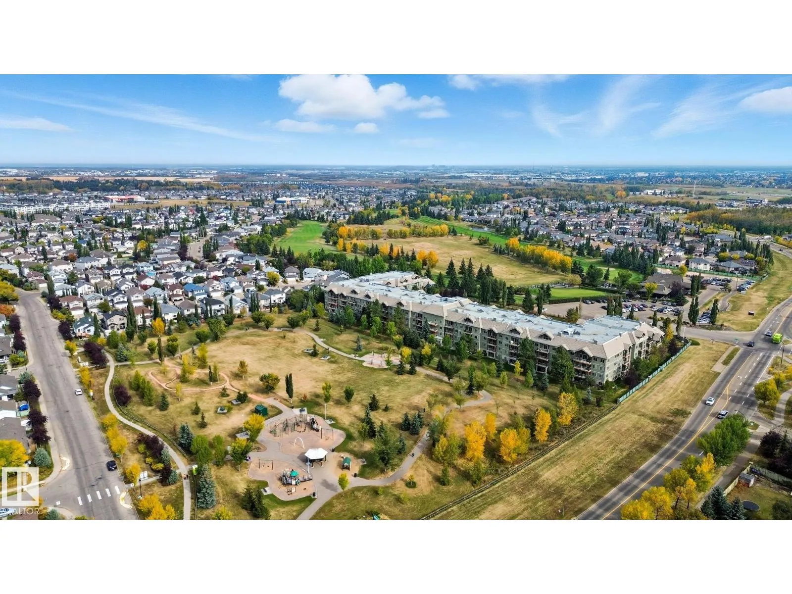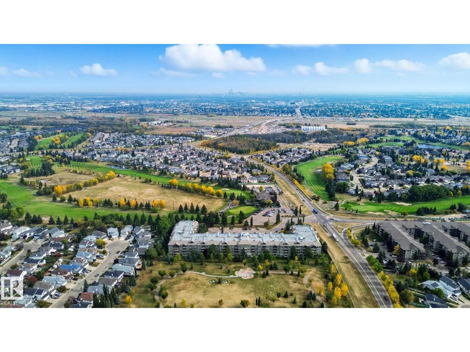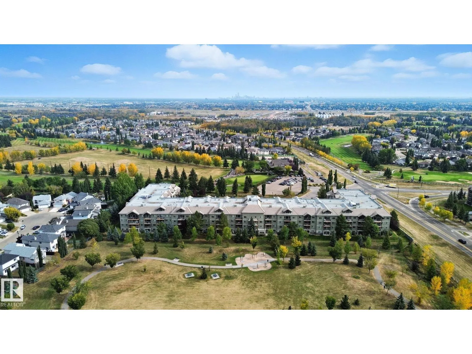 Exceptional top-floor opportunity in The Lodge at Lewis Estates! Situated in a well-maintained 30+ adult building in West Edmonton, this beautifully kept condo offers 2 spacious bedrooms, 2 full bathrooms, 2 titled underground parking stalls (with storage cages), and a titled storage room just steps from your door. The open-concept design feels bright and airy, with air conditioning, hardwood floors, and a balcony with a gas BBQ hookup. The modern kitchen is ideal for hosting, featuring quartz countertops, tile backsplash, stainless steel appliances, and a large island. The generous primary suite includes a walk-through closet and 4-pc ensuite. Huge Second Bedroom, main 3pce bath and laundry room complete the unit. Enjoy top-tier amenities: fitness centre, hot tub, steam room, party & games room, rooftop patios, theatre, car wash, and bike storage. Perfectly located next to Lewis Estates Golf Course, with quick access to the Whitemud, Anthony Henday, and all major shopping. (id:27476)