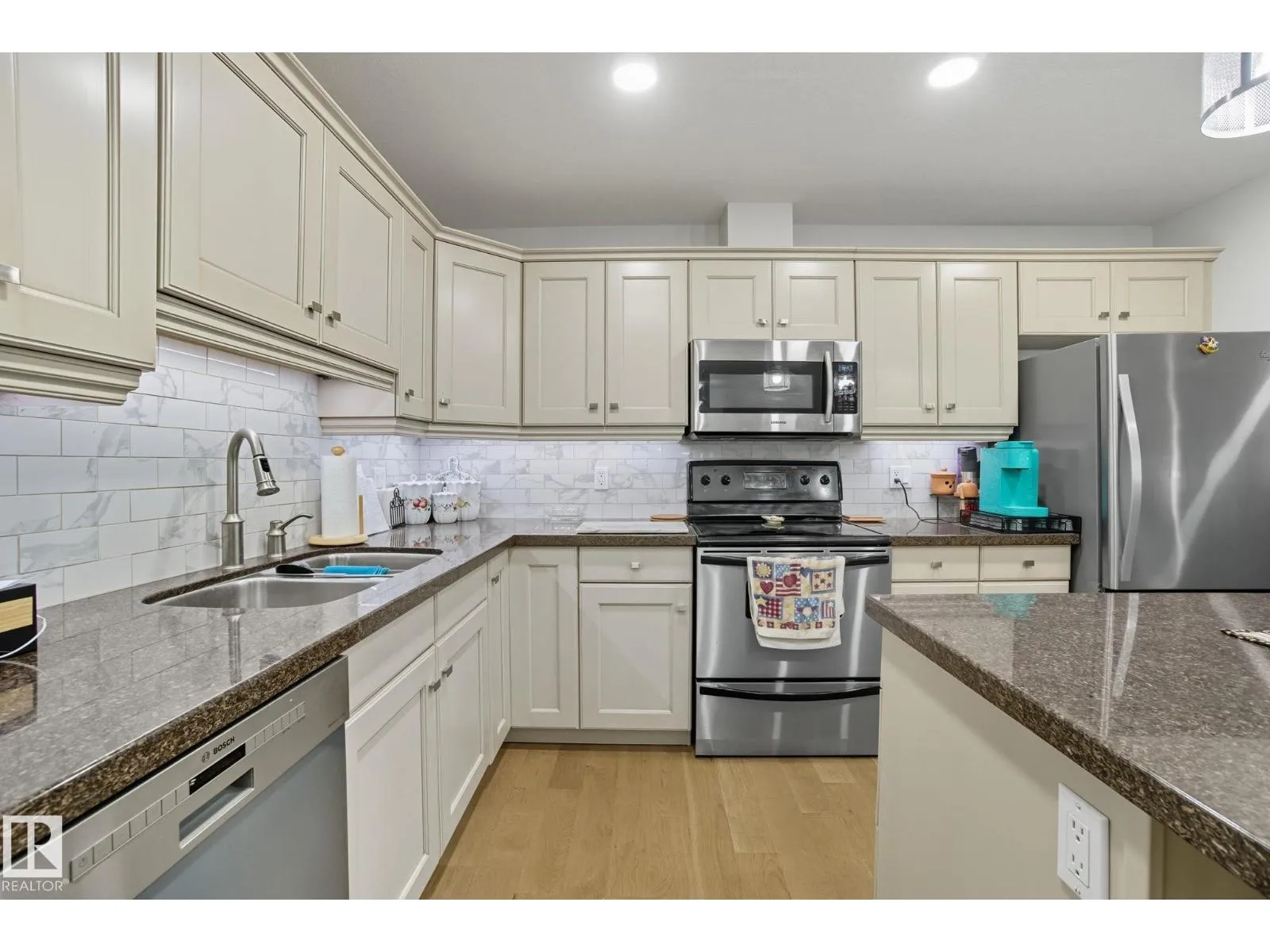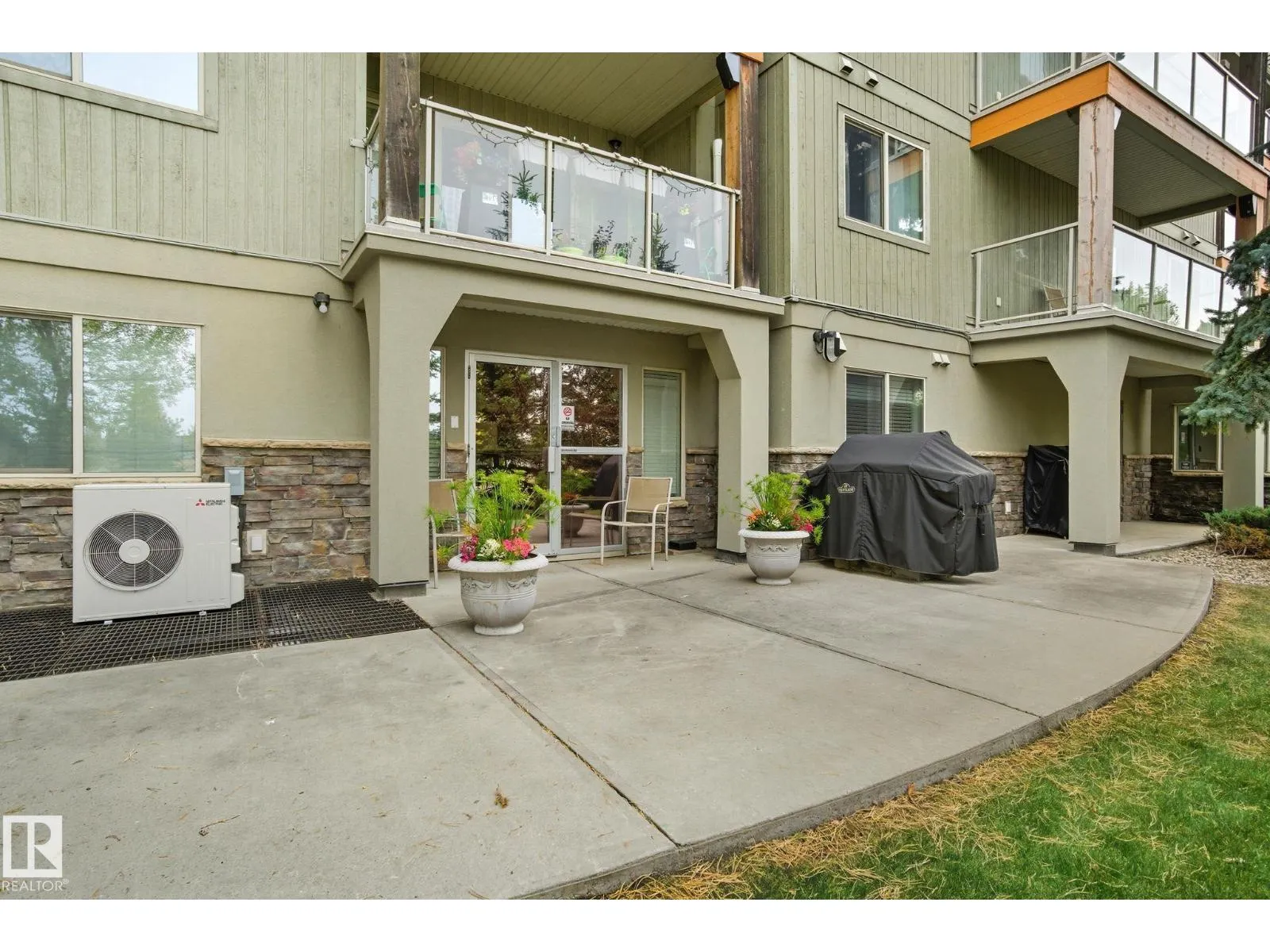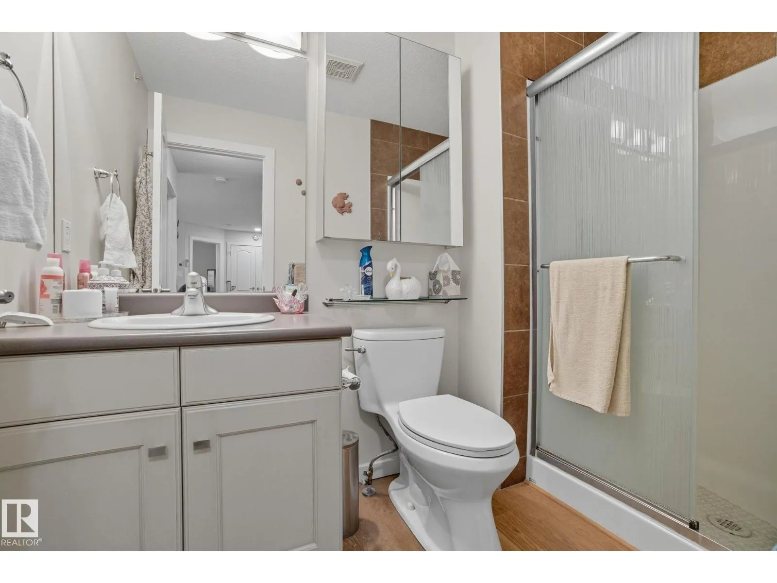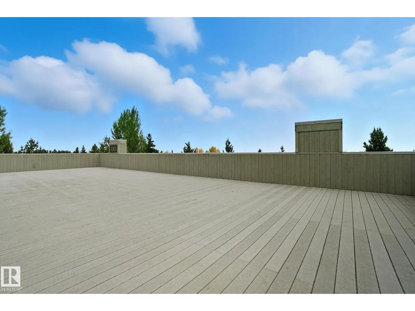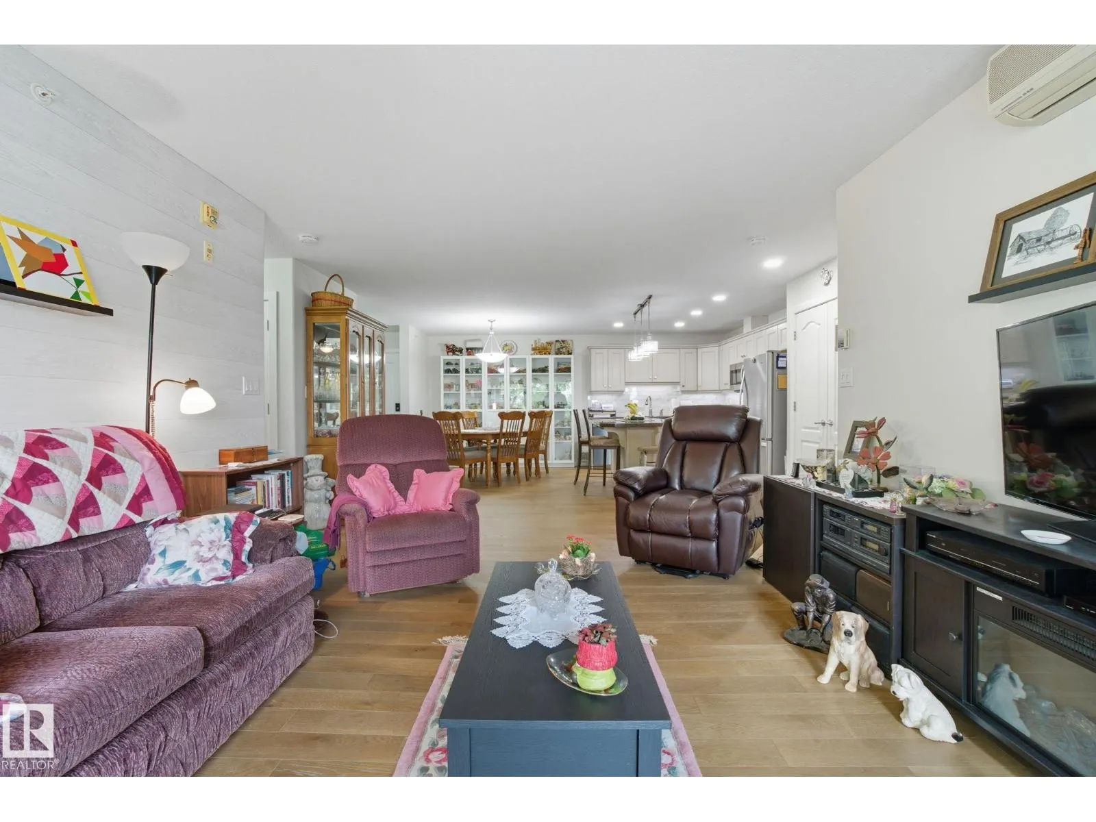 Exceptional top-floor opportunity in The Lodge at Lewis Estates! Situated in a well-maintained 30+ adult building in West Edmonton, this beautifully kept condo offers 2 spacious bedrooms, 2 full bathrooms, 2 titled underground parking stalls (with storage cages), and a titled storage room just steps from your door. The open-concept design feels bright and airy, with air conditioning, hardwood floors, and a balcony with a gas BBQ hookup. The modern kitchen is ideal for hosting, featuring quartz countertops, tile backsplash, stainless steel appliances, and a large island. The generous primary suite includes a walk-through closet and 4-pc ensuite. Huge Second Bedroom, main 3pce bath and laundry room complete the unit. Enjoy top-tier amenities: fitness centre, hot tub, steam room, party & games room, rooftop patios, theatre, car wash, and bike storage. Perfectly located next to Lewis Estates Golf Course, with quick access to the Whitemud, Anthony Henday, and all major shopping. (id:27476)
