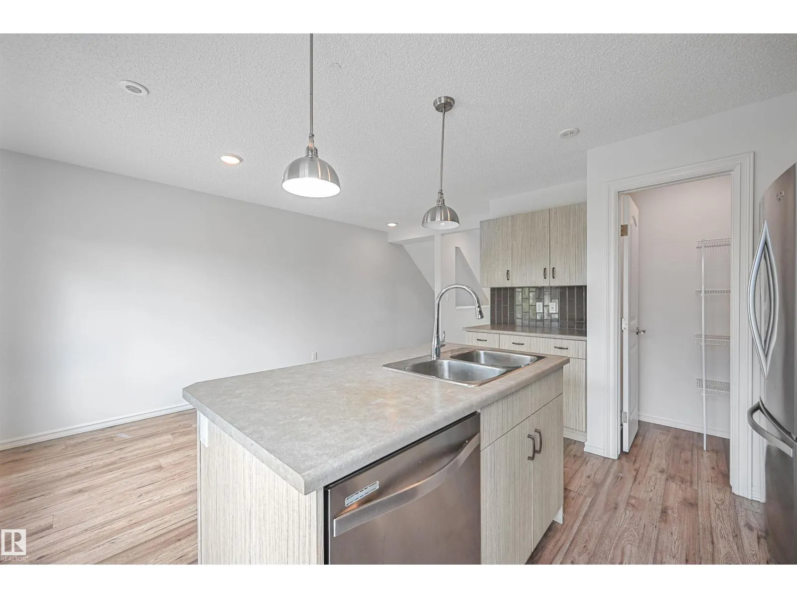 Perfect property for first-time home buyers & investors in Southeast Edmonton. This 3 bed townhome boasts an open concept, ample natural light, & vinyl plank flooring throughout the main level. The kitchen is spacious w/ stainless steel appliances, pantry, full height cabinetry, subway tile backsplash & large island. The upper level offers 3 bedrms, transom windows, & plenty of storage: the primary includes a 4 piece ensuite w/ dual sinks, walk-in shower & walk-in closet. 2nd bdrm also has ensuite/walk-in closet. Lower level has an attached double car garage & mudroom. Nicely-appointed location in complex with desirable low maintenance fenced-in yard to enjoy the warmer months. Higher energy efficiency w/tankless hot water & heat recapture for a lower utility bill. This well maintained complex offers visitor parking & is walking distance to tons of amenities, including park/pond. Located close to shopping, a community playground, community league, newer rec centre, schools & public transit. (id:27476)