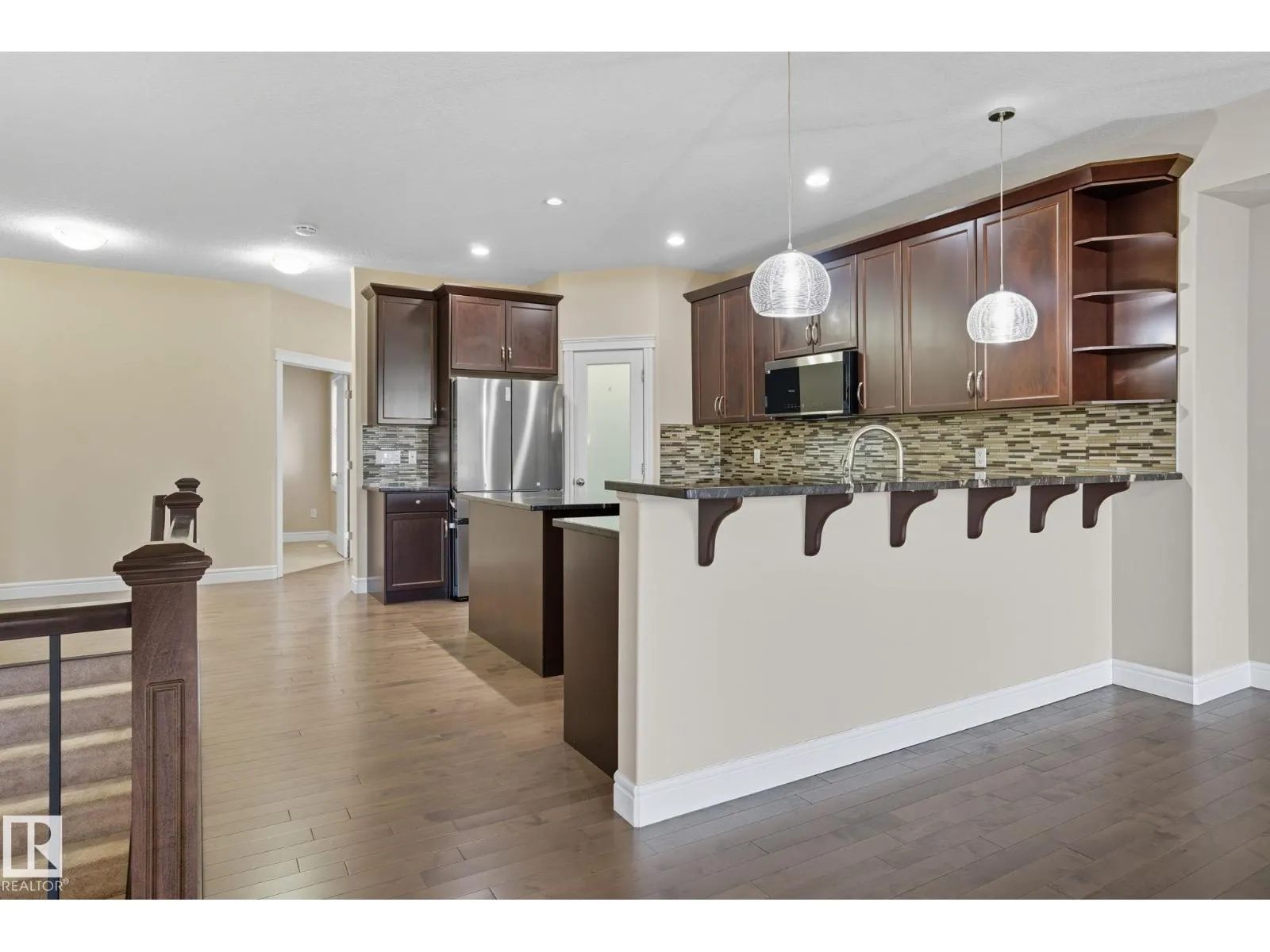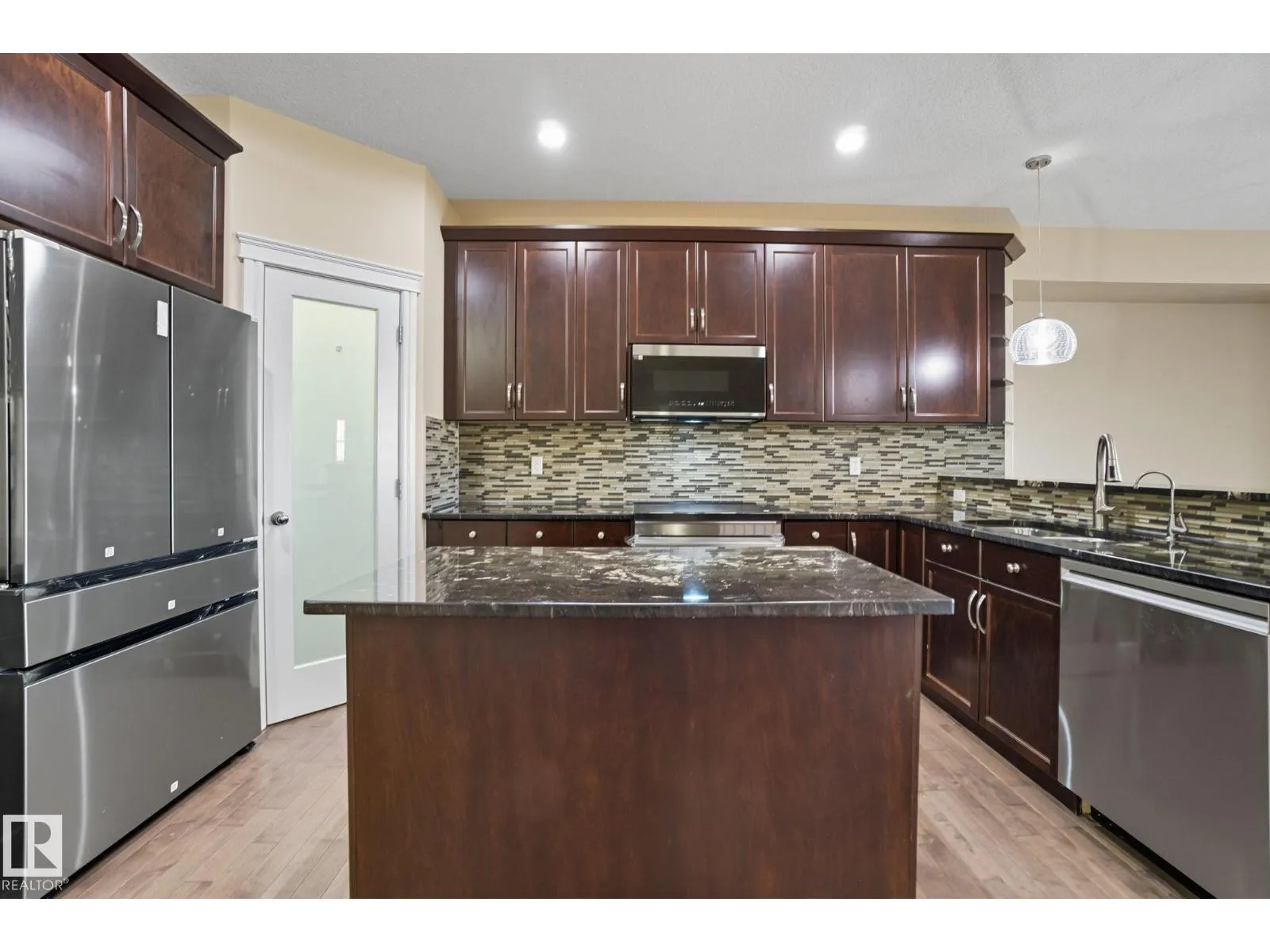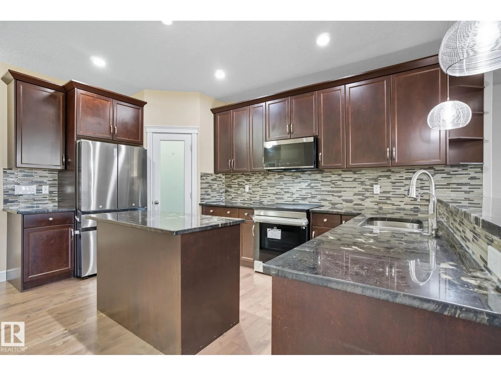 CUSTOM BUILT 2+2 bdm 1600+ sqft EXECUTIVE WALKOUT BUNGALOW w/ TRIPLE CAR garage backing onto beautiful dry pond in prestigious College Woods of Klarvatten. Curb appeal+, driveway+, landscaped, ramp toward entrance. Welcoming foyer leads to open floorplan, gleaming hardwood/tile flooring. Shows like SHOWHOME incl A/C, pot lighting, VIEWS! Gorgeous dark maple island kitchen w/ NEW Top of the line stainless appliances, pantry, decorative backsplash & granite counters! Expansive dining off kitchen leading to good sized cozy living room w/ brick facing gas fireplace overlooking dry pond. Relax on balcony w/ gas BBQ & nature views. Kingsized master bedroom also w/ views, walkin closet, shelving AND jacuzzi spa him/her sink ensuite. 2nd bdm, office, 2nd full bath AND laundry complete main floor. STUNNING WALKOUT basement has 2nd KITCHEN, 2 add'l bdms, bath, storage, dining and living room perfect for longterm family or guests to also enjoy amazing backyard views. Dble level patio, fruit trees, VIEWS! MUST SEE! (id:27476)