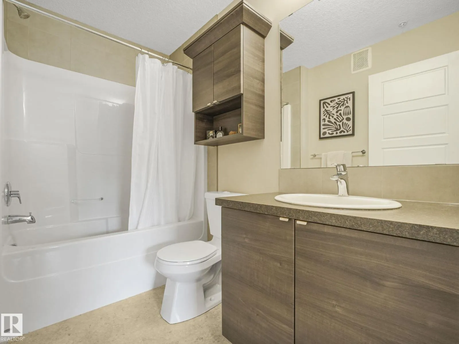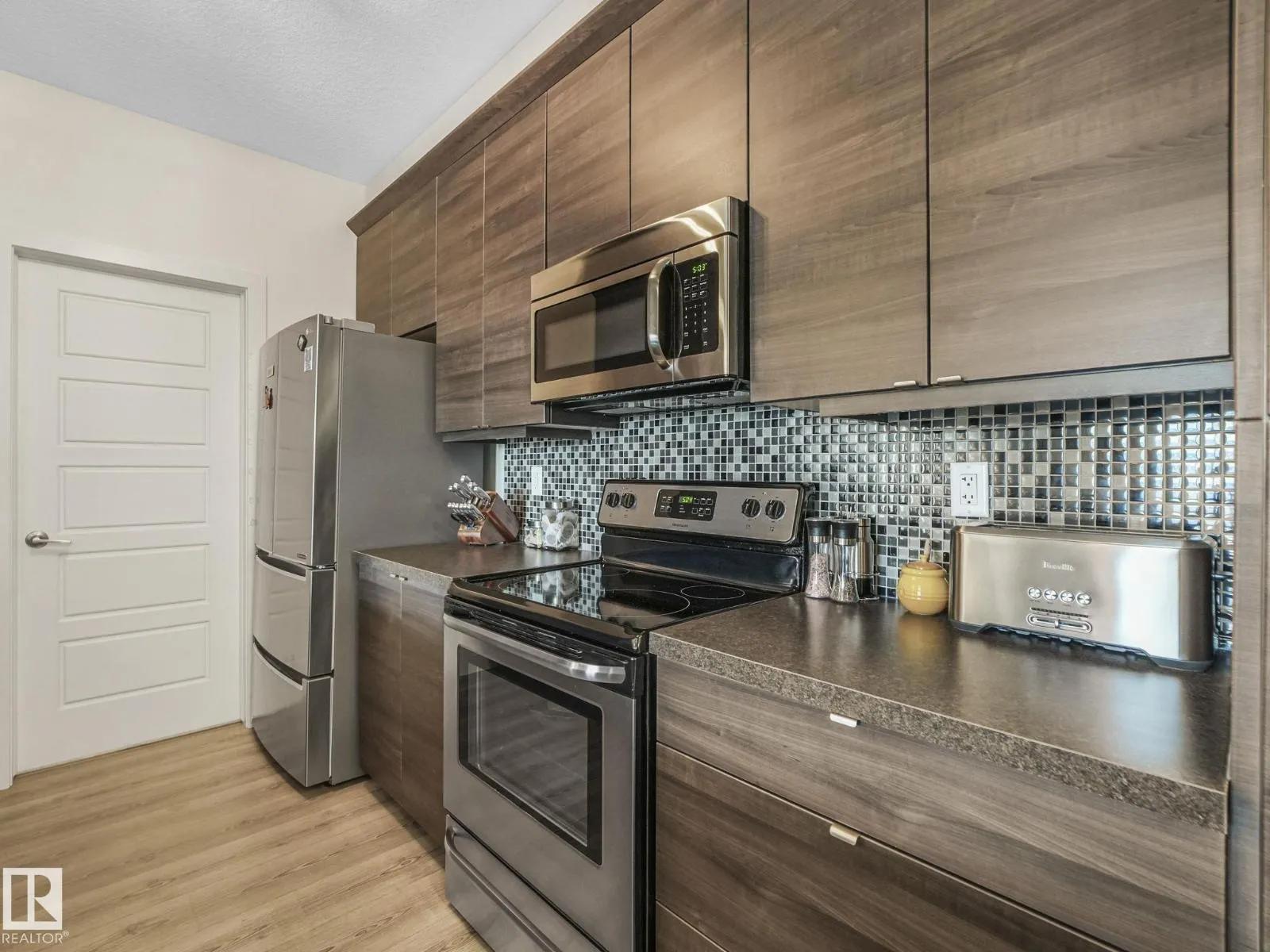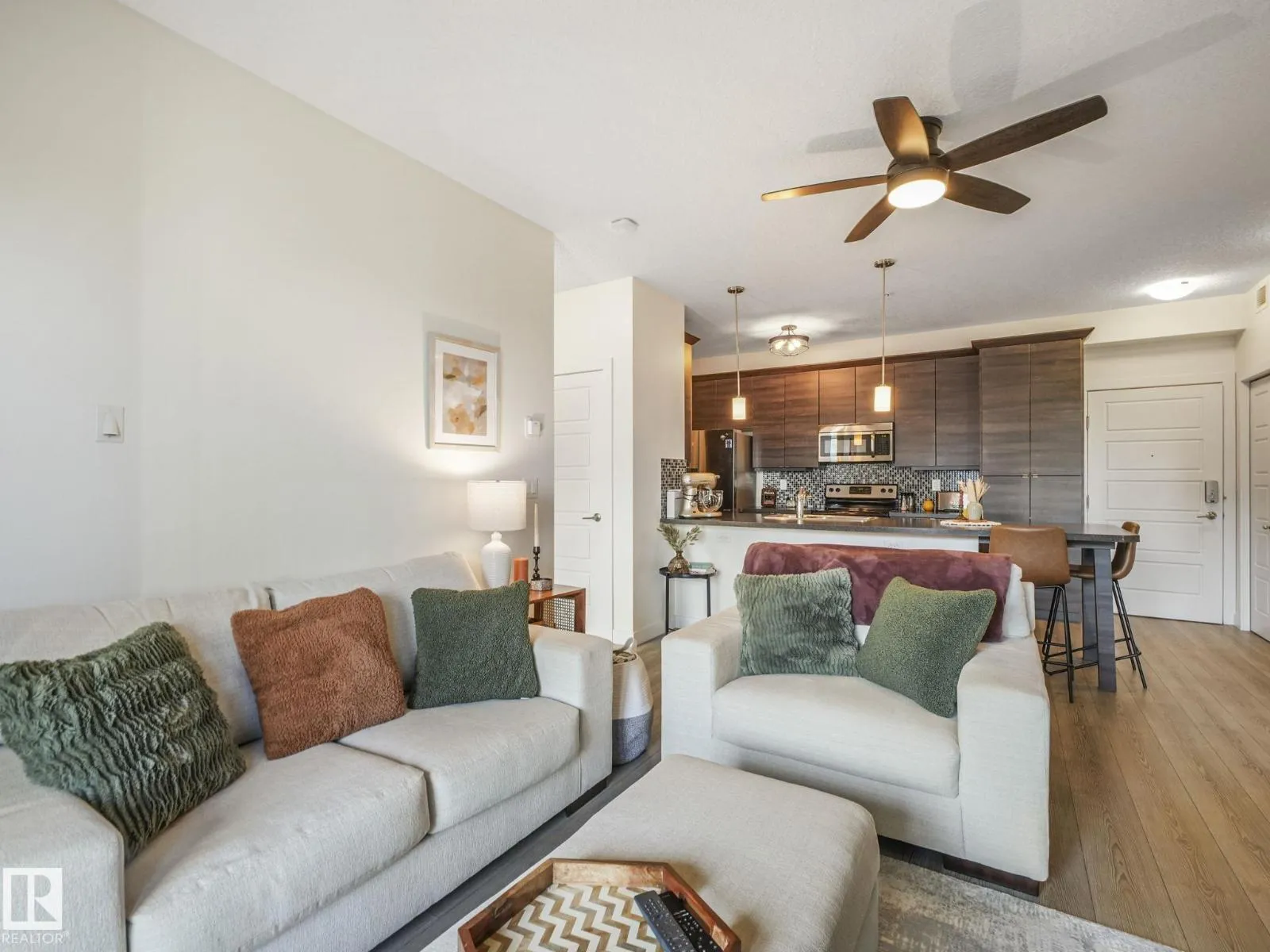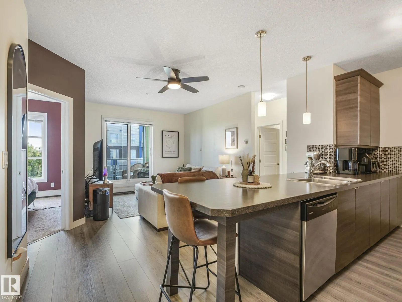 Step into homeownership with ease in this beautifully maintained 2 bed, 2 full bath condo thatâs truly move-in ready. Freshly painted with some updated lighting & a modern, open layout; this home feels bright, elegant & welcoming from the moment you walk in. The kitchen opens to a spacious living & dining area, perfect for cozy nights in or entertaining friends. From the LR, step through patio doors to enjoy morning coffee or BBQ'ing on your private balcony. The primary suite features a dbl walk-through closet & full ensuite. The 2nd bed offers privacy on the other side of the unit. Other features: secure UNDERGROUND PARKING & a storage cage, IN-SUITE LAUNDRY + storage room & BUILT IN DESK AREA. Condo complex amenities include: security entry, fitness facility, building guest suite & common rec room space. This condo is ideal for first-time buyers or anyone seeking a turn key lifestyle. Walkable to the Currents of Windermere, or explore the nearby parks, trails, pond & local restaurants just steps away. (id:27476)