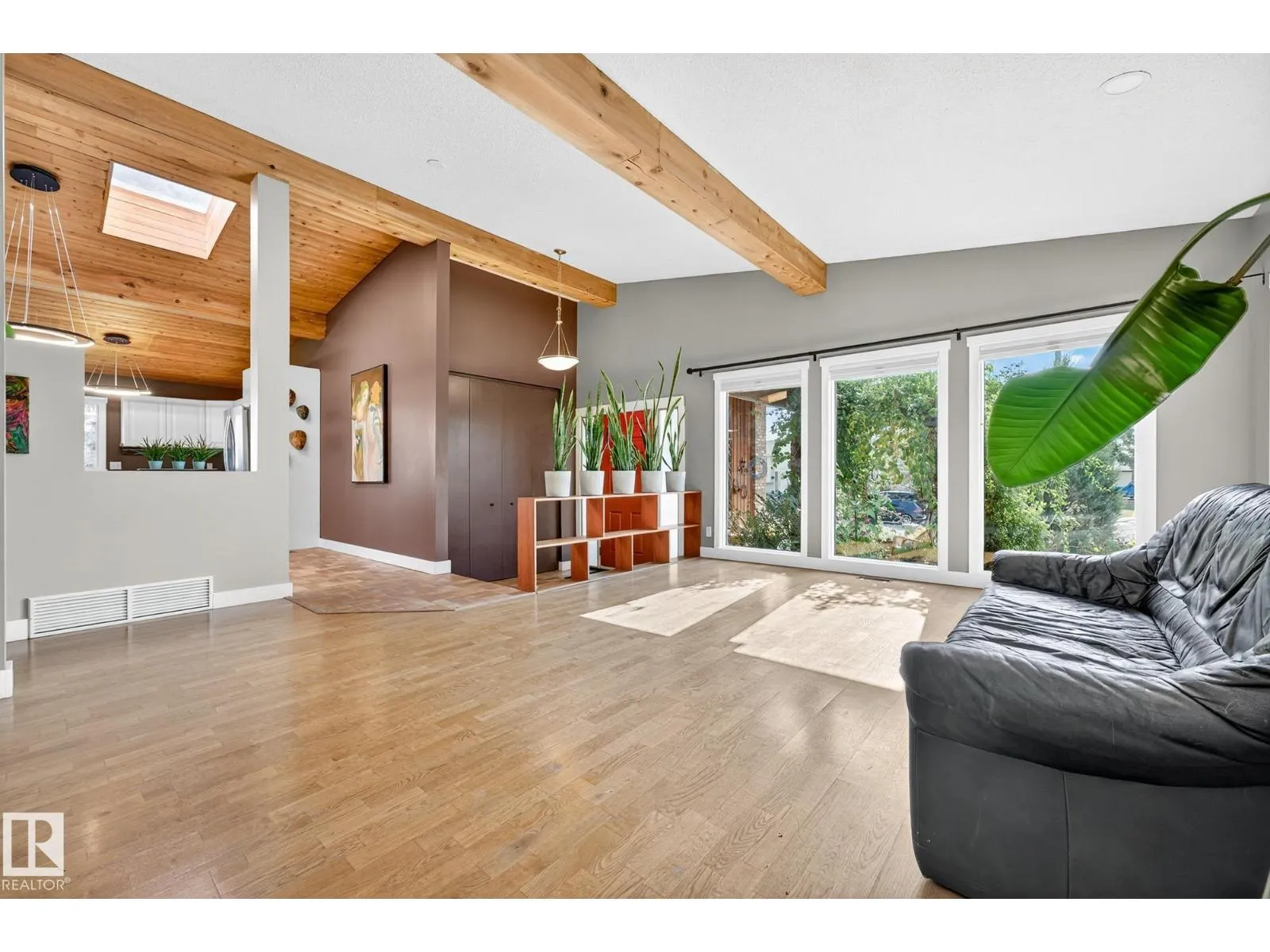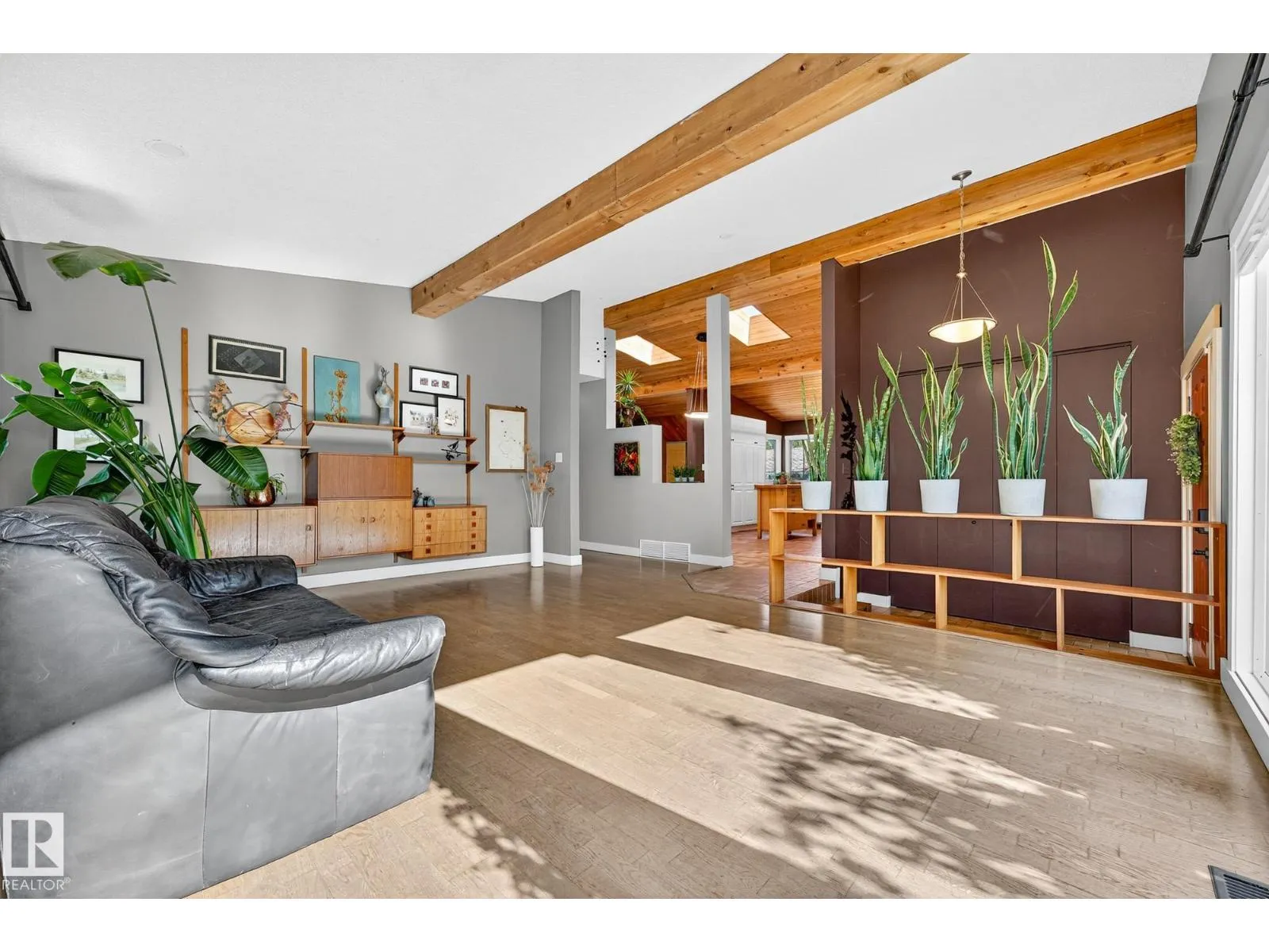 This UNIQUE mid-century modern bungalow is more than just a home. Lovingly built & maintained by its original (sole) owner, every detail reflects craftsmanship, timeless style, & enduring quality. The open-concept floor plan is enhanced by cedar plank ceilings, exposed beams, & 8â doors that create a sense of space & light. Custom cabinetry, built-in shelving, & architectural room dividers add both function and artistry, while high ceilings extend into the basement, offering flexibility for future dreams. With 5 bedrooms, 2 3pc baths and 4pc ensuite, a custom kitchen island, & generous shared spaces, this home was designed for both daily living family/friend gatherings. Practicality meets innovation with an 11.6 kW solar array (2021) generating ~10,000 kWh/yr. The heated (tandem) 4-car garage features HIGH CEILINGS, oversized windows, dual faucets, & electrical panel ready for an EV charger. If youâre searching for a home to grow into and cherish, & lover of beautiful outdoor spaces, this is it. (id:27476)