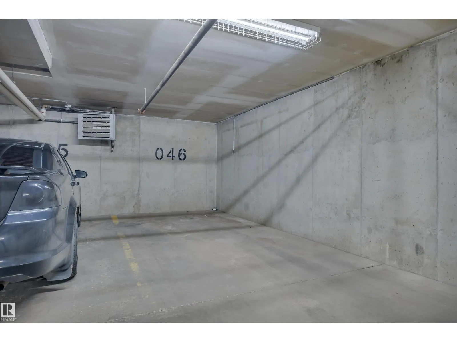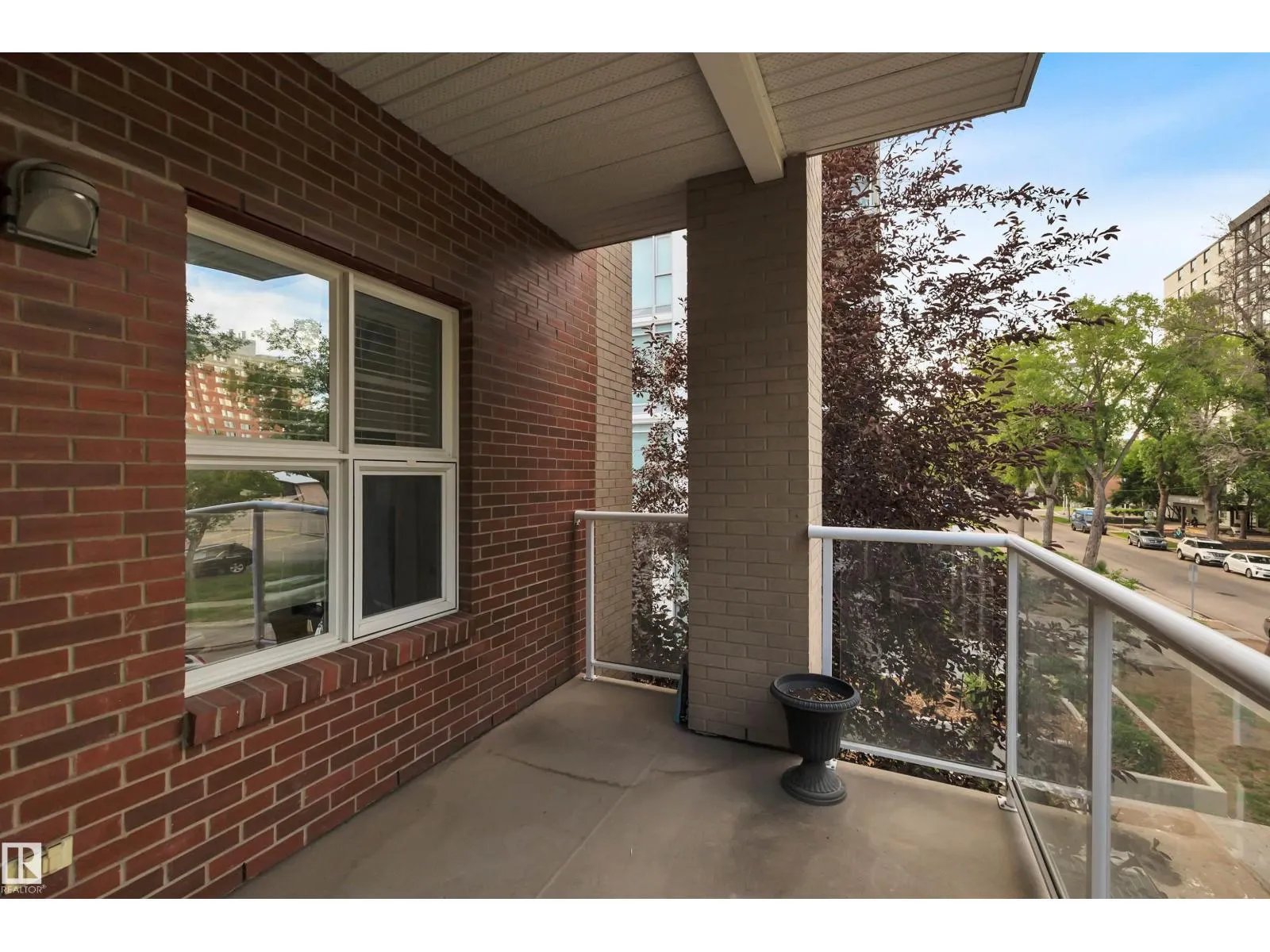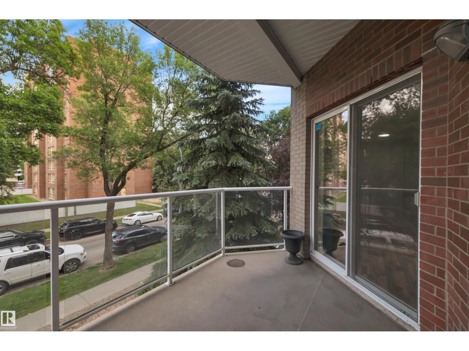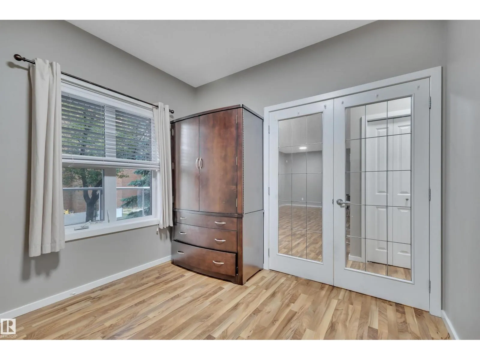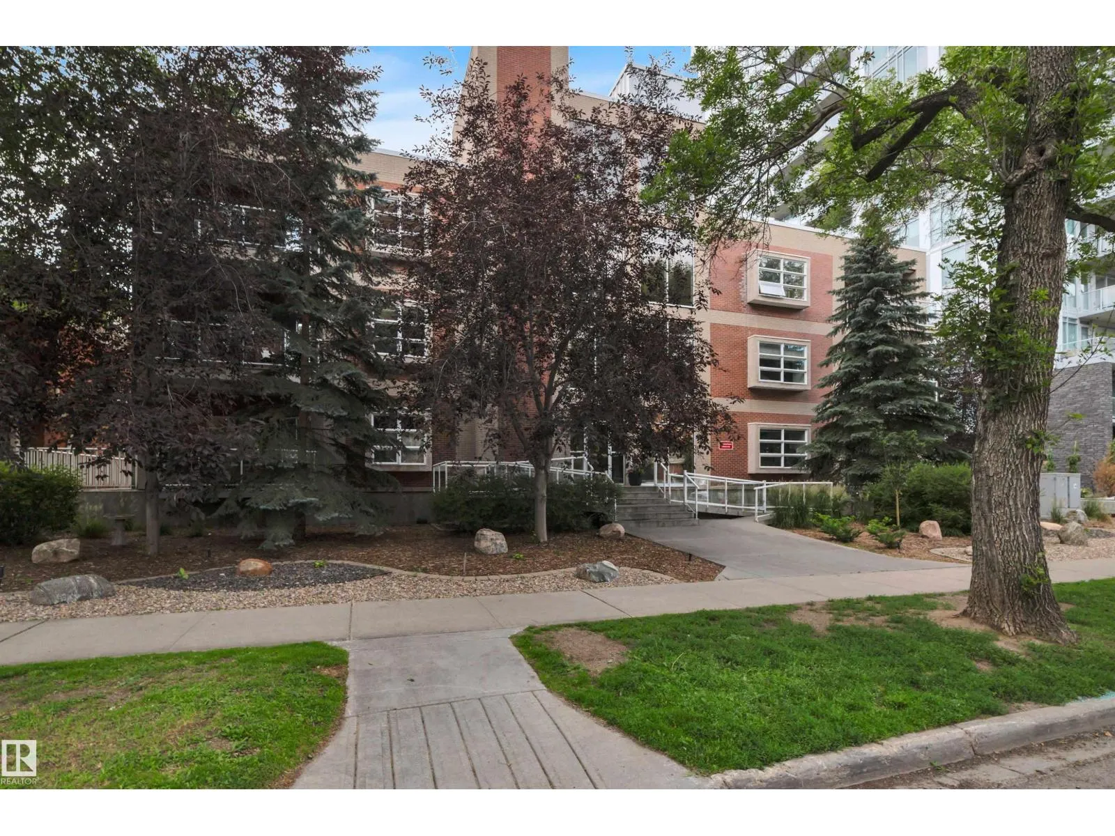 Gorgeous renovated 2-bedroom*, 2-bath condo with titled heated underground parking on a quiet, tree-lined street. Freshly painted with new LED lighting, custom mirrored closet doors, upgraded faucets, and modern hardware throughout. Over 1,000 sqft with 9-ft ceilings, this bright unit is filled with natural light from large windows. The kitchen features stainless steel appliances, slate tile, a walk-in pantry, and a raised eating bar. The living room is centrally located, with the primary suite and 4-pc ensuite on one side and a den with French doors (includes armoire, used as a bedroom) on the other for added privacy. Slate tile in kitchen, laundry, and baths; laminate in living, dining, and bedrooms; plus in-floor heating throughout. Enjoy elegant downtown living close to all amenitiesâjust 230m to the LRT and minutes to the University. (id:27476)